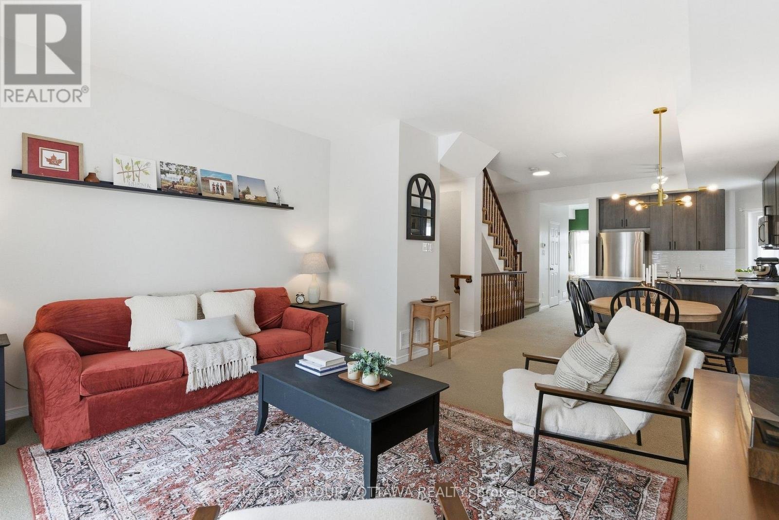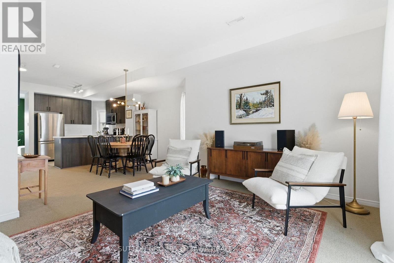 Rarely offered 3 BEDROOM UPPER END UNIT! This tastefully updated 3 bedroom, 2 bathroom unit in the heart of Kemptville is sure to please! Flooded with natural light, the main level boasts an open concept floor plan, upgraded lighting and 9 foot ceilings. The functional kitchen offers stainless steel appliances, sleek backsplash and a peninsula with overhang for added seating. Enjoy summer days lounging on the private, sunny balcony. The bonus main level den with cozy vibes is perfect for working from home, using as a lounge/TV area (as it's set up now), or sending the kids to play! Upstairs, the primary bedroom features double closets as well as access to an additional second-level balcony. Two great sized bedrooms, a linen closet, stacked laundry and a full bathroom complete this level. Upgraded smooth ceilings on the main level + primary bedroom as well as designer paint choices throughout give this unit a crisp, clean finish. Parking is conveniently located directly in front of the unit's entrance. You're a quick 5-minute drive to anything you could possibly need: groceries, restaurants, shops, and more! Or, walk to downtown Kemptville in less than 20 mins where you'll find the library, bakery, pizza shop, clothing boutique, etc. etc.! Condo fees include water. Book a showing today!