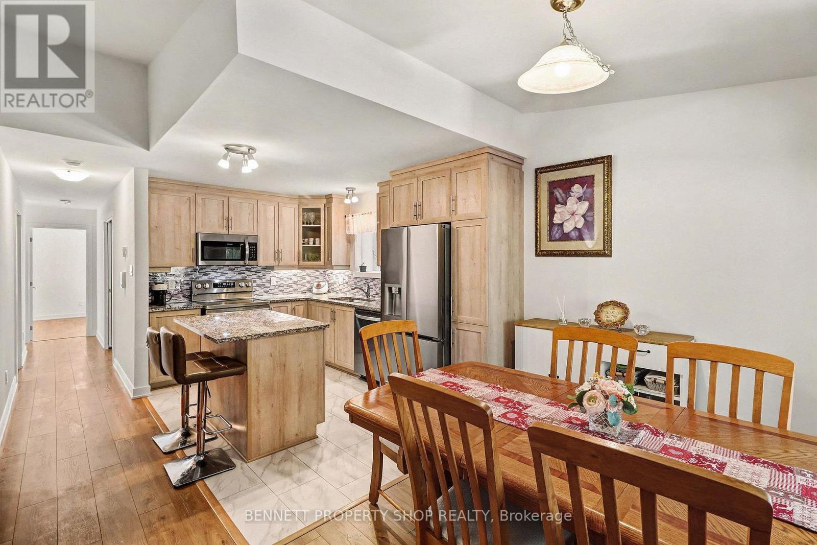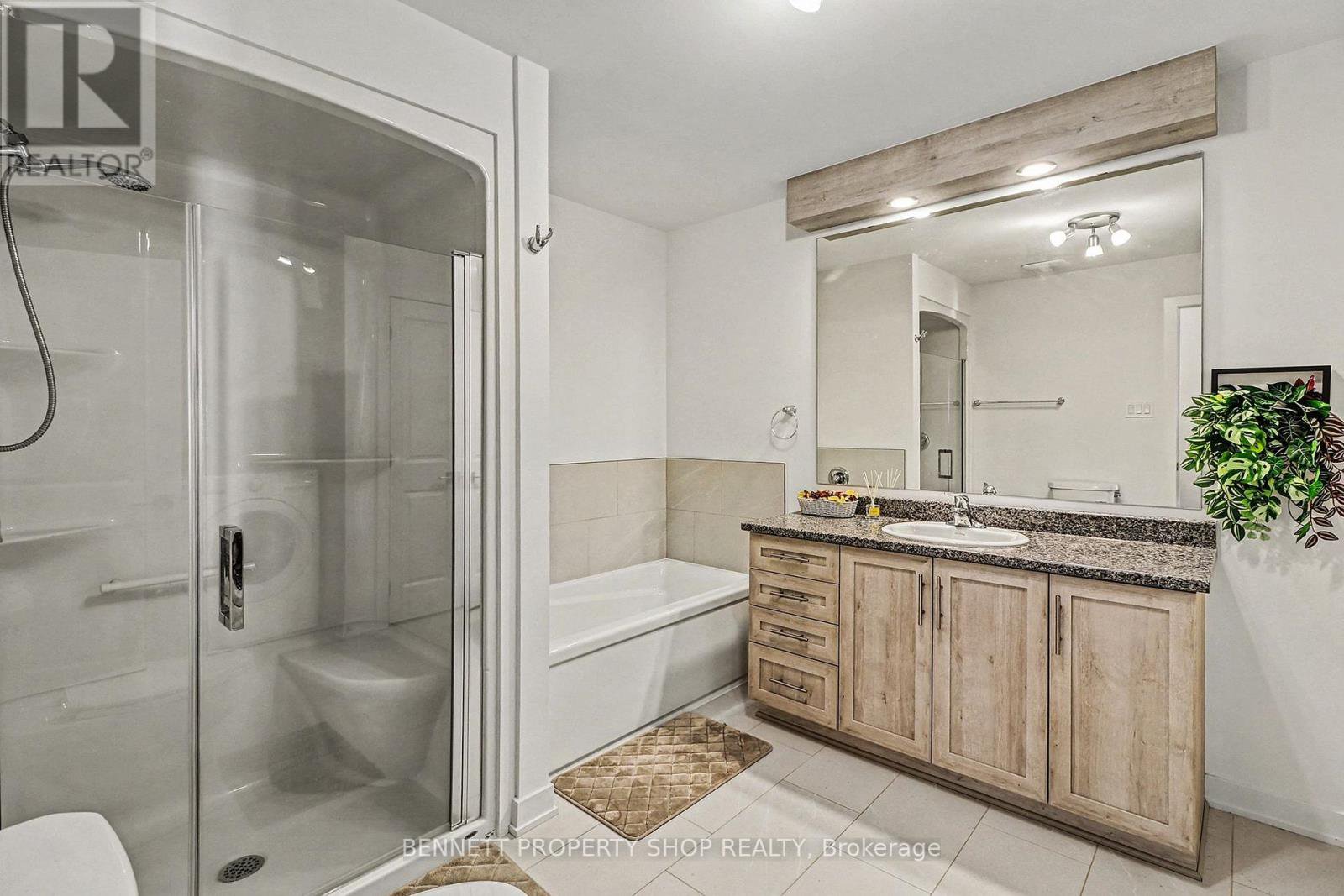 Welcome to modern, serene living in this RARE UPPER-END UNIT built in 2025. This pristine 2-bedroom, 1-bathroom condo offers an unmatched level of privacy, backing directly onto lush green space and a tranquil, treed area. Step into a bright, open-concept layout featuring a neutral palette that complements any style. The spacious living and dining areas are anchored by a cozy fireplace and framed by large windows providing beautiful views of the surrounding nature. Transition seamlessly to your enclosed, over-sized balcony-a true outdoor sanctuary perfect for hosting dinner parties or enjoying a quiet morning coffee in the fresh air. The primary retreat is generously sized, boasting a large walk-in closet and a versatile nook ideal for a home office or extra furniture. Indulge in the spa-like bathroom, fully equipped with a modern walk-in shower and a separate soaking tub. This unit is move-in ready with new appliances, an ensuite laundry, and dedicated storage. Experience ultimate convenience with a rare parking spot included and a local park just a 30-second walk away. Located in a vibrant, growing community, you are minutes from major highway access, trendy restaurants, and essential shopping. Don't miss this chance to own a private nature-side oasis with every modern urban convenience. 24 hours irrevocable on all offers. Some photos are digitally enhanced.