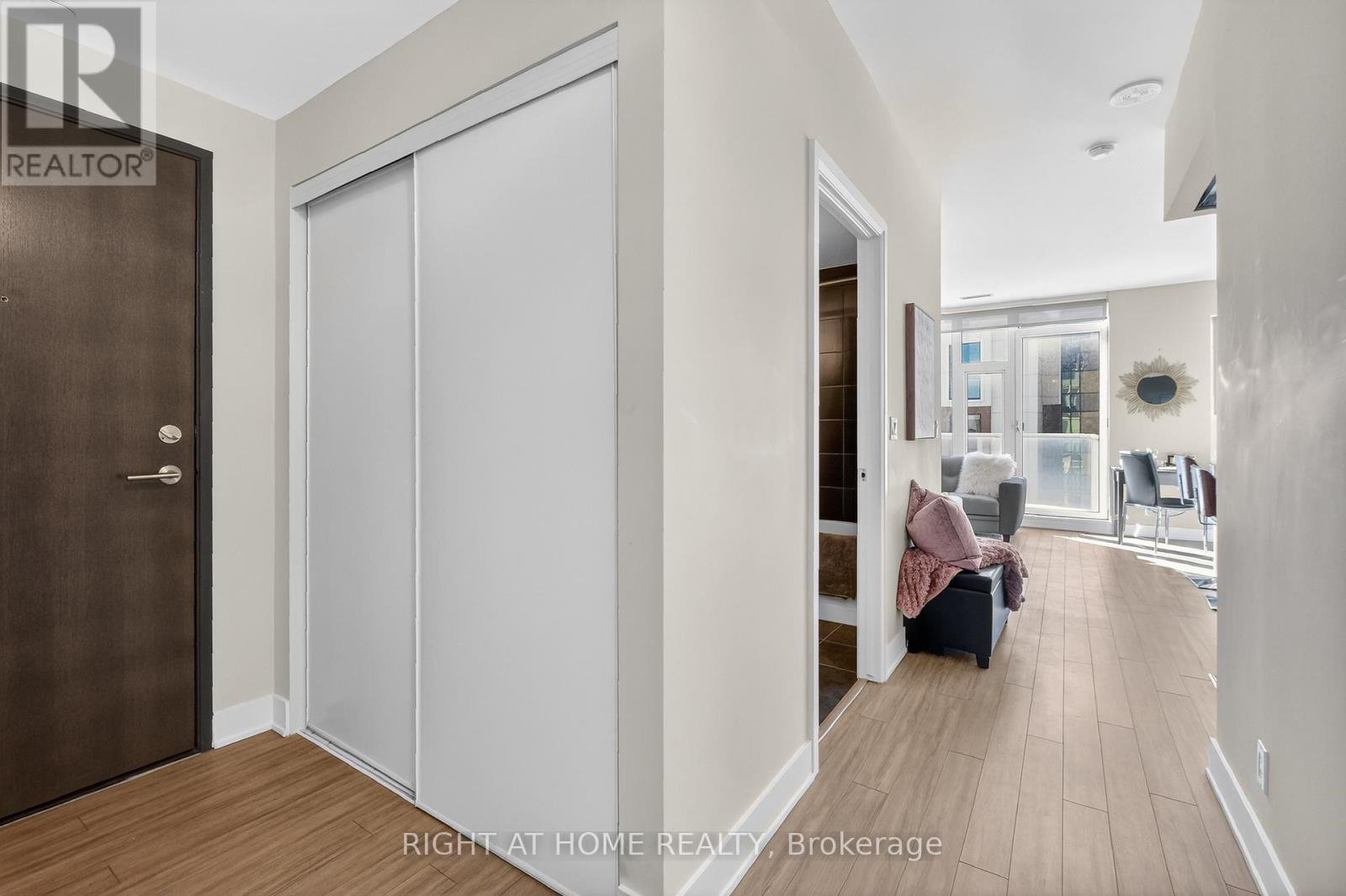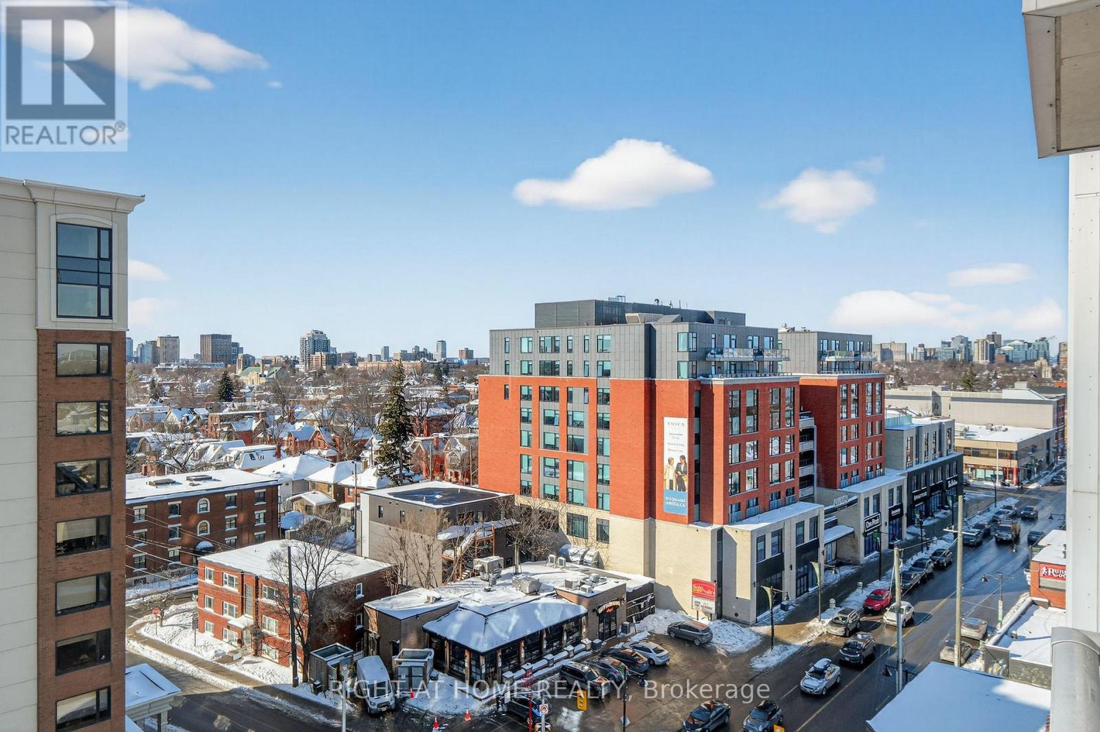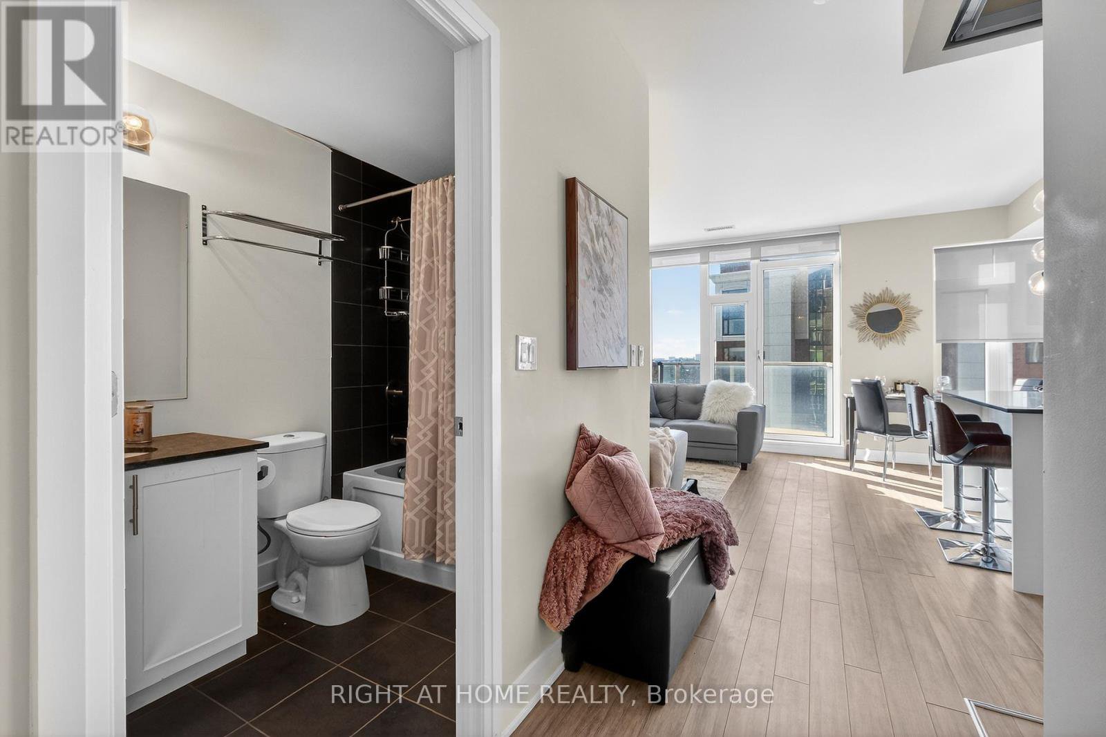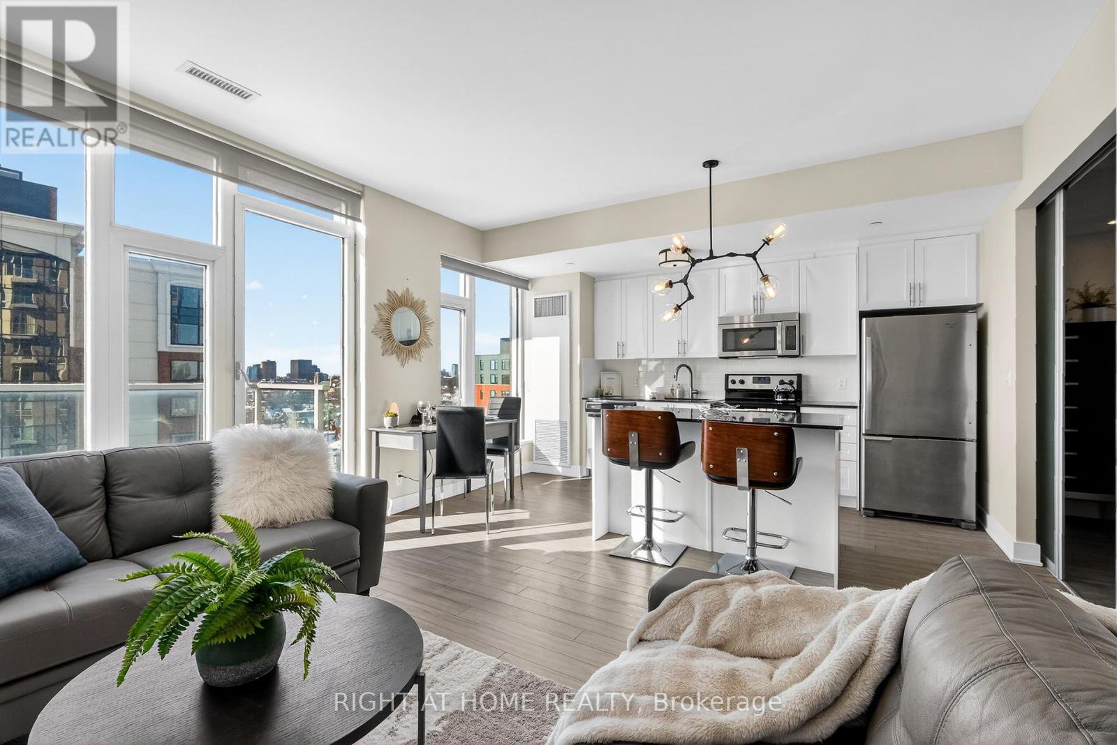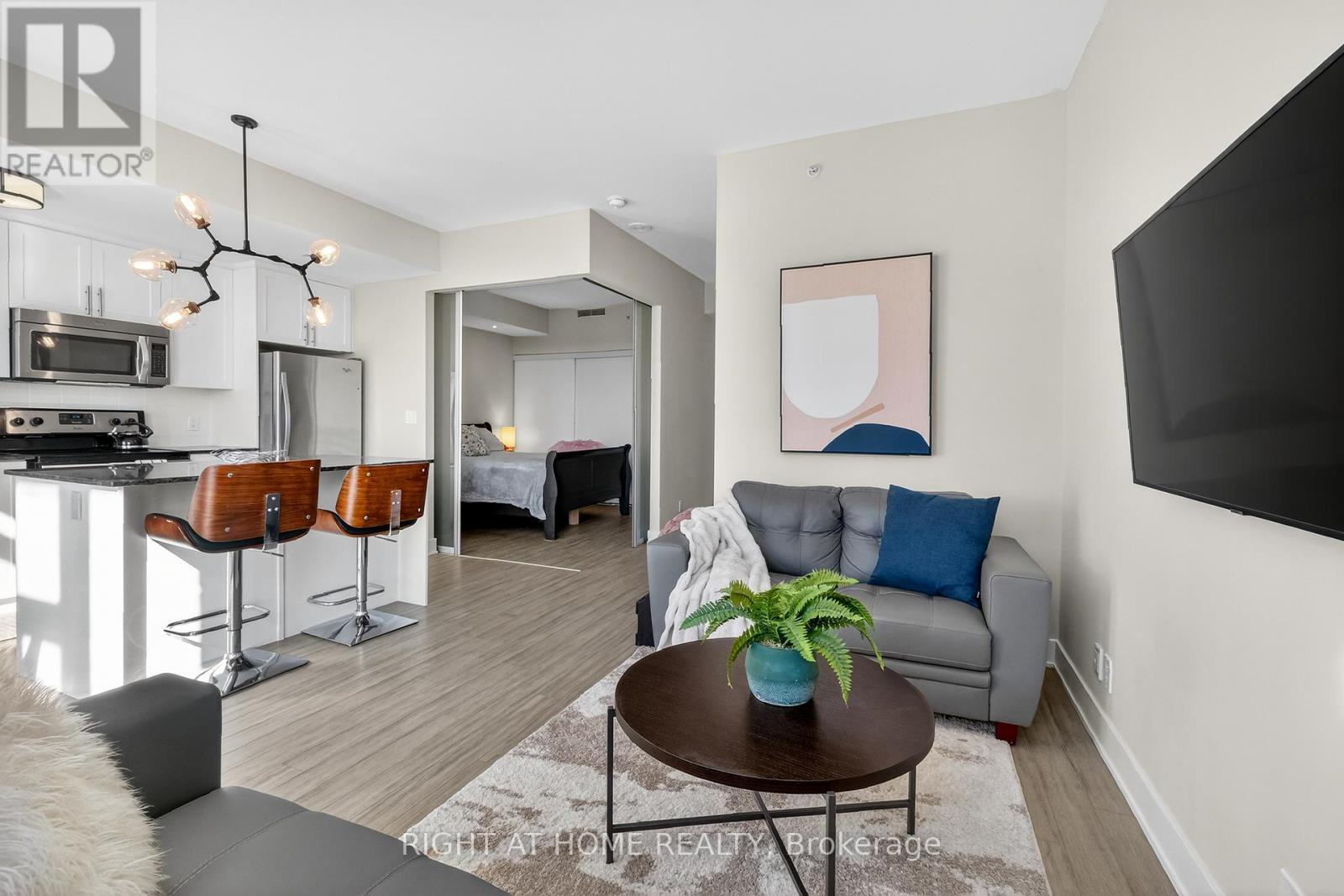 Stylish 1-bedroom, 1-bath condo in "The Vibe" at Lansdowne - one of Ottawa's most walkable neighbourhoods (100 Walk Score). Bright open-concept living with floor-to-ceiling windows, a balcony, stainless steel appliances, quartz counters, an upgraded island, improved lighting, hardwood-style flooring, and in-unit laundry. Lots of storage with double-deep closets plus an extra storage locker located on the 3rd floor. Spectacular west-facing views down Bank Street and over the Rideau Canal/Glebe area - ideal for sunsets. Farmers market, shopping, festivals, bike paths, the FAMOUS Rideau Canal, transit, restaurants, cafes & tons of entertainment are just steps away. Dog-friendly building with Lansdowne Dog Park so close by. Exceptional building amenities include a state-of-the-art gym, meeting room, 4th-floor rooftop lounging area with BBQs, party room, lobby lounge, and bike storage. Enjoy walking underground to access the movies, LCBO, and Whole Foods without stepping outside! Low, low, low condo fee of $333.85 per month. This unit is perfect as the pied-à-terre you've always wanted, for the downsizer, or for anyone seeking a secure, low-maintenance urban lifestyle. This building truly has "The Vibe." 24-hour irrevocable on all offers.