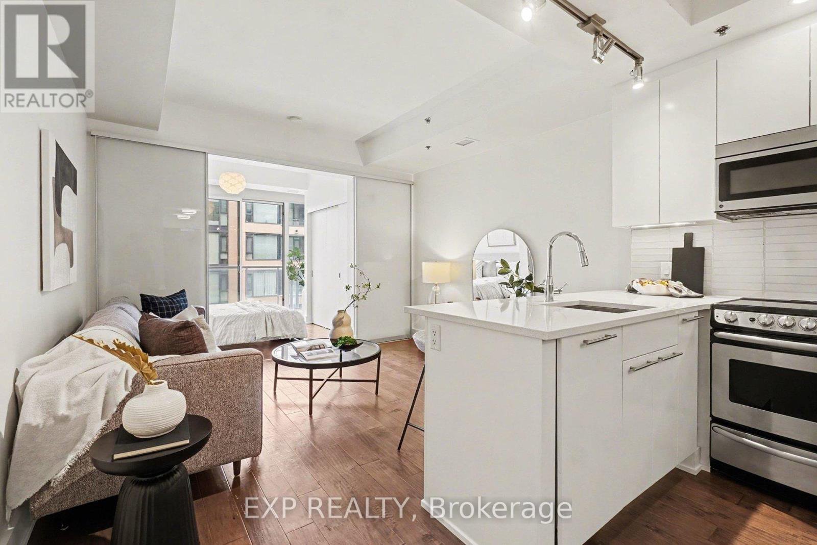 Welcome to Q West, where modern living meets one of Ottawa's most vibrant neighbourhoods. This beautifully maintained 1-bedroom condo is ideally located in the heart of Westboro, just steps to local shops, restaurants, transit, and the Ottawa River. Inside, the unit features 9-foot ceilings, hardwood flooring, and contemporary finishes throughout. The open-concept kitchen offers quartz countertops, stainless steel appliances, a tiled backsplash, and a generous island with breakfast bar, perfect for both everyday living and entertaining. Large windows and sliding glass doors fill the space with natural light, while the north-facing balcony provides peaceful views toward the Ottawa River. Residents enjoy an impressive array of amenities, including multiple fully equipped gyms, party and media rooms, a theatre room, and a stunning rooftop terrace with BBQs, loungers, and hot tub overlooking Westboro. The building is professionally managed and offers elevator access, security camera systems, and on-site caretaker services. The extremely low condo fees of just $282/month cover all utilities and building maintenance (excluding hydro), offering truly worry-free, low-maintenance living in a well-run condominium corporation. A storage locker conveniently located on P1 near the elevator is included. Step outside to Farm Boy, Metro, LCBO, Real Canadian Superstore, top-rated cafes, restaurants, boutiques, parks and scenic river pathways. Westboro Beach, the Ottawa River Parkway, and Stage 2 LRT within a 10-minute walk make commuting and city access effortless. Whether you're a first-time buyer, young professional, or investor, this is an exceptional opportunity to own a stylish condo in one of Ottawa's most desirable neighbourhoods. For those wanting it all, Q West delivers!