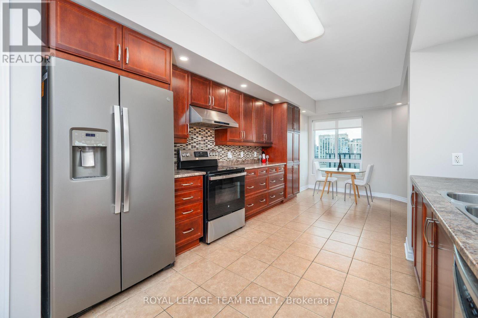 Discover elevated downtown living in this stunning 17th-floor 2-bedroom, 2-bathroom condo offering breathtaking panoramic views of Ottawa's skyline - truly a postcard-worthy backdrop day and night. Perfectly situated in the heart of the city, this residence delivers the ideal blend of comfort, style, and unbeatable convenience.The bright open-concept design showcases hardwood and tile flooring throughout, creating a seamless space for everyday living and effortless entertaining. The kitchen, dining, and living areas flow beautifully together, all framed by expansive windows filled with natural light.Step outside onto your private balcony - conveniently accessed from the primary bedroom - and enjoy a quiet retreat high above the city streets with spectacular views in every season.Both bedrooms are generously proportioned, complemented by two full bathrooms for added comfort and functionality.Residents enjoy premium building amenities including an indoor pool, fitness centre, outdoor terrace with BBQ area, secure underground parking, a storage locker, 24-hour concierge service, and controlled entry for peace of mind.Just steps to the Rideau Centre, public transit, restaurants, and Ottawa's vibrant downtown attractions, this pet-friendly condo (up to 25 lbs) offers an exceptional lifestyle in a prime location.Move in, settle in, and enjoy city living at its finest.