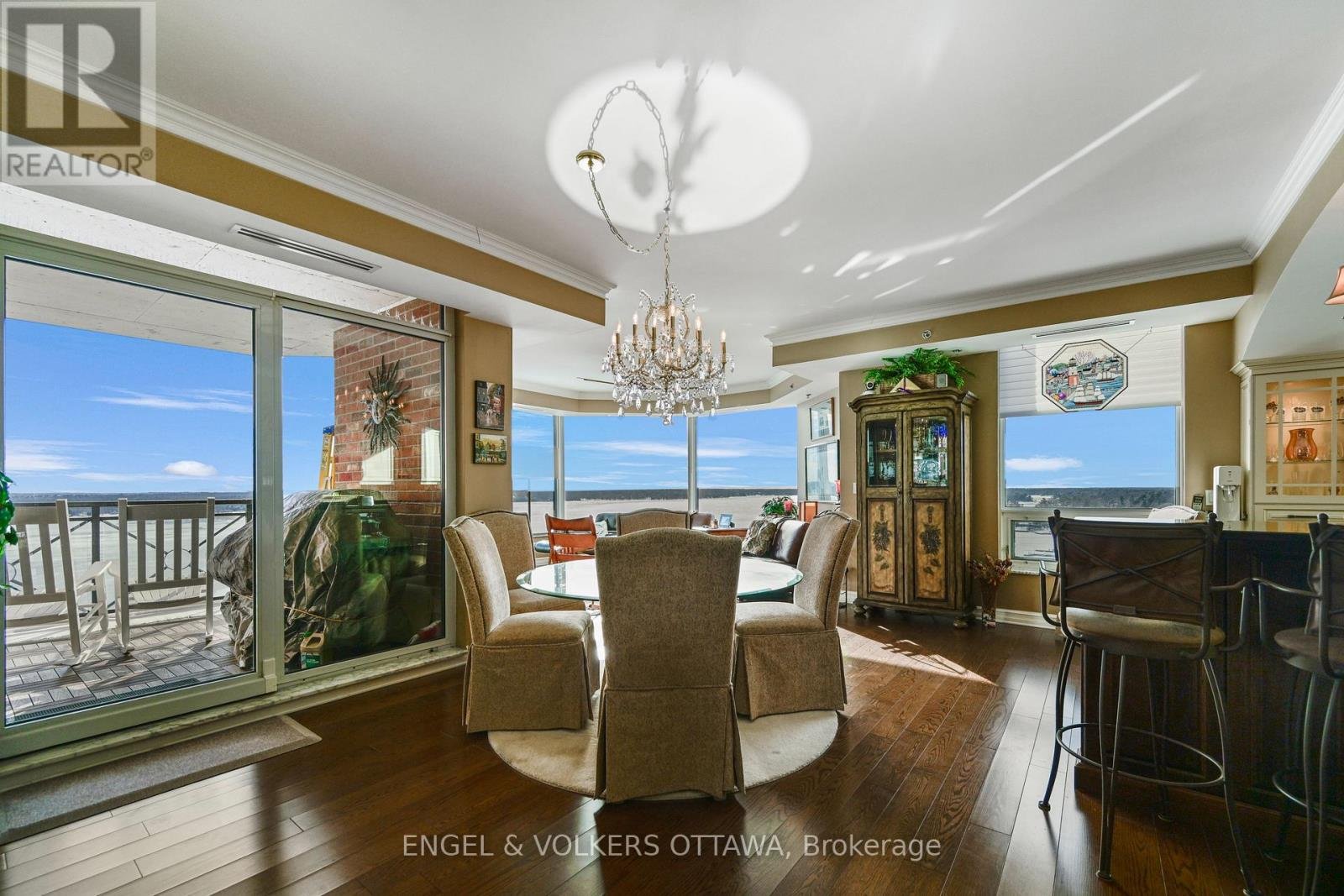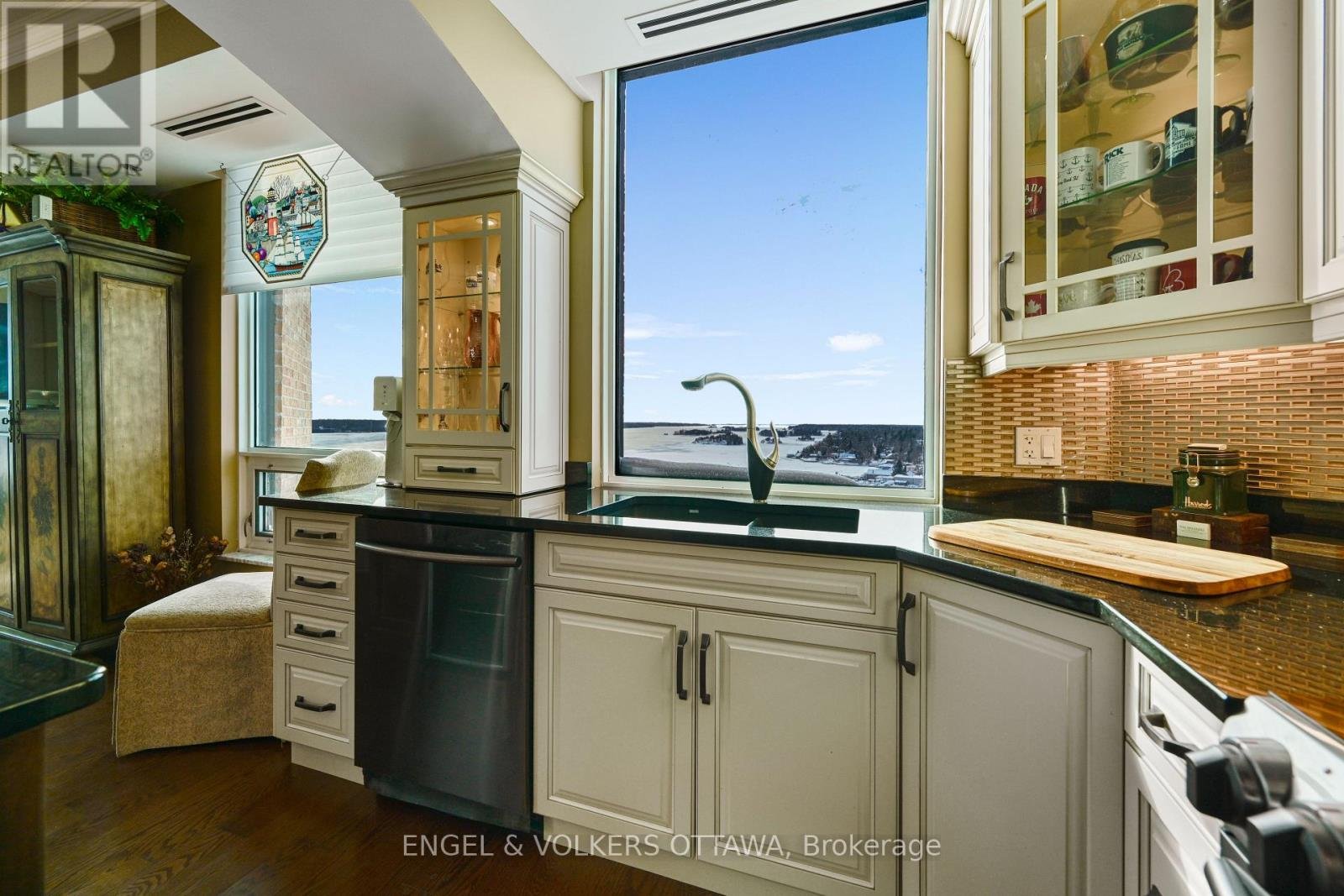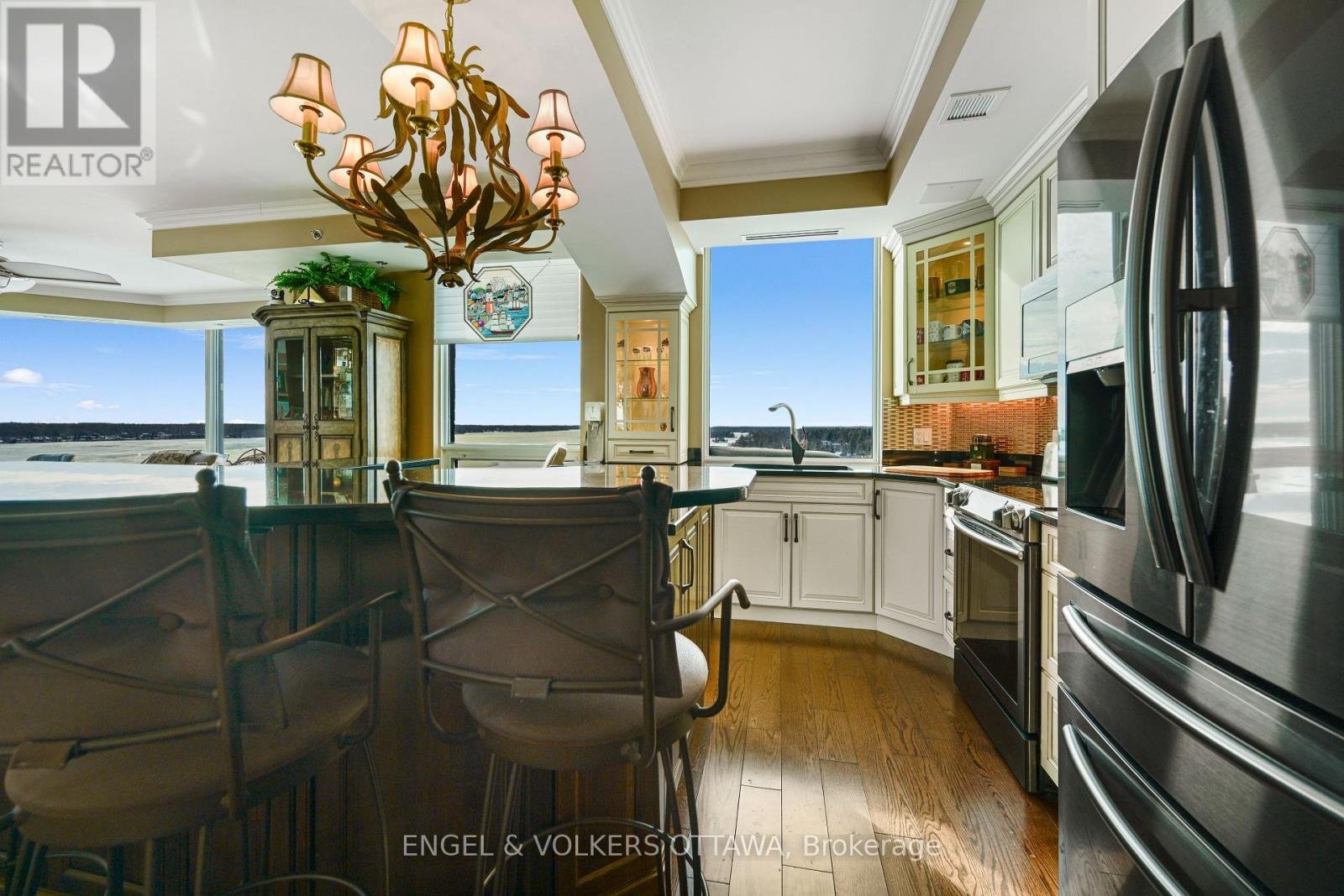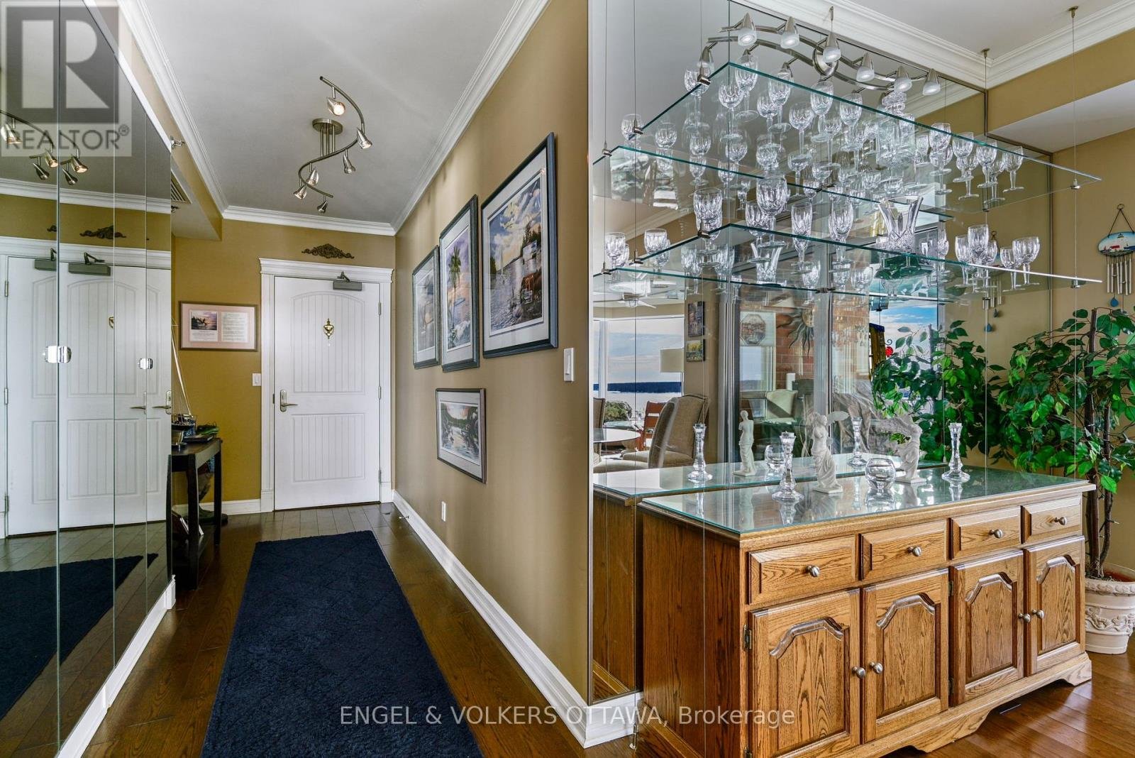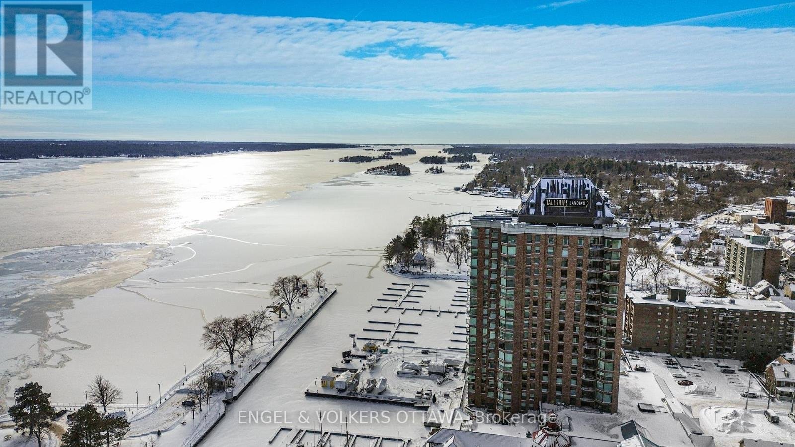 Windows on the World" await from this 18th floor southwest facing luxury suite. Ships from all over the world glide past, luxury superyachts appear unexpectedly all practically within touching distance and your boat docked in the marina below! How much better can life get? Oh, wait...it can! Incredible natural light and stunning sunrises and sunsets from this beautifully appointed 1600+ sq ft unit that has been upgraded to the max. Luxury cabinetry, classic light fixtures, beautiful hardwood flooring, powered window coverings, crown mouldings throughout, well placed mirrors bouncing the light and views in all directions. Spa-like ensuite bath with double Jacuzzi tub and when you step out...a heated floor, no less! Your ownership includes membership in amazing amenities...pool, fitness centre, lounges, indoor and outdoor hot tubs, splash pad. A preferred handicap parking space located right beside the elevator. Tall Ships is known for its wonderful community atmosphere and like-minded residents. You have it all...yours for the taking!