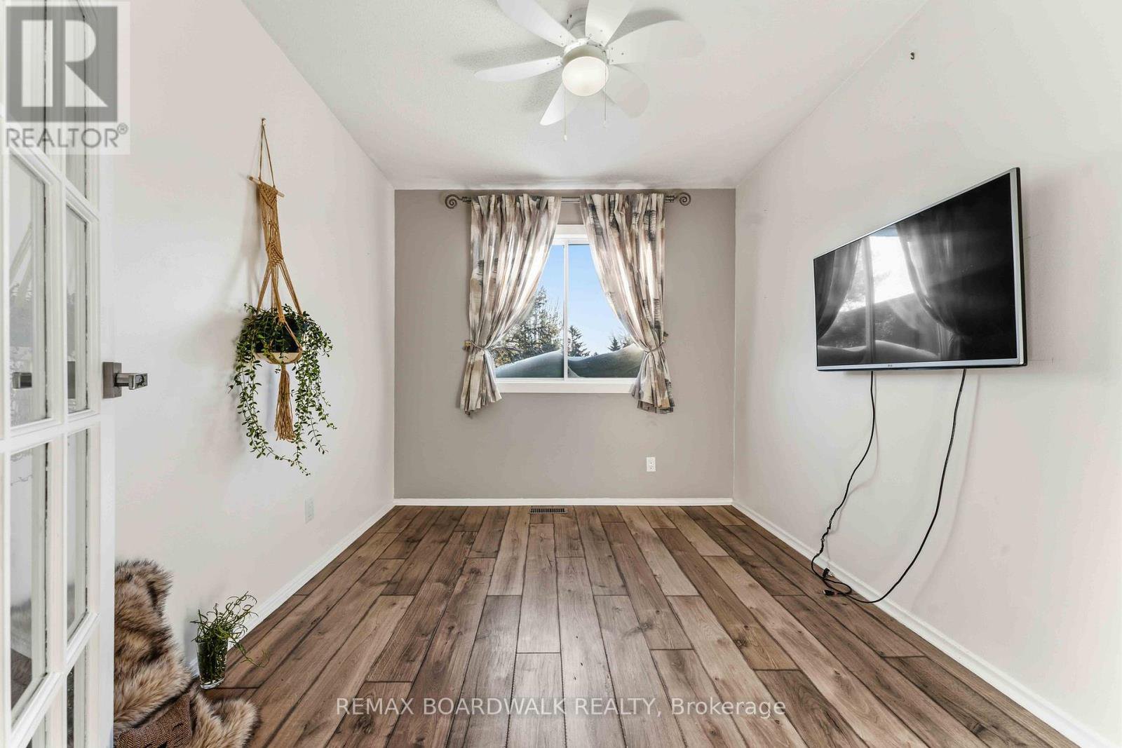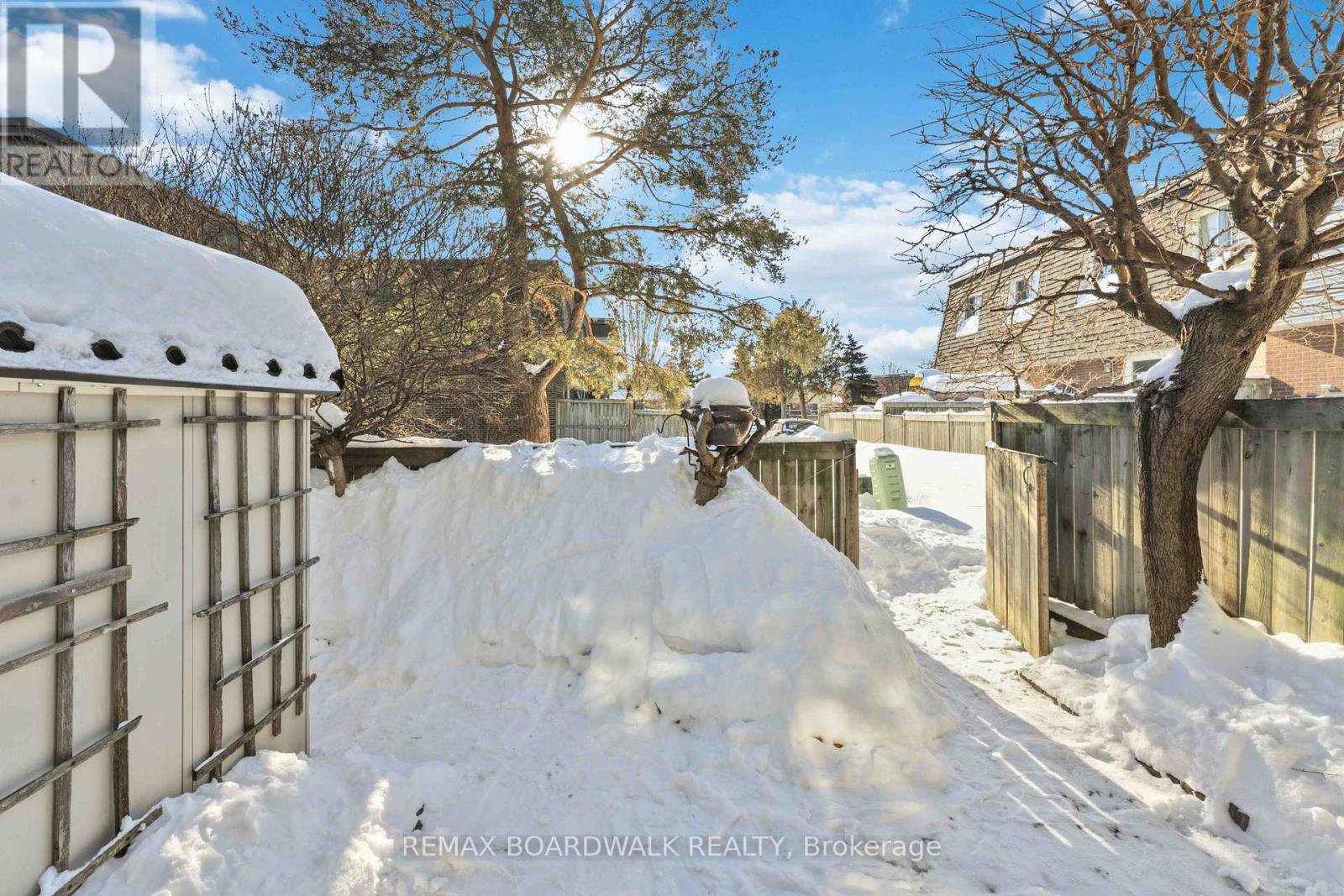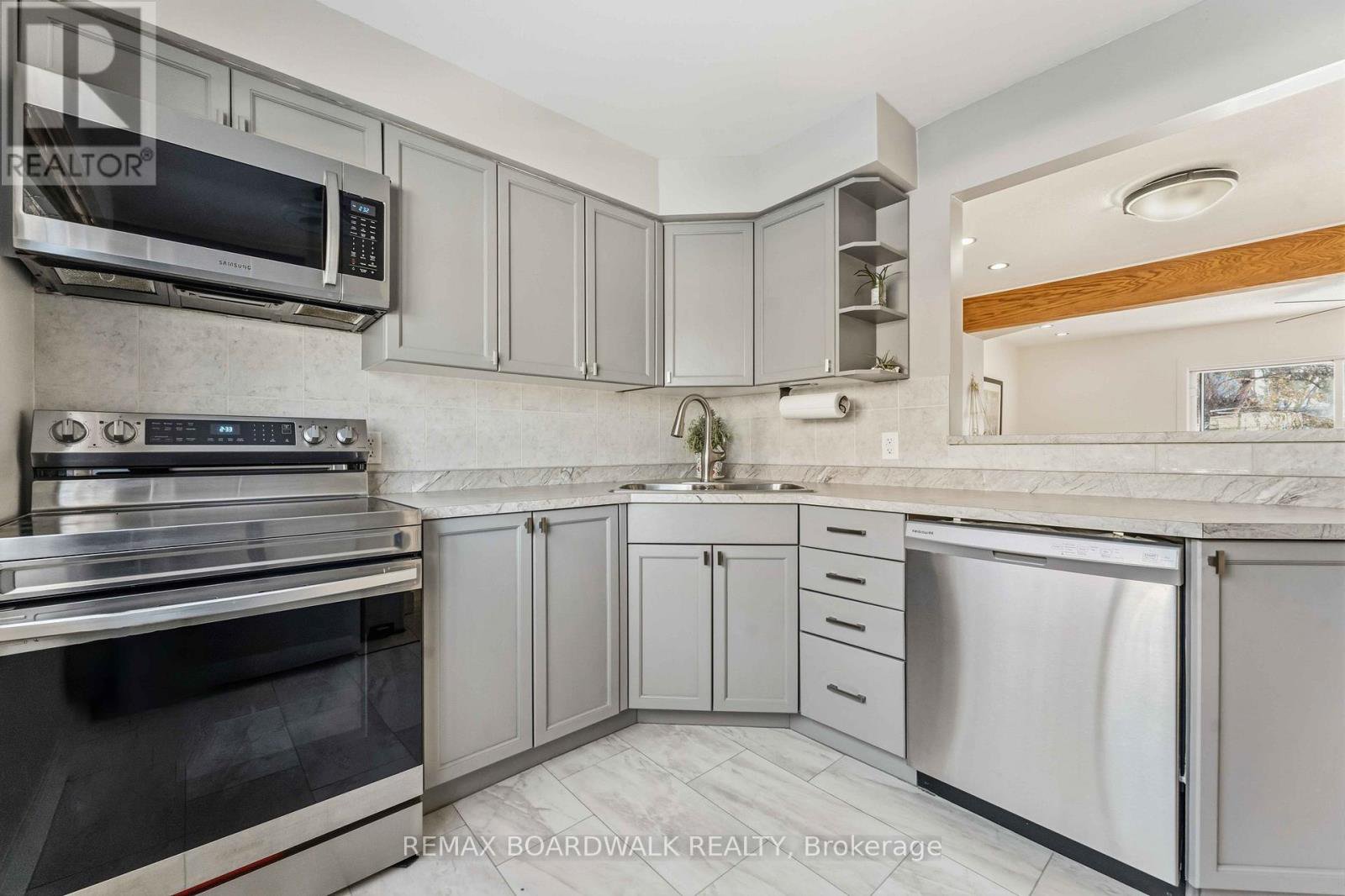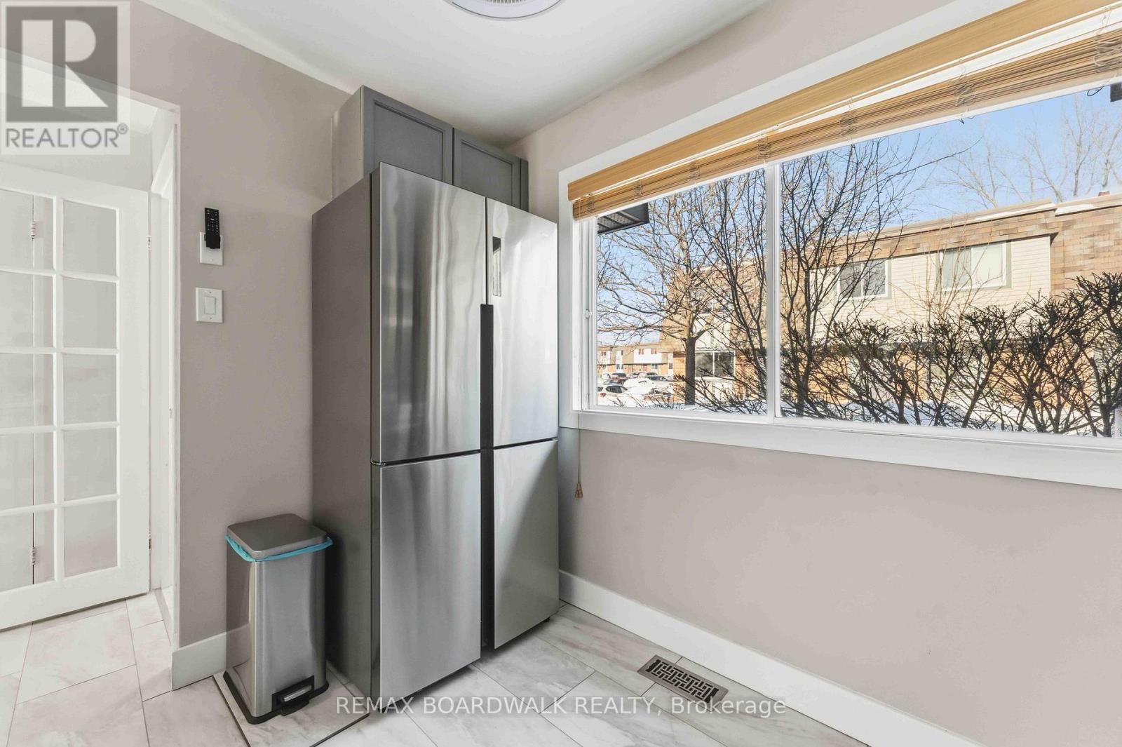 This charming 3-bedroom end-unit condo townhome has been beautifully updated with thoughtful design and modern style. Tucked away at the quiet end of a well-maintained complex, this home welcomes you with lush perennial gardens and wonderful curb appeal. The main floor features a stunning kitchen with brand-new 2025 stainless steel appliances, and a bright, open-concept living and dining area highlighted by an impressive oversized patio door that floods the space with natural light. Hardwood flooring on the main level and large windows throughout create a bright, inviting atmosphere in every room. Upstairs, you'll find three generous bedrooms, each with ample closet space, upgraded Hunter ceiling fans, and a well-appointed full bathroom. The fully finished basement adds even more versatility with a spacious recreation room, a dedicated laundry room, and a separate storage area-making the home as functional as it is stylish. Step outside to your private, fenced yard - a peaceful, Zen-like retreat right in the city. This home truly needs to be experienced in person to appreciate the craftsmanship and attention to detail. Conveniently located near parks, schools, public transit, shops, and restaurants.
