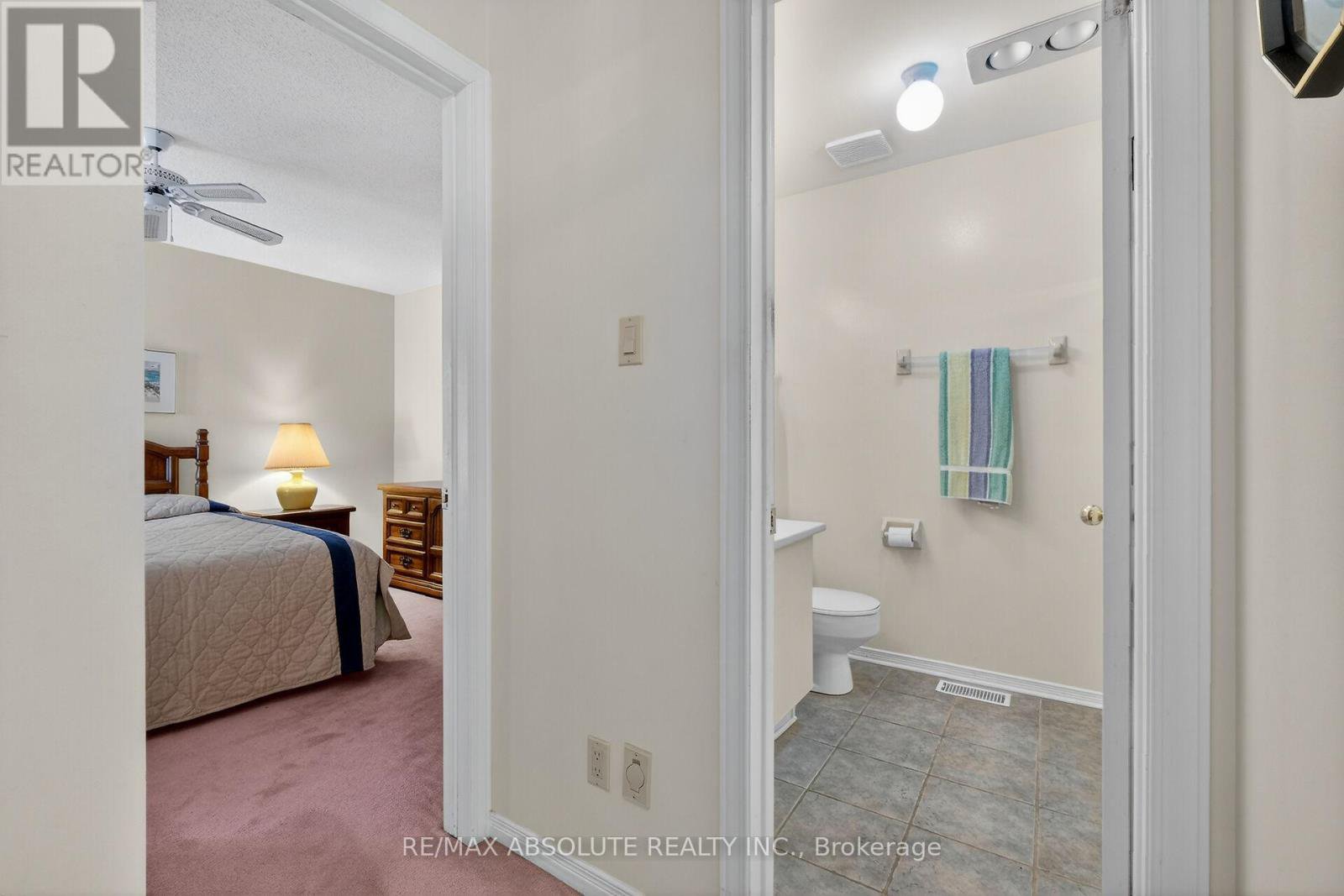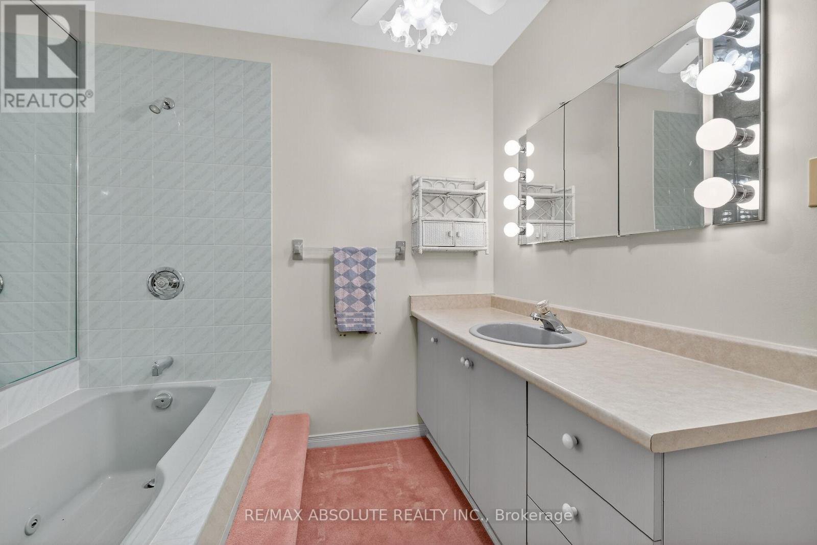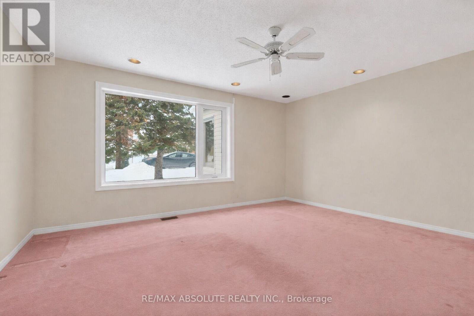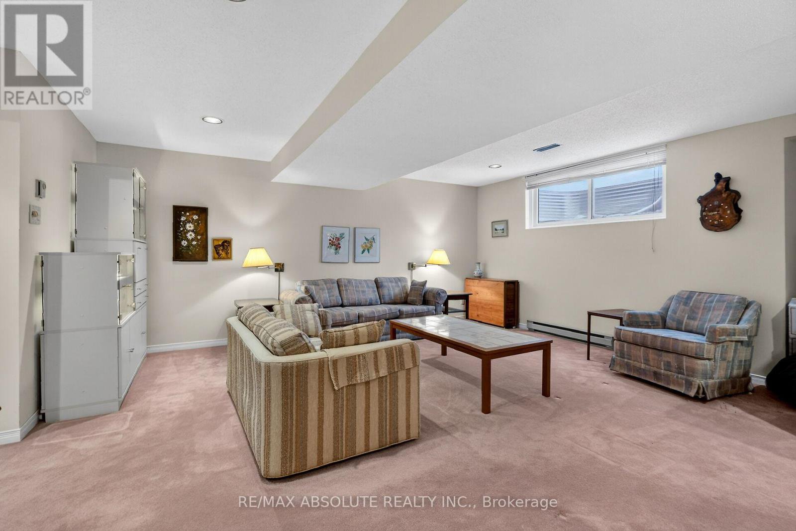 Amberwood Village worry free adult living. Rarely offered large 2 bedroom end unit bungalow condo townhome with double garage located on a quiet street in sought after Amberwood Village Stittsville. One of the larger models in the community. Ceramic tile foyer leads to a bright eat in kitchen with quality oak cabinetry large pantry bay window and ample space for a table. Spacious living and dining room features a wood fireplace (unaware if it is WETT certified) and large windows providing abundant natural light with plenty of pot lights & crown moulding throughout. Open to a bright and airy sunroom ideal for relaxing while enjoying peaceful views of mature trees and nature. The primary bedroom offers a large walk in closet with room to comfortably accommodate a king size bed and dressers and private ensuite bath with jacuzzi tub . Second bedroom is conveniently located beside a full bath. Main floor laundry includes full size washer and dryer. The lower level provides excellent additional living space with a third bedroom full bath and large recreation room with oversized windows. Plenty of storage plus workshop and workbench in unfinished area. Newer windows and roof by condo corporation. Furnace, air conditioner and hot water tank buyer may assume rentals or sellers may negotiate buyout. Visitor parking and mailbox located at the door. Ideal location close to all amenities. Walk to Amberwood Golf Course The ALE restaurant and shops along Hazeldean Road and Main Street. Estate sale probate to be completed. Minimum 60 day possession flexible. 24 hours irrevocable as per Form 244. Solid home awaiting your personal touches. Utilities Hydro Ottawa $954 per year, Enbridge Gas $896.35. The property and its chattels are being sold "as is" and there is no express or implied warranty by the Executor or the Listing Brokerage. Average utilities per month hydro $85; Gas $140; Water $72.50. Some photos have been virtually staged. Owner Booklet is attached to listing.