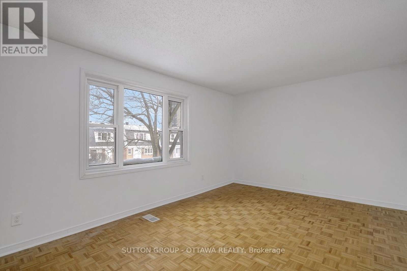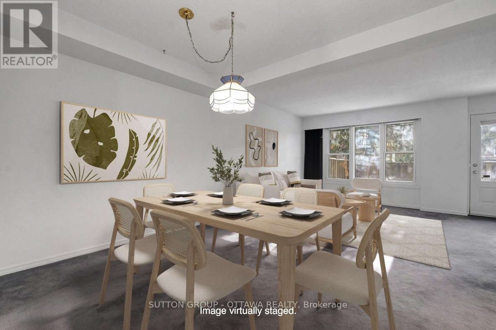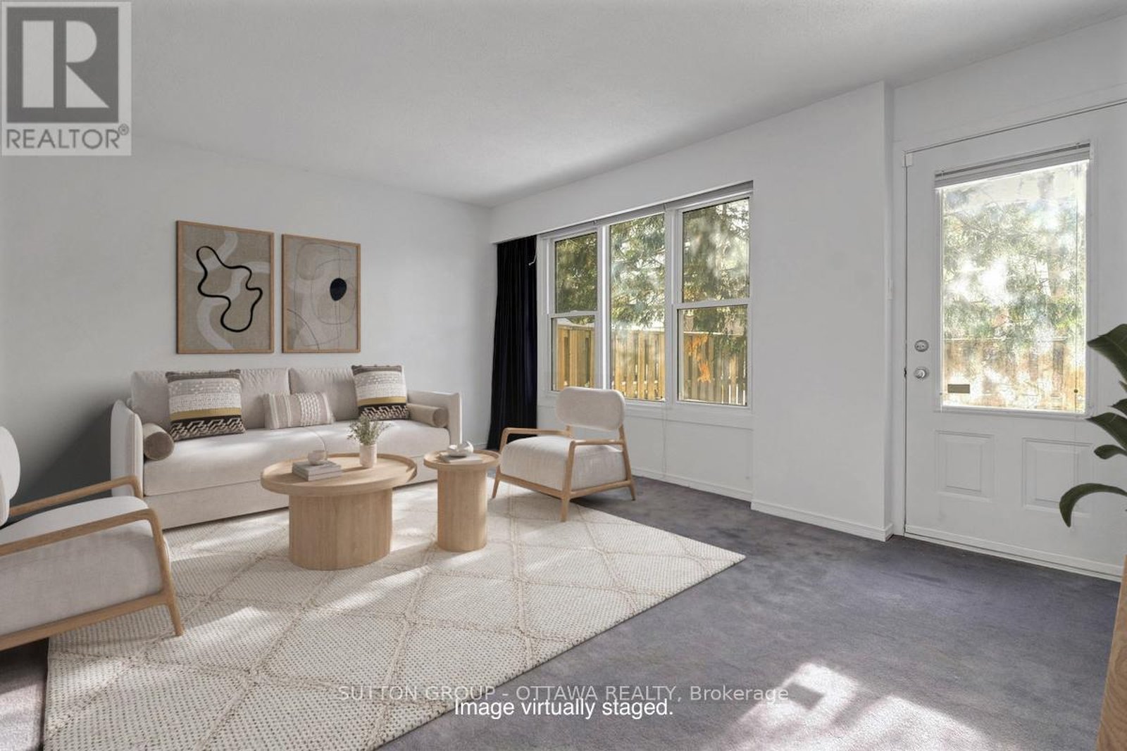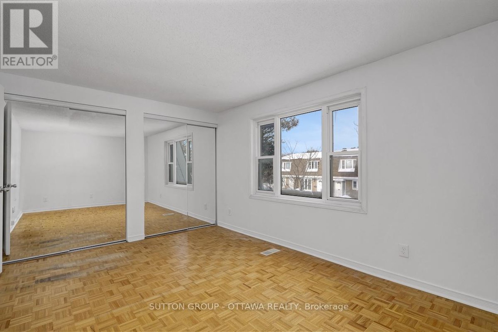 Bright and comfortable, easy-care townhouse in a quiet enclave just minutes from everyday amenities, parks, and the city core. This two-storey, three-bedroom home is located near Carleton University, Mooney's Bay, and shopping immediately next door including grocery, banking, coffee, and transit. The home is clean, well maintained, and move-in ready, offering a solid opportunity for buyers who want to update at their own pace. Tile flooring greets you at the entrance and continues through the kitchen for durability, while original parquet flooring lies beneath the carpet on the main level and runs throughout the upper floor, adding warmth and character. The functional kitchen offers full-size appliances and good storage, and the main living and dining areas benefit from excellent natural light and a practical, comfortable layout. Upstairs, a spacious primary bedroom with mirrored closet doors is complemented by two additional good-sized bedrooms, providing flexibility for family living, guests, or home office space, along with a full bathroom. The partially finished basement includes a rec room with finished walls and a separate laundry and storage area, offering flexible additional space that can be adapted to suit a buyer's needs. The private, fenced backyard with gate access provides usable outdoor space for relaxing, gardening, or pets. Additional highlights include underground parking with a separate garage and access to an indoor pool and sauna, adding year-round lifestyle appeal. Walk or bike to nearby parks, Mooney's Bay, and the Rideau Canal pathways, with everyday shopping amenities and transit just steps away. This property is well suited to first-time buyers, downsizers seeking manageable space with amenities, or investors looking for a well-located, rentable townhouse.