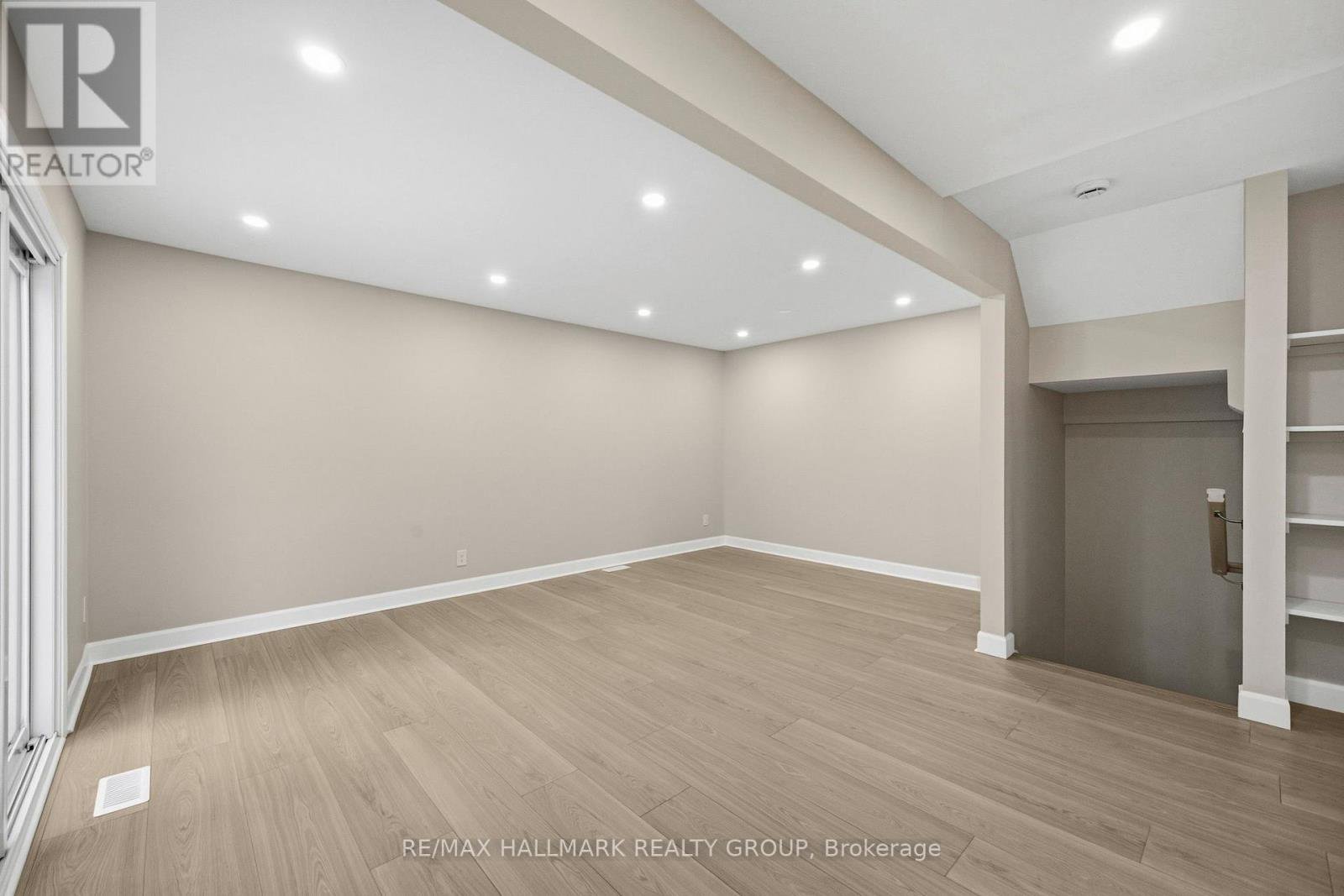Welcome to 1414 Ridgebrook Drive, a beautifully renovated end unit condo townhouse in the Pineview area offering exceptional updates and turnkey living. Fully upgraded in 2025, this home has been transformed from top to bottom, including new trim, flooring, electrical, door hardware, fresh paint, and high end finishes throughout. Pot lights span the home creating a bright, modern feel, while the redesigned kitchen features quartz countertops, large format backsplash tile, quality cabinetry, and brand new stainless steel appliances. The staircase showcases new berber carpeting and updated handrails, leading to the second level finished in luxury vinyl plank flooring. Upstairs offers three generously sized bedrooms, each with built in closets for added storage, along with a full bathroom complete with a stylish vanity and upscale finishes. The finished basement provides a spacious rec room, an additional full bathroom with stand up shower, and a utility room with extra storage, laundry, and a furnace updated in 2023. Outside, enjoy a private backyard retreat with new PVC fencing and no direct rear neighbours, a rare benefit of this end unit's positioning at the end of the row, along with the convenience of its own dedicated outdoor parking space. This fully renovated home combines quality craftsmanship, thoughtful upgrades, and privacy in a convenient location close to amenities, transit, and parks. 24 hour irrevocable on all offers.