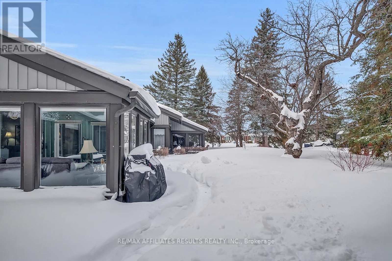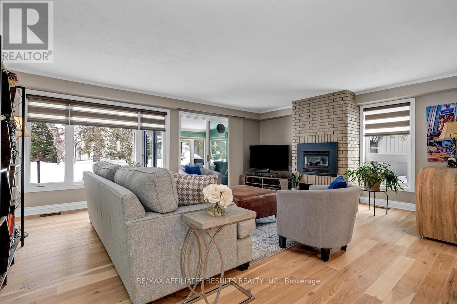 Welcome to 5 Arbor Ridge, a beautifully renovated 2-bedroom bungalow in the exclusive Amberwood Village community. This rare end unit is nestled in a secluded, park-like setting with mature trees and lush landscaping, offering true privacy and tranquility. Enjoy breathtaking views from your all-season sunroom, surrounded by windows on three sides-perfect for relaxing year-round. Step out to your private, extended stone patio with a natural gas BBQ, ideal for entertaining or quiet evenings at home. Inside, you'll find gorgeous new 5" hickory hardwood flooring (Logs End), an elegant gas fireplace, and a modern kitchen with new stainless steel appliances and updated countertops. The thoughtful layout includes a walk-in storage room, a full laundry room, plus a crawl space for seasonal storage. Guests will appreciate the additional bedroom and full bath. Recent upgrades like freshly painted top to bottom, new blinds throughout, new eavestroughing, new windows in the living room and second bedroom, and a garage door opener add peace of mind. Very spacious garage offers plenty of extra space for extra tires etc. Live a carefree lifestyle in this quiet, friendly community. Optional membership at the Amberwood Village Community Centre unlocks year-round access to golf, pickleball, aquafit, winter trails, yoga, fitness, and vibrant social events. Don't miss your chance to call this exceptional home your own; schedule a visit to 5 Arbor Ridge today and experience Ottawa living at its best!