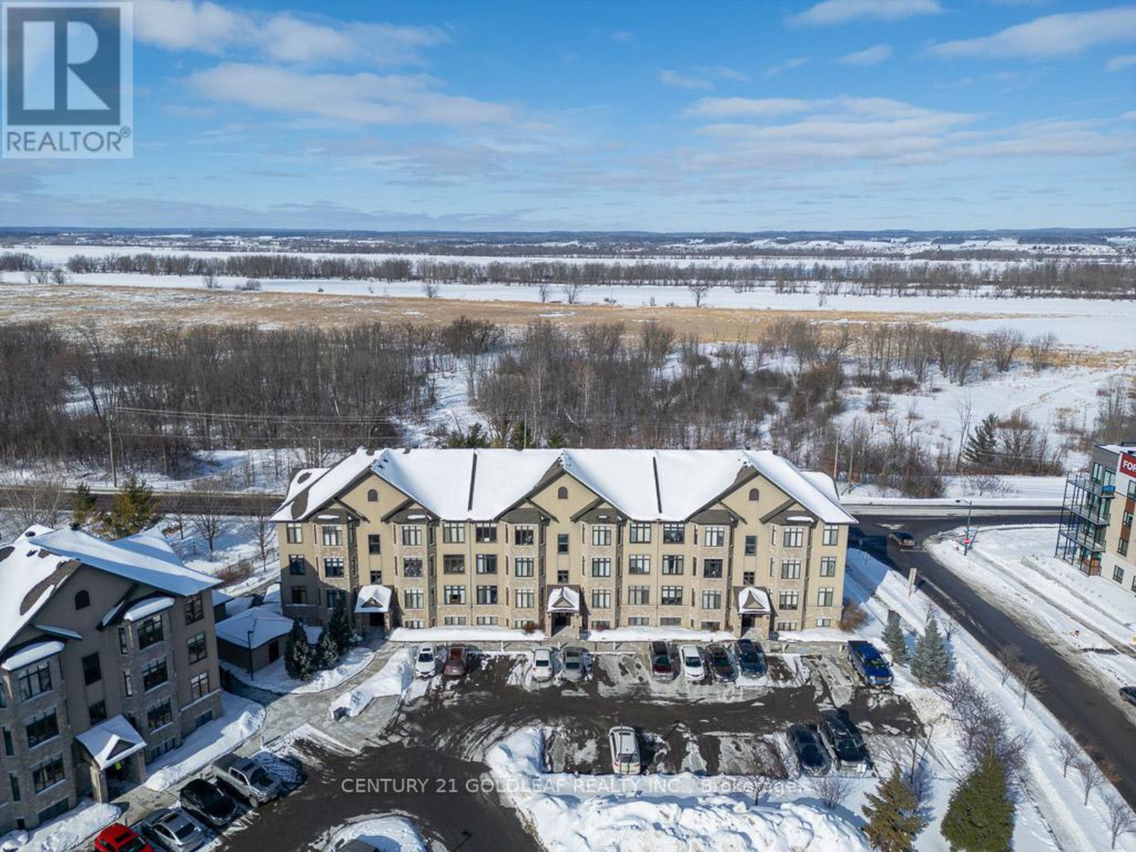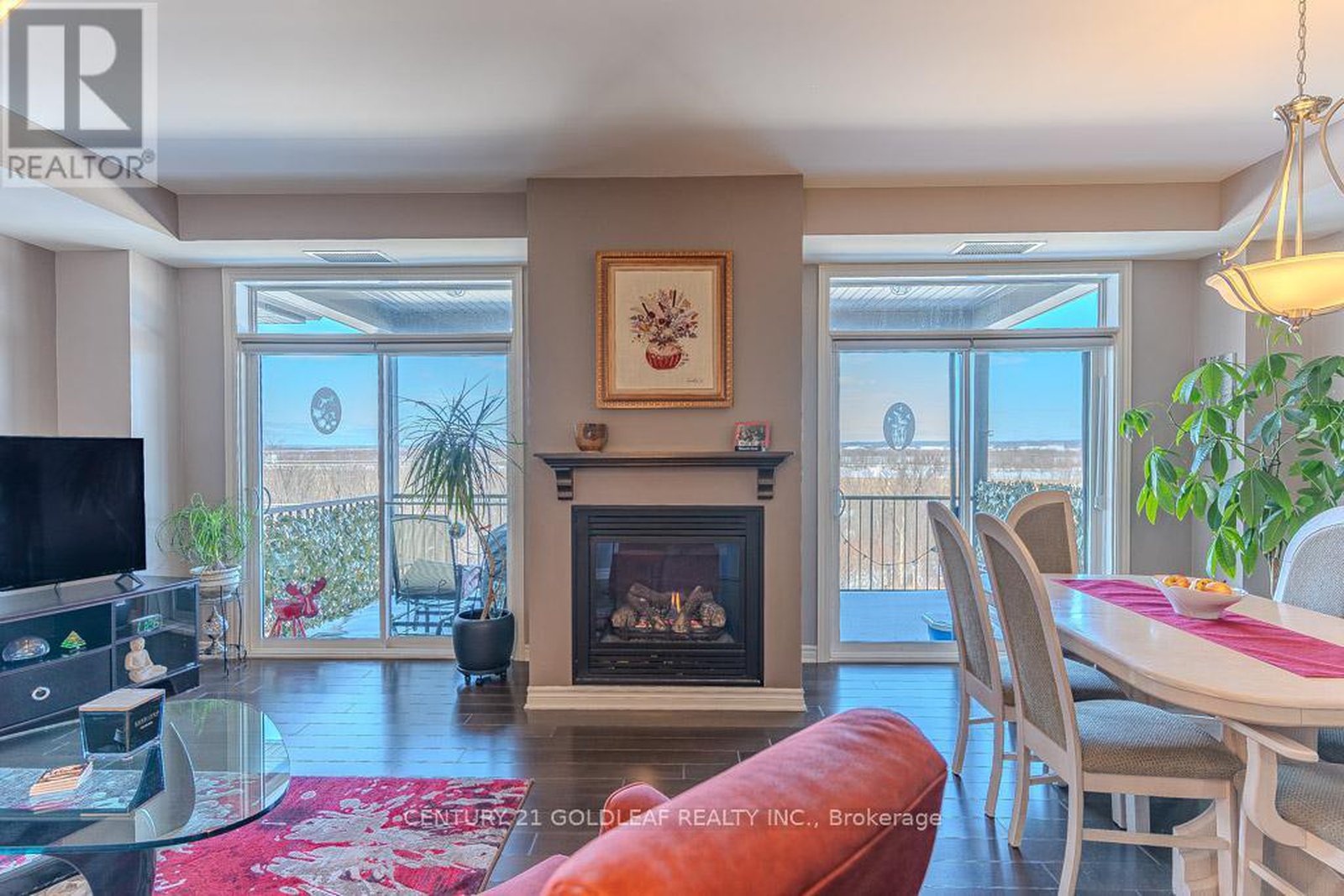 Perched on the top floor with sweeping, unobstructed views of the Ottawa River and Petrie Island, this bright and airy 2-bedroom, 1.5-bathroom condo offers an exceptional combination of peaceful retreat and everyday convenience. Perfectly positioned just steps from the Trim LRT station, it provides seamless city access and the opportunity for a truly car-free lifestyle in a beautiful natural setting. Inside, the suite is in immaculate condition, showcasing 9-foot ceilings, gleaming hardwood floors, and ceramic tile throughout. The inviting layout features two spacious bedrooms, including a primary suite with a generous walk-in closet and a luxurious full bathroom with a deep soaker tub and separate glass shower. A stylish powder room adds everyday functionality and convenience for guests.The modern kitchen blends elegance and practicality with granite countertops, stainless steel appliances, rich cabinetry, and generous workspace perfect for cooking and entertaining. In-unit laundry and dedicated storage ensure comfort and ease of living.The open-concept living and dining area centers around a cozy gas fireplace and is filled with abundant natural light from dual sliding patio doors leading to a large private balcony. This space is ideal for entertaining or simply relaxing while enjoying the river views.Outdoors, immerse yourself in the natural beauty surrounding Petrie Island-step onto scenic walking, hiking, and biking trails, or spend your days kayaking, paddling, or unwinding on the beach. In winter, enjoy cross-country skiing, snowshoeing, and ice fishing before returning to your fireside retreat.Complete with one parking space, bike storage, and quick access to shopping, schools, and amenities, this rare top-floor gem offers an incredible lifestyle-where stunning views, outdoor adventure, and modern comfort meet just 15 minutes from downtown Ottawa.