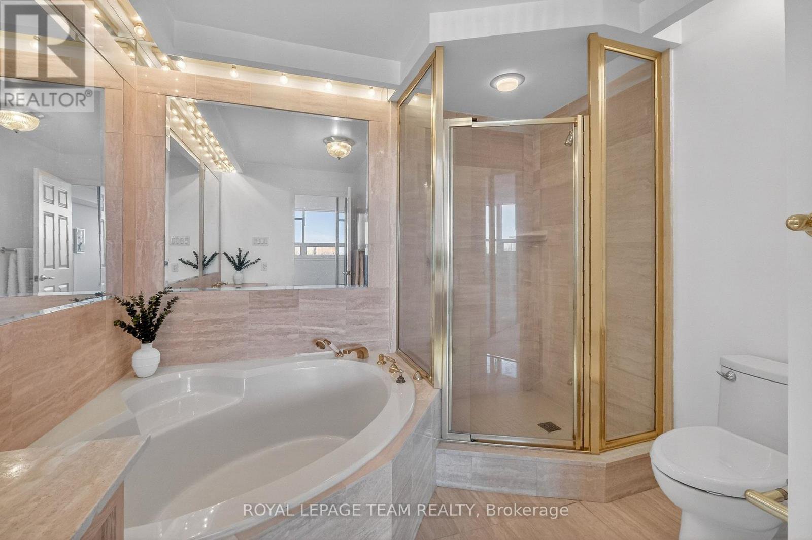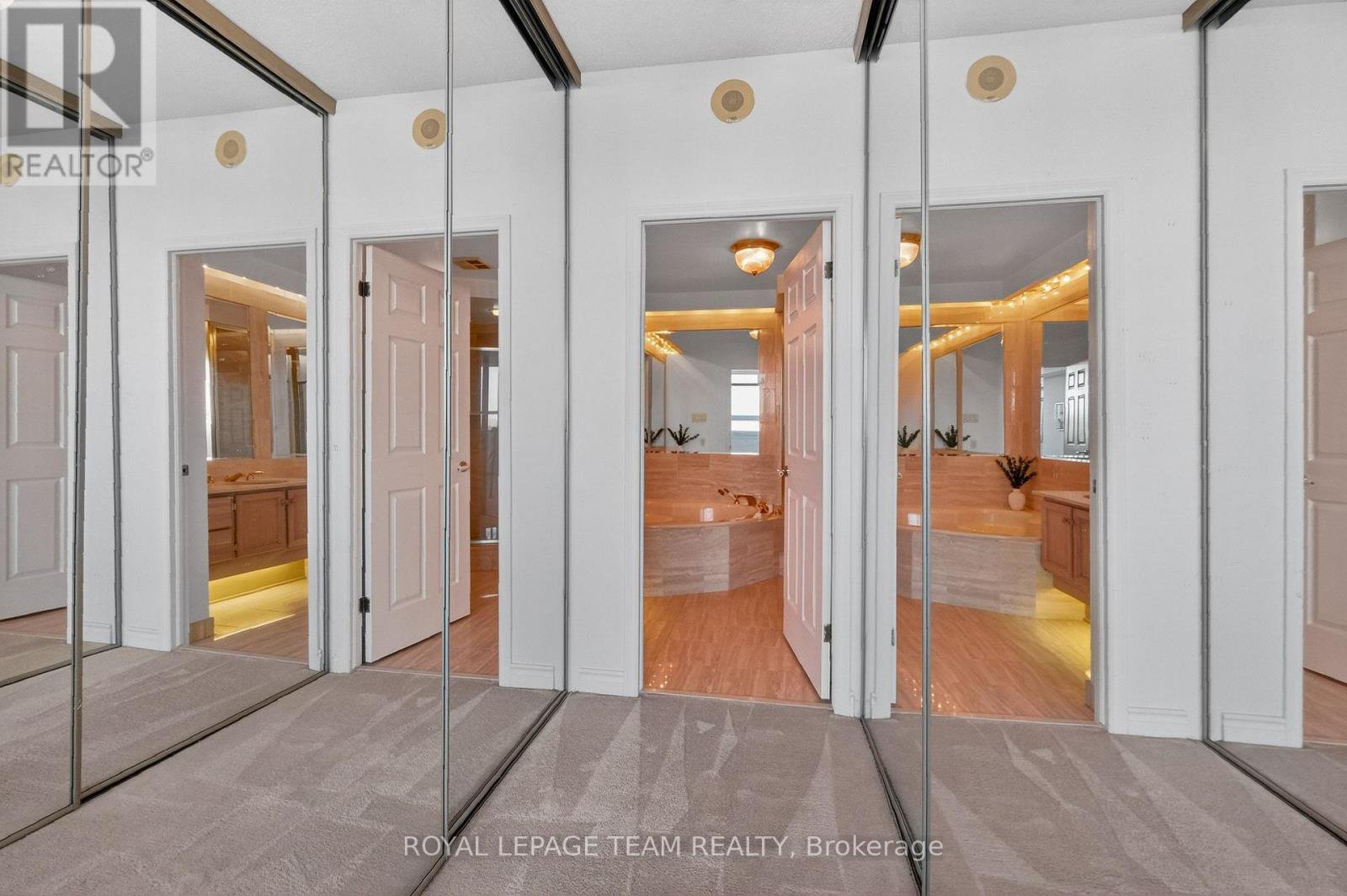 Welcome to this bright and well-maintained 2-bedroom, 2-bathroom condo offering comfortable and convenient living. The thoughtfully designed layout provides excellent separation between bedrooms, ideal for privacy or guests. Wall-to-wall carpeting throughout has been freshly cleaned, creating a warm and inviting atmosphere. The spacious primary bedroom features a full ensuite bathroom, while the second bedroom is perfectly suited for a home office, guest room, or additional living space. Enjoy low-maintenance condo living with generous living and dining areas, perfect for relaxing or entertaining. The Riviera is Ottawa's most coveted Country Club Condo offering 24/7 concierge security. The exquisite Riviera complex features indoor/outdoor pools, 4 tennis, 2 exercise rooms, squash & badminton courts, yoga, stretch & aqua fitness classes, games room, renovated Nordic-like spa & elegant reception rooms. Steps to LRT, Train Yards shopping & Transit. Prestigious living so close to the city!