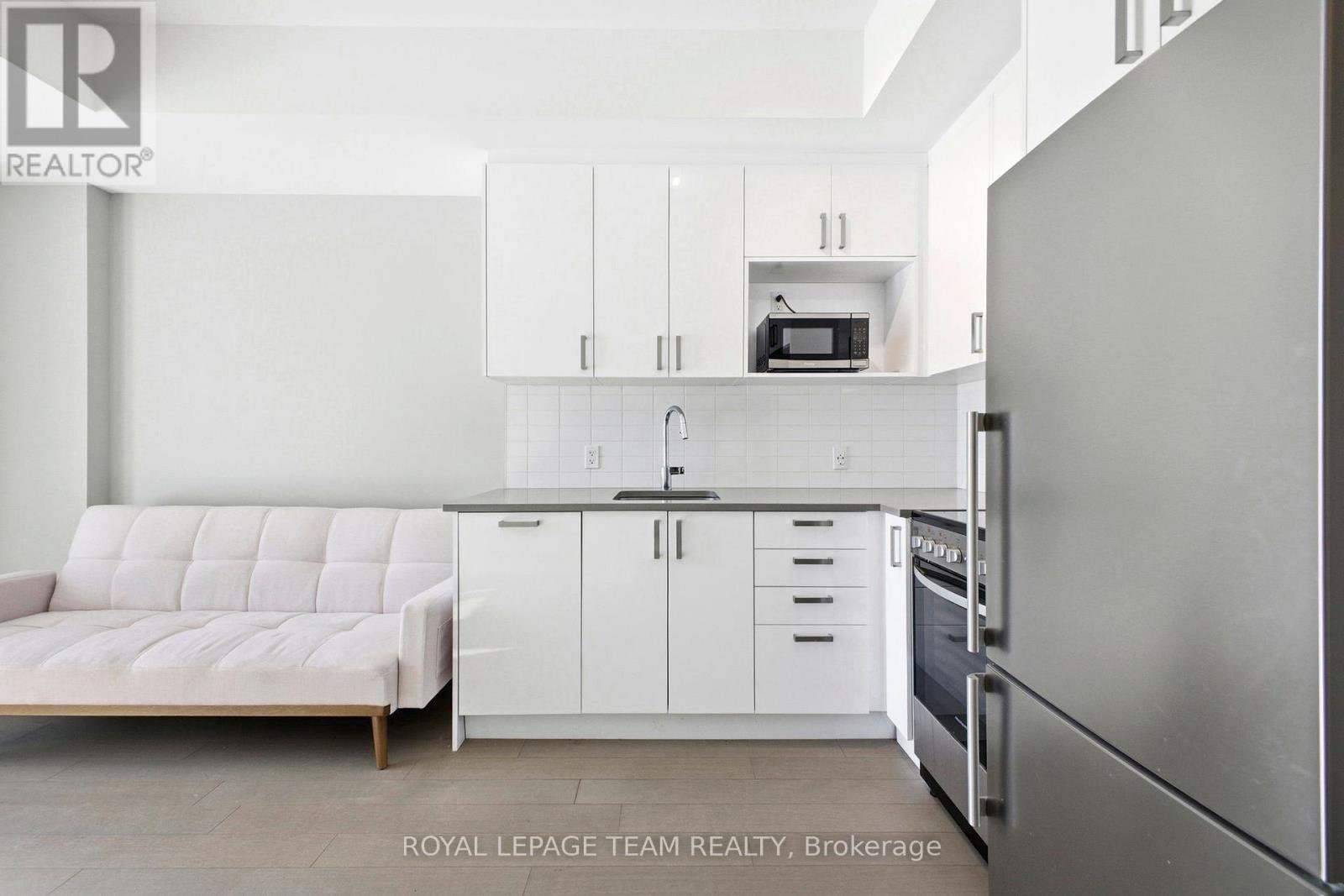Welcome to Unit 209 at The Spencer in Greystone Village, where modern design meets an unbeatable Old Ottawa East lifestyle. Perfectly situated between the Rideau Canal and the Rideau River, you are steps to scenic bike paths, walking trails, cafés, restaurants, and vibrant Main Street amenities. This bright and efficiently designed bachelor features impressive 10 foot ceilings and oversized windows that fill the space with natural light. The contemporary kitchen offers sleek cabinetry, quartz countertops, stainless steel appliances, and clean modern finishes that feel both stylish and functional. The open layout is thoughtfully planned to maximize flexibility, allowing comfortable space for living, dining, and working from home. In unit laundry adds everyday convenience. The building amenities truly elevate the experience, including a fully equipped fitness centre and a stunning rooftop terrace with lounge areas, dining space, prep kitchen, gas fireplace, and beautiful river views. A guest suite is available for visiting family and friends. Located close to Saint Paul University and the University of Ottawa, and just minutes to downtown by bike, transit, or car, this condo is ideal for students, young professionals, or investors looking for a prime location. Modern. Efficient. Lifestyle driven. Unit 209 is city living done right.