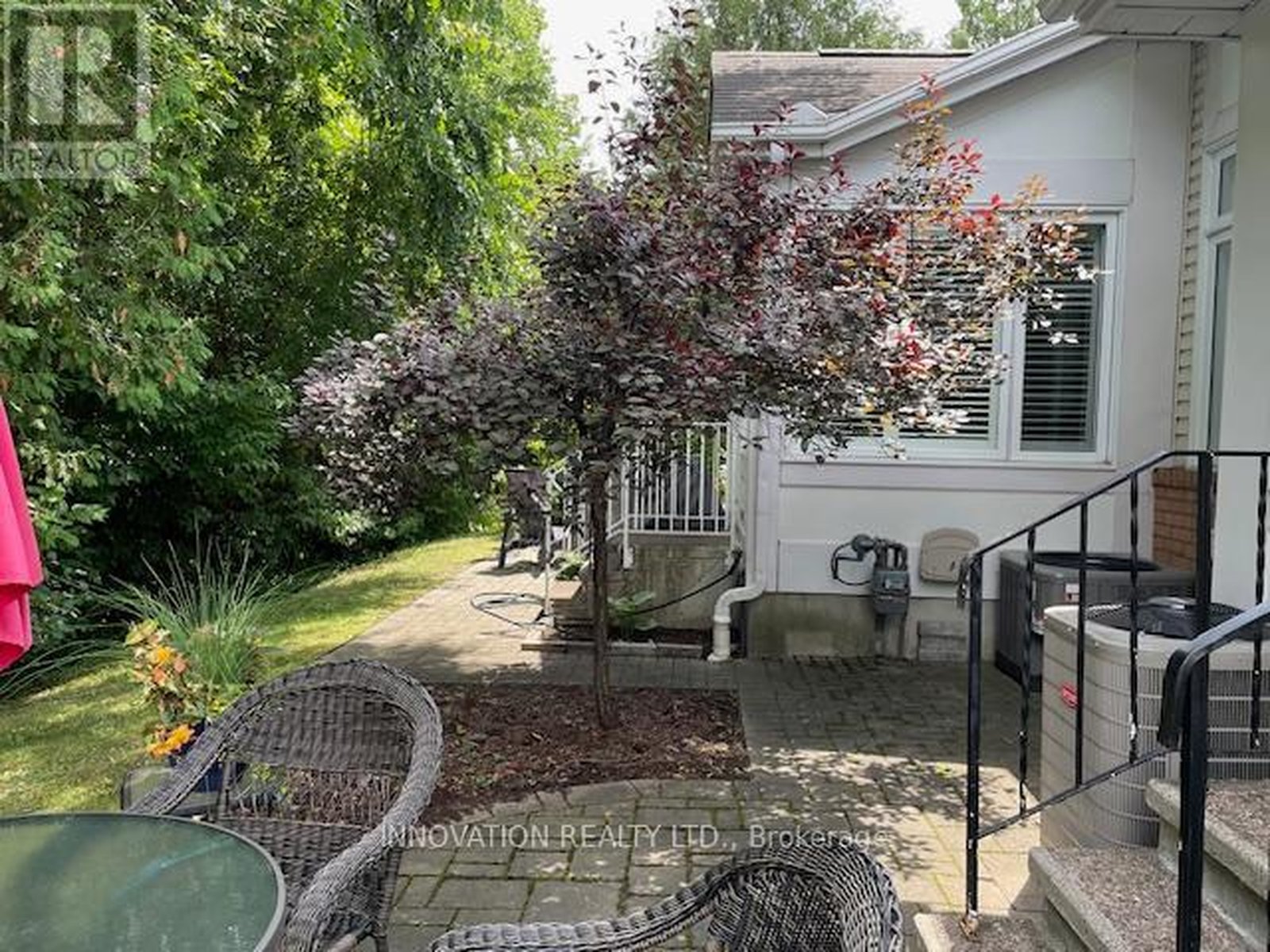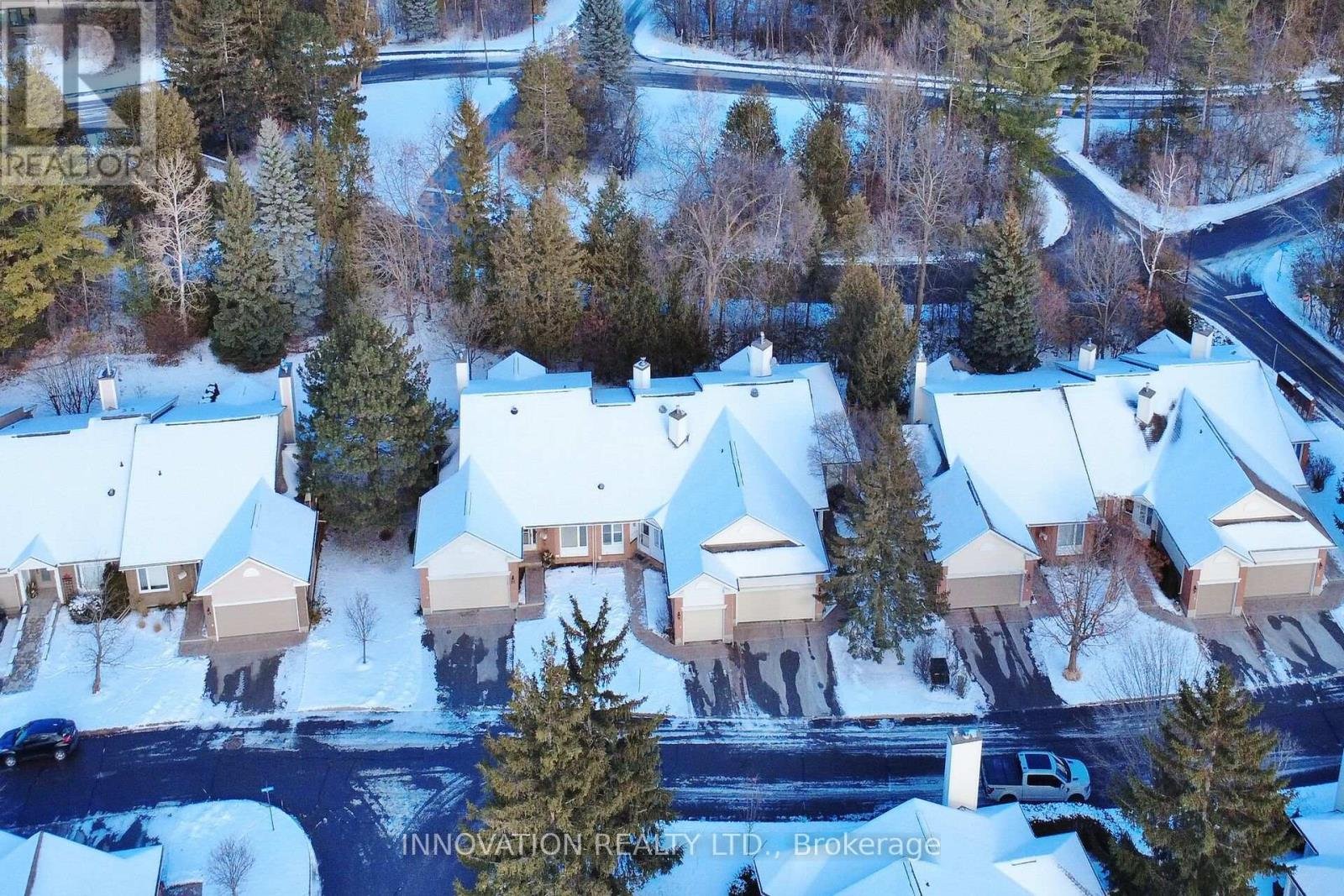 Beautiful Amberwood worry free adult living. Classic 2 bdrm, 3 baths bungalow w/attached single garage w/ inside entry. Immaculate & beautifully maintained. 1320 sq ft on main level. Large & finished Family space on lower level. Spacious foyer, large kitchen w/ plenty of cupboards, huge pantry. All appliances are to remain. Sunny Dinette w/ window. Convenient inside entry to garage. Spacious Living & Dining rm featuring cozy fireplace.Gleaming hardwood flooring in Living and Dining rms as well as Sunroom. Bright sunroom for TV watching/ reading. Elegant Primary bdrm w/ double closet space & updated ensuite bath. Large 2 nd bedroom offers great space as guest bdm or den/ home office. Adjacent 4 pc bath. Quality gleaming hardwood, neutral carpets and updated vinyl tile flooring. Bright and spacious finished lower lv offers large family space. Oversized window provides lots of light. Large 3 piece bath. Large open unfinished area with workshop table. Plenty of storage, lots of space for all kinds of hobbies. Private backyard with attractive stone patio. No rear neigbours. Close to all Stittsville wonderful amenities, walk to golf course. Park like setting with mature trees and nature at your door. 24 hrs irrevocable on all offers. All new high quality windows installed October 2024, incl oversized one in basement. 2024 - furnace and a/c. Snow removal, landscaping , building insurance and exterior maintenance- all covered in monthly fees. Beautifully presented and in move in condition. Flexible possession. Status certificate on file.