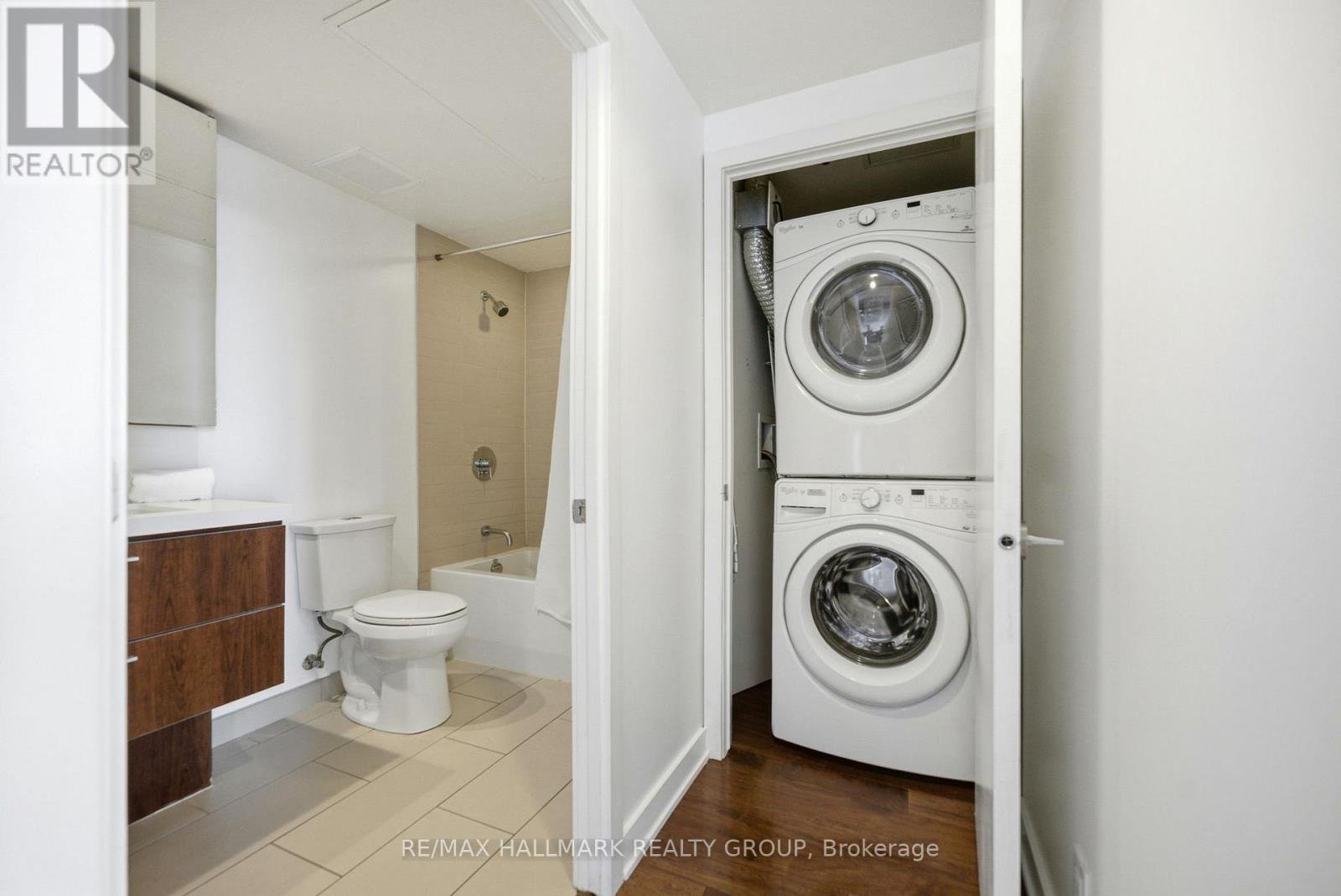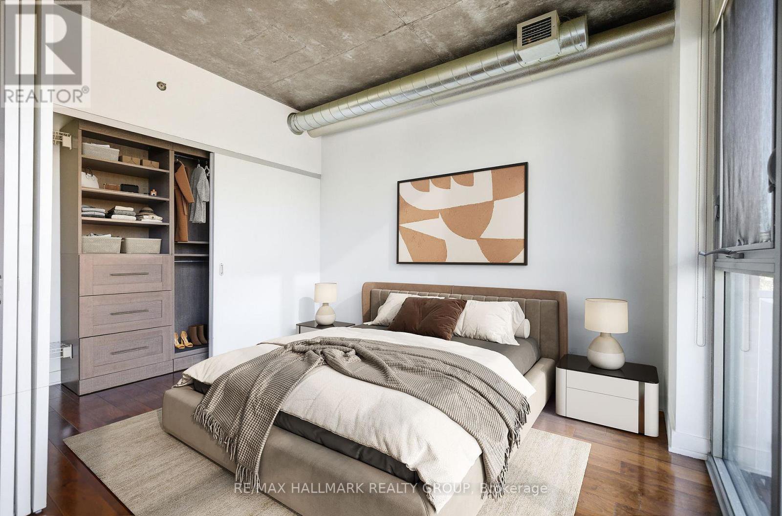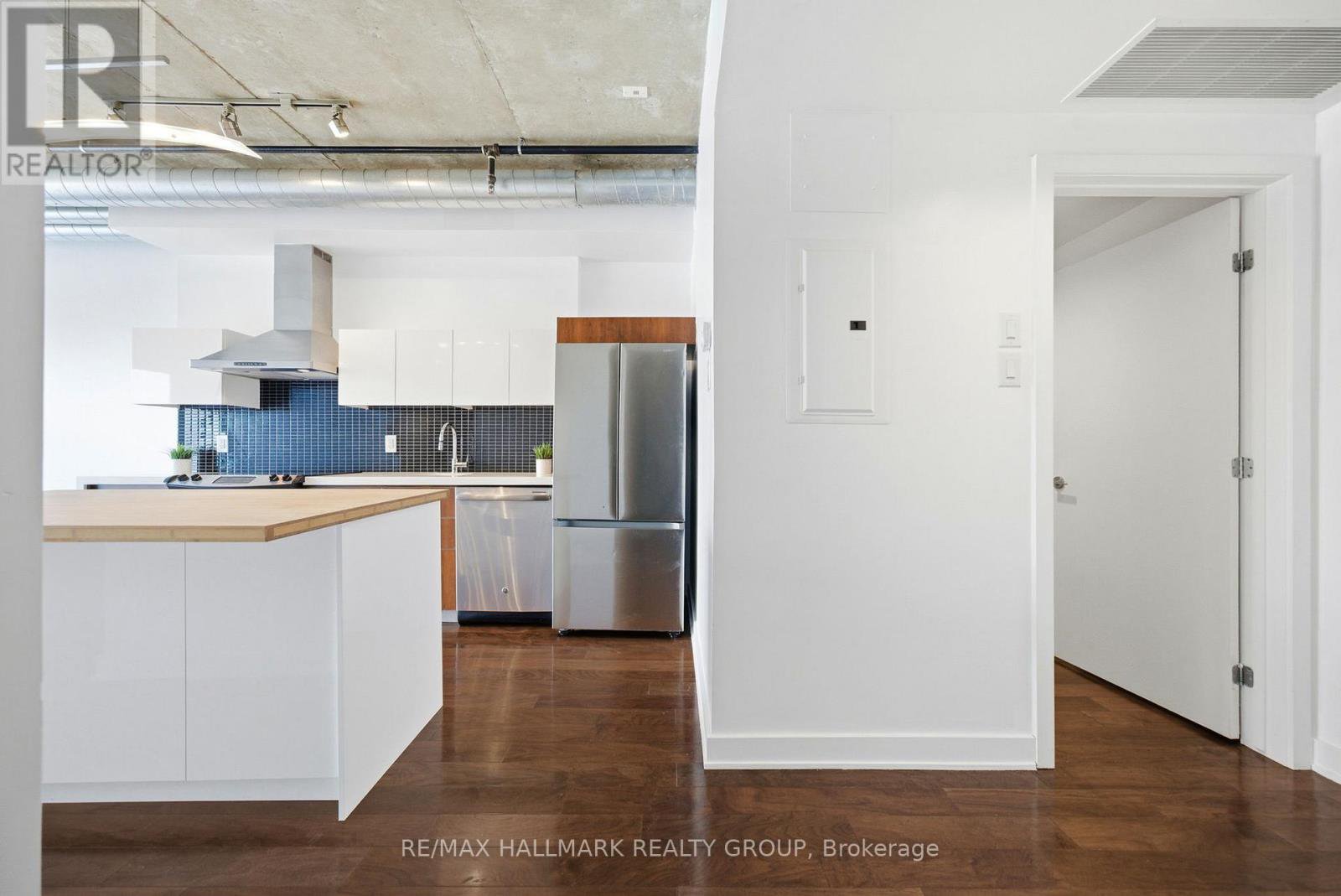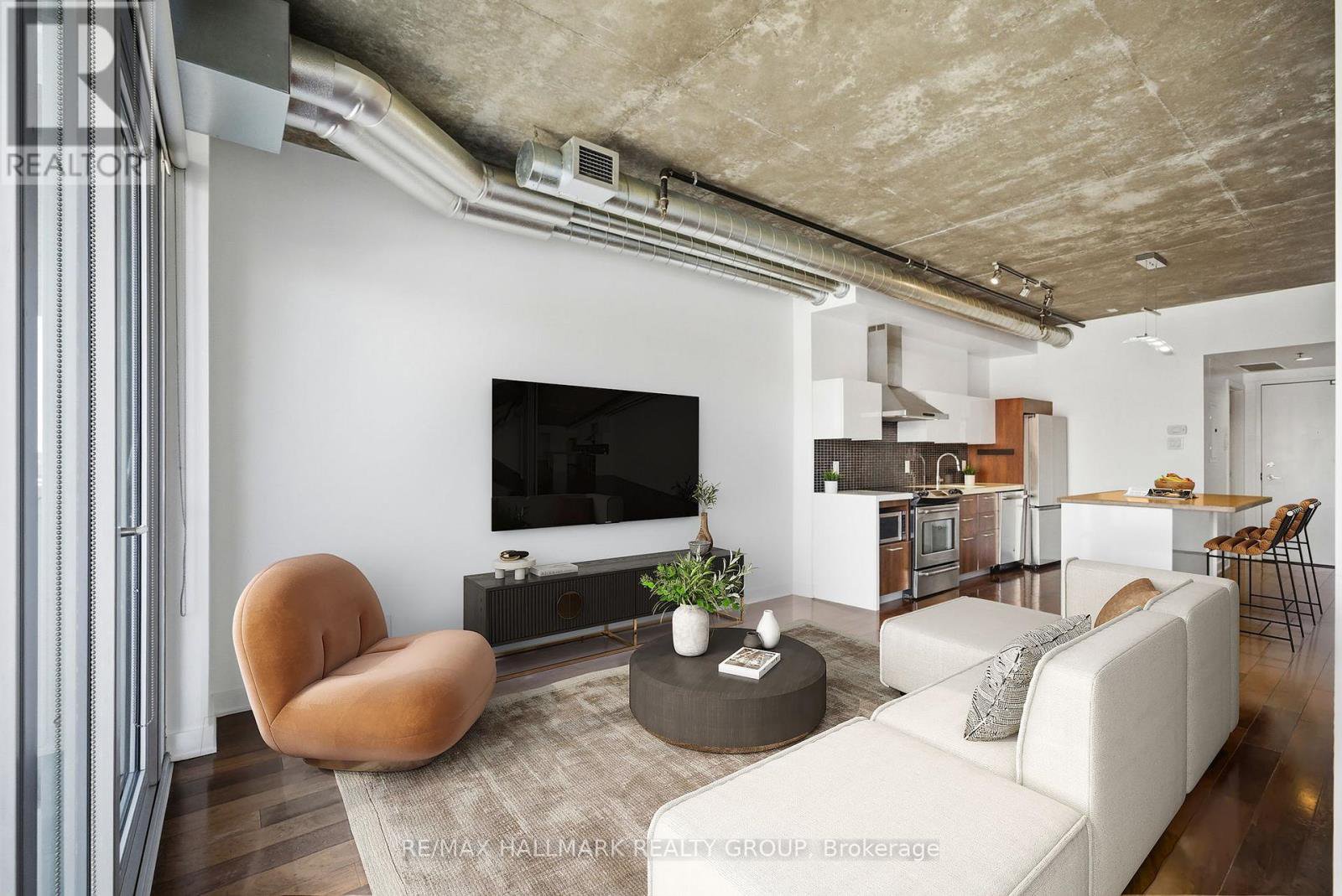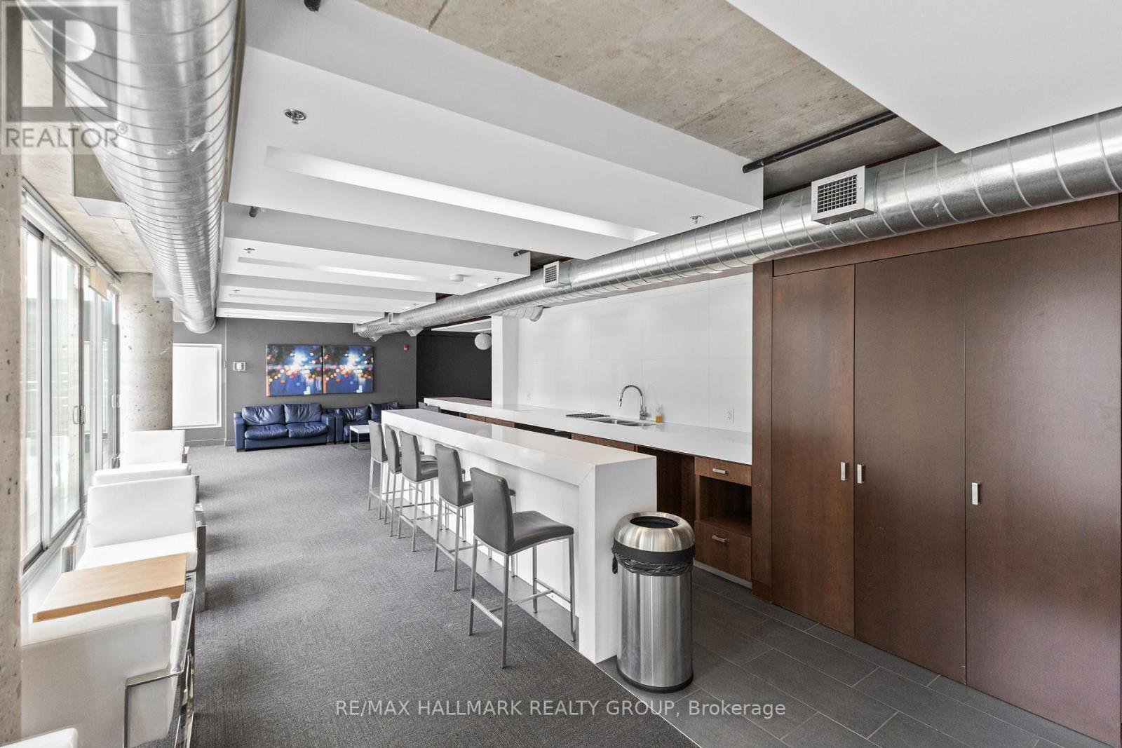 Urban living at its finest! Welcome to The Hideaway at 340 McLeod Street in the heart of vibrant Centretown. This 1-bedroom + den, 1-bathroom condo offers 694 sq. ft. of thoughtfully designed living space complete with a spacious balcony, underground parking spot, and a storage locker. Step inside and feel instantly at home in this modern space with an industrial edge, featuring 9-foot ceilings, exposed concrete and pipes, floor-to-ceiling windows with full roller shades, hardwood floors and fresh paint throughout. The kitchen is both stylish and functional, with quartz countertops, stainless steel appliances, and a large centre island that provides extra prep space and storage. The primary bedroom serves as a flexible retreat with movable privacy doors and a custom-built closet organizer. The generously sized den is perfect for a home office, guest space, or even a second bedroom. A full bathroom and convenient in-unit full-size laundry complete the interior. Off the living area, step out onto your east-facing balcony, the perfect spot to enjoy your morning coffee or unwind in the evening while taking in city views, including the historic Canadian Museum of Nature. Residents enjoy an impressive lineup of amenities, including an outdoor heated saltwater pool with a lounging area, a ground-floor terrace with a fireplace, a fully equipped fitness centre, a theatre room, a party room with a bar and pool table, and secure bike storage. Located steps from shops, restaurants, parks, and cafés, with easy access to Highway 417, Elgin Street, Lansdowne, and a quick bike or transit ride to Parliament and downtown. Enjoy resort-style living in the city! 24-hour irrevocable on all offers (as per Form 244). Schedule B to accompany all offers (deposit handling). Floor plan attached.