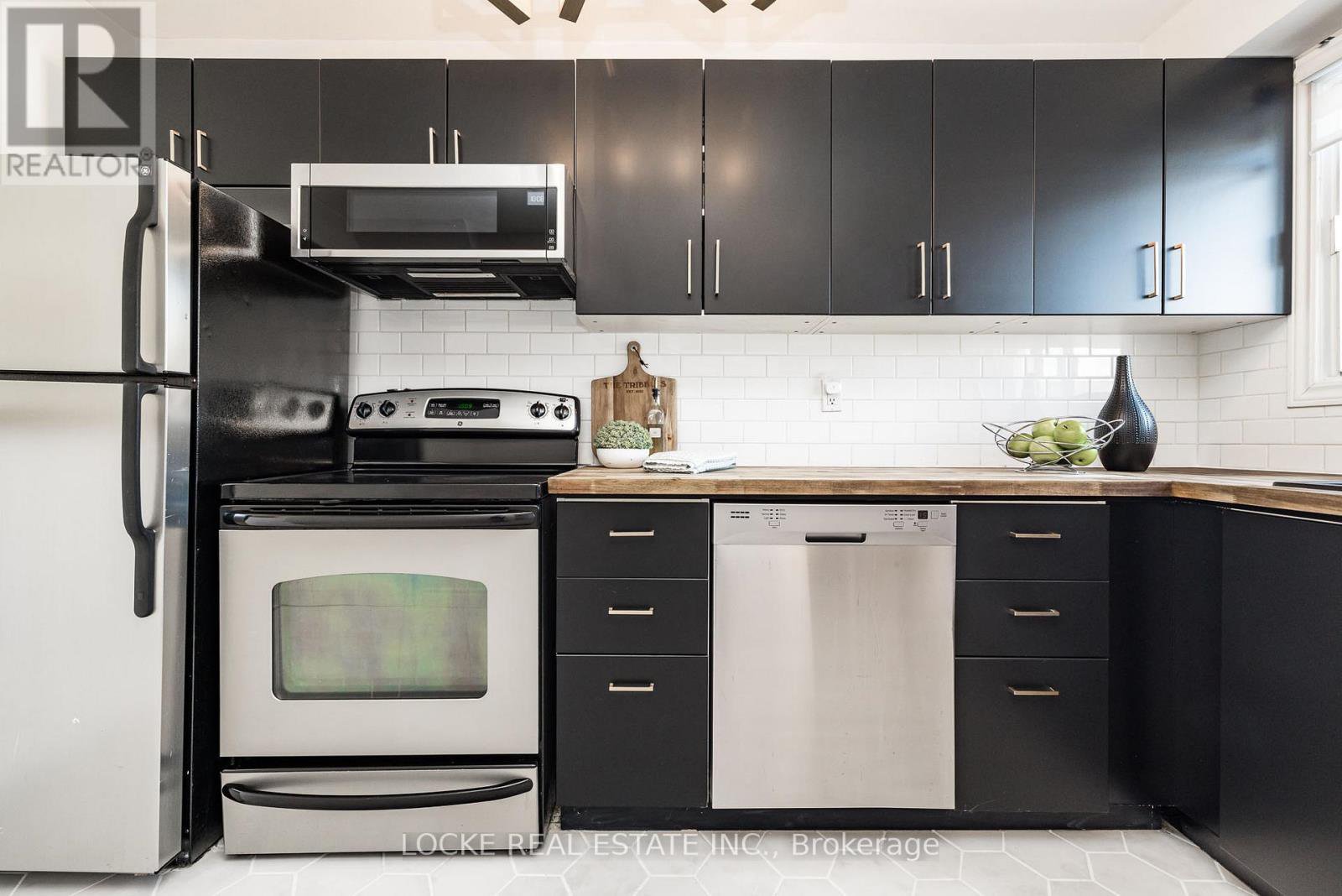 OPEN HOUSE SUNDAY FEB 22, 2pm to 4pm. Cute as a button and oh so bright! So many updates and reno's since 2021 in this 2 bedroom condo nestled in charming complex. Very open and renovated kitchen (cabinets, butcher block counters, ceramic floors, some appliances, black double sink). Quality flooring in living room and dining area plus upper level and finished lower level. Carpet on stairs only. Freshly painted, newer light fixtures, A/C 2021. Second level has 2 equally spacious bedrooms (second bedroom has trendy shiplap detailing and 2 closets) and family sized 4 piece bathroom (updated shower and floor tile, faucet, shower head and sink faucets). Relax in the cozy basement recroom or use it as an office or workout area. Fireplace has been condemned, sold "as is". Fenced backyard. Parking is in front of unit #20. Close to 417, downtown via Vanier Parkway, St. Laurent Shopping Centre, public transit, LRT, Donald street bike corridor, CSIS, Trainyards and more. 24 hour irrevocable on all offers.