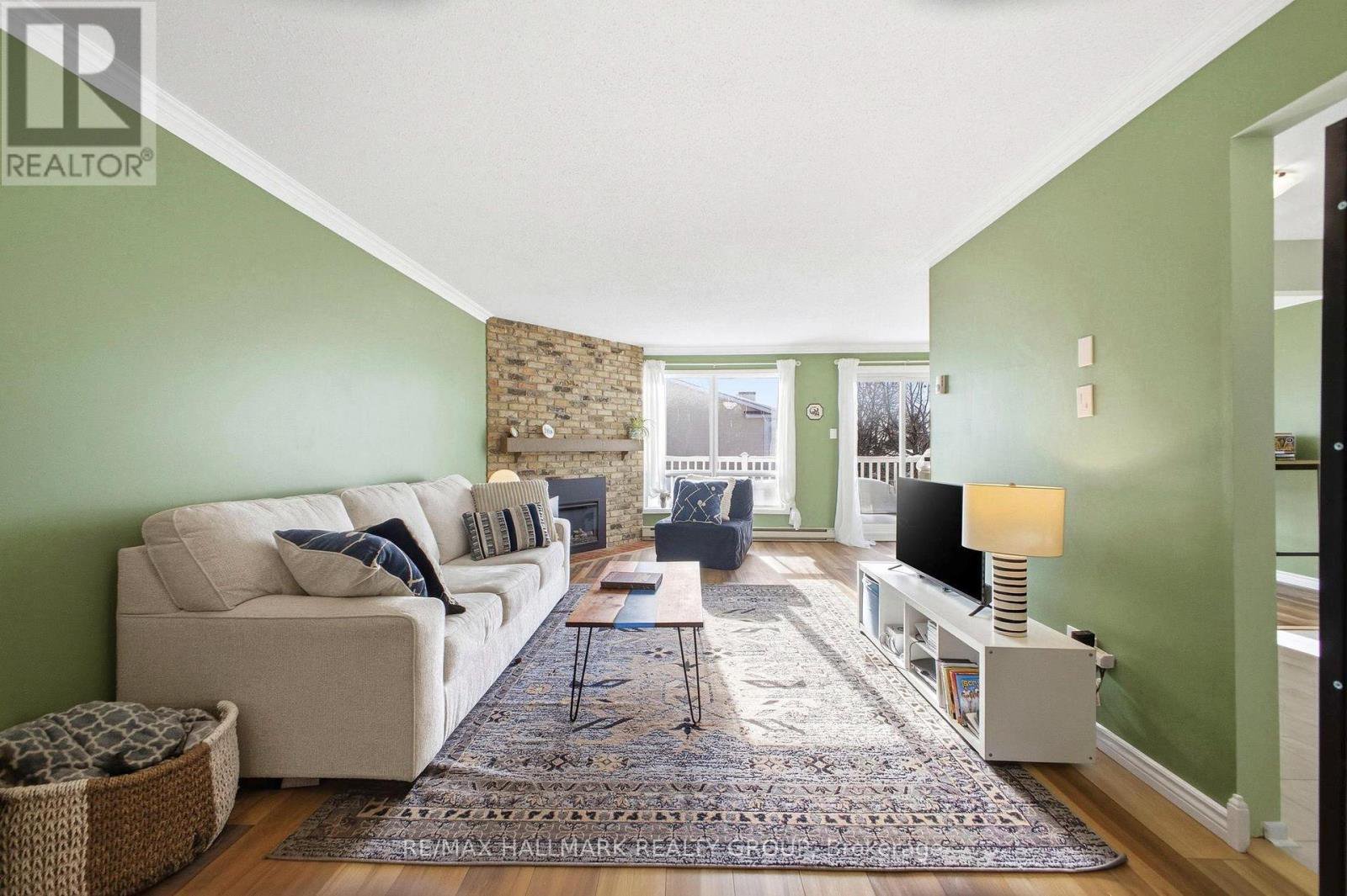 Welcome to this beautifully updated 2-bedroom, 2-bath second-floor end unit in the heart of Kanata's sought-after Bridlewood community. This move-in-ready home has been thoughtfully refreshed throughout, featuring fresh paint across the bedrooms, main living area, kitchen and ceilings, complemented by elegant crown moulding. The bright, functional kitchen was upgraded with new tile flooring (2026) and a stylish bar-top addition, perfect for casual dining and entertaining. The open-concept living and dining areas are warmed by a cozy fireplace and lead to a large private balcony overlooking quiet treed pathways and the community's outdoor inground pool, an ideal spot to unwind. The spacious primary bedroom offers a private ensuite and custom PAX storage, providing excellent organization and added functionality. A full 4-piece main bath, in-unit laundry, and ample storage complete the interior. Enjoy the convenience of one private garage parking space plus two surface parking spaces, along with plenty of visitor parking. Located just steps from Bridlewood Plaza, public transit, parks, walking paths, recreation facilities, schools, and everyday shopping, this home offers outstanding walkability and easy access to everything Kanata has to offer. A turnkey opportunity in a quiet, well-managed community, perfect for first time buyers or downsizers looking to move in and enjoy immediately.