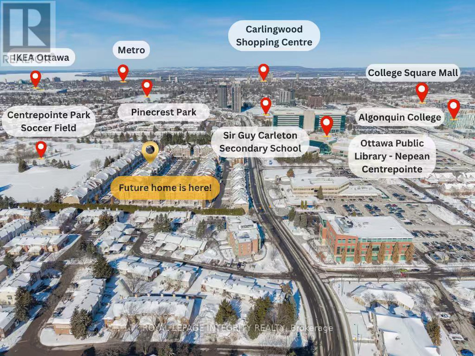 Location truly matters - and this home offers the best of both convenience and comfort. Situated right beside Centrepointe Park, you can enjoy daily walks, fresh air, and green space while still living in a central Ottawa location. It's just steps to the Ottawa Public Library and Algonquin College, making it perfect for professionals, students, or small families. Within a 10-minute drive, you have easy access to Loblaws, IKEA, Walmart, Canadian Tire, Costco, Bayshore Shopping Centre, the Queensway Hospital, and Nepean Sportsplex. Quick access to Highway 417 and nearby transit, including future LRT. You're close to everything, yet the neighbourhood remains quiet and peaceful. This bright 2-bedroom, 3-bathroom stacked townhouse offers a practical open-concept main level with a spacious kitchen, breakfast area, and comfortable living and dining space that flows naturally together. The living room has been upgraded with additional pot lights, making the space brighter and more inviting, especially in the evenings. A private balcony is perfect for enjoying morning sunshine, and a convenient powder room completes the main floor. The home was freshly painted throughout in 2026, including all doors, and features new modern light fixtures installed in 2026, giving it a clean and updated feel. It has also been professionally deep cleaned, with carpets steam-cleaned, so it is truly move-in ready. The lower level offers two ensuite bedrooms, each with its own full bathroom, providing privacy and flexibility. A same-level laundry room and extra storage space add everyday convenience. This home combines a great location, functional layout, and peaceful setting - a wonderful opportunity to enjoy comfortable living in the heart of Ottawa. Washer & Dryer upgraded (2023), Storage Room updated (2021), Carpet replaced (2017). One surfaced parking spot is included(#224).