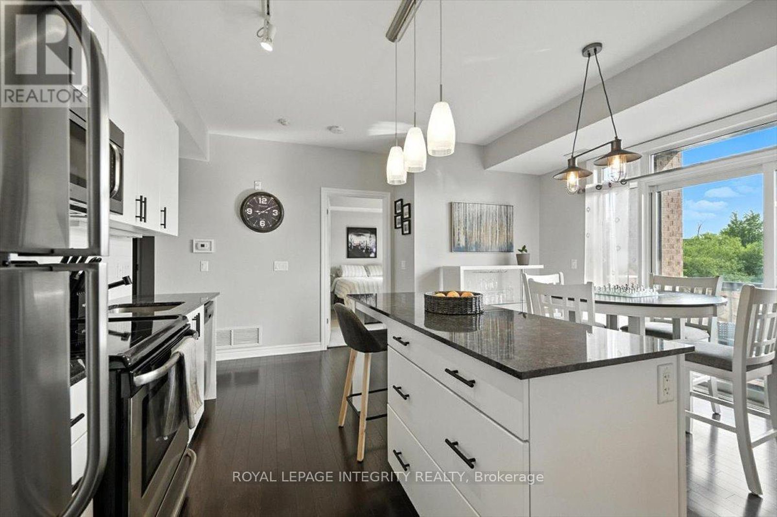Welcome to 755 Beauparc Private, Unit 202 - a bright, modern and move-in ready 2 bedroom, 2 bathroom condo perfectly situated just steps from the Cyrville O-Train Station, making your commute quick and seamless. Nestled in a quiet, well-maintained building, this beautifully kept unit offers the perfect balance of nature and urban convenience. Start your mornings on the east-facing balcony with a coffee, enjoying serene views of the forested area, all while being minutes from St-Laurent Shopping Centre, Loblaws, Gloucester Centre, Costco, a movie theater, and a wide variety of restaurants and amenities. Inside, the open-concept layout is filled with natural light showcasing the gleaming hardwood floors. The contemporary kitchen features granite countertops, stainless steel appliances, ample storage, and a large island that flows into the dining area with patio doors to the balcony. The spacious primary bedroom includes two closets and a private 3 piece ensuite with a glass shower. A generous second bedroom, full bathroom, and in-unit laundry with newer washer and dryer complete the space. Extras include a same-floor storage locker conveniently located next to the elevators, bicycle storage, and one included parking space. The building is pet-friendly with a large green space at the front and features elevators for added comfort. This is a fantastic opportunity in a well-connected location, making it ideal for professionals, first-time buyers, or investors!