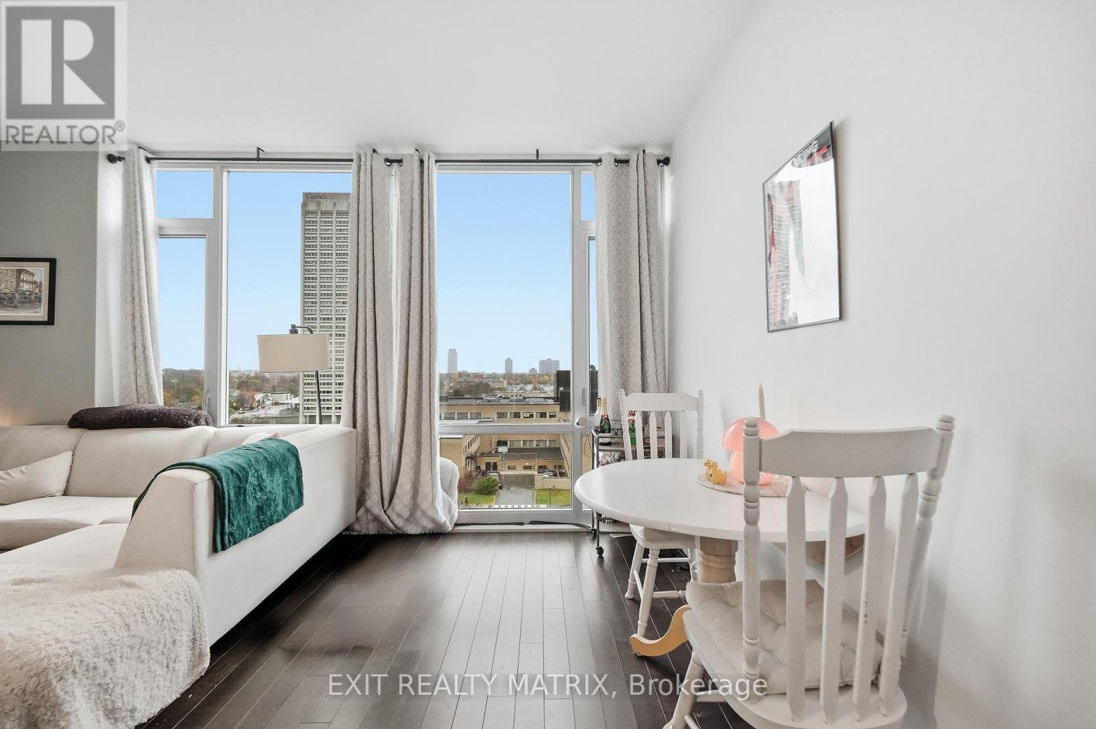 Steps from the Ottawa River, this modern 1-bedroom, 1-bathroom condo offers a perfect balance of the city's convenience and natural beauty! Enjoy access to scenic biking and walking paths, public transit, and a variety of local shops, cafes, and restaurants. Parks, farmers' markets, and art galleries are all within walking distance. Located in the vibrant community of Mechanicsville and Hintonburg, this area is known for its mix of young professionals and families who value an active lifestyle and a strong sense of community. The unit features quartz countertops in the kitchen and bathroom, hardwood floors, floor-to-ceiling windows with 9th-floor views, in-unit laundry, modern appliances, one underground parking space, and a storage locker. Residents enjoy premium building amenities including a fully equipped gym, boardroom, theatre, and an impressive rooftop terrace with BBQs, a hot tub, and a sundeck with views of the River. Enjoy the convenience of condo fees that cover heat, water, and air conditioning. Book your showing today!