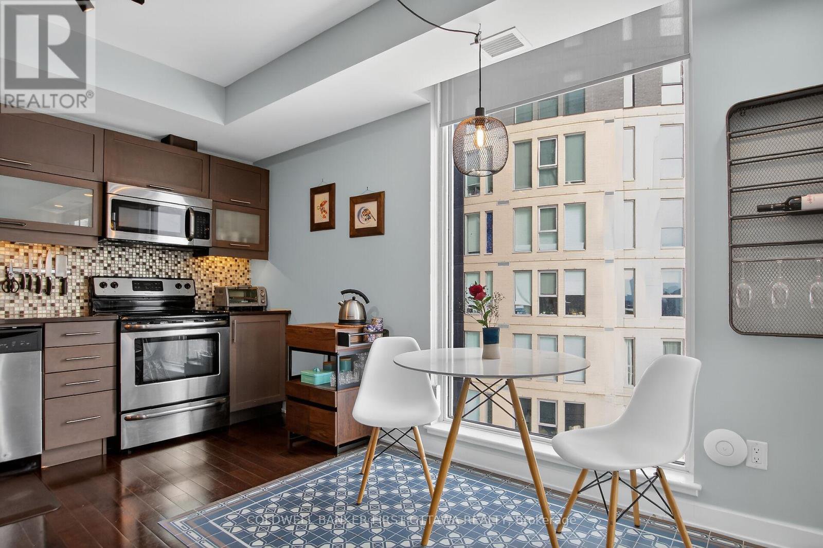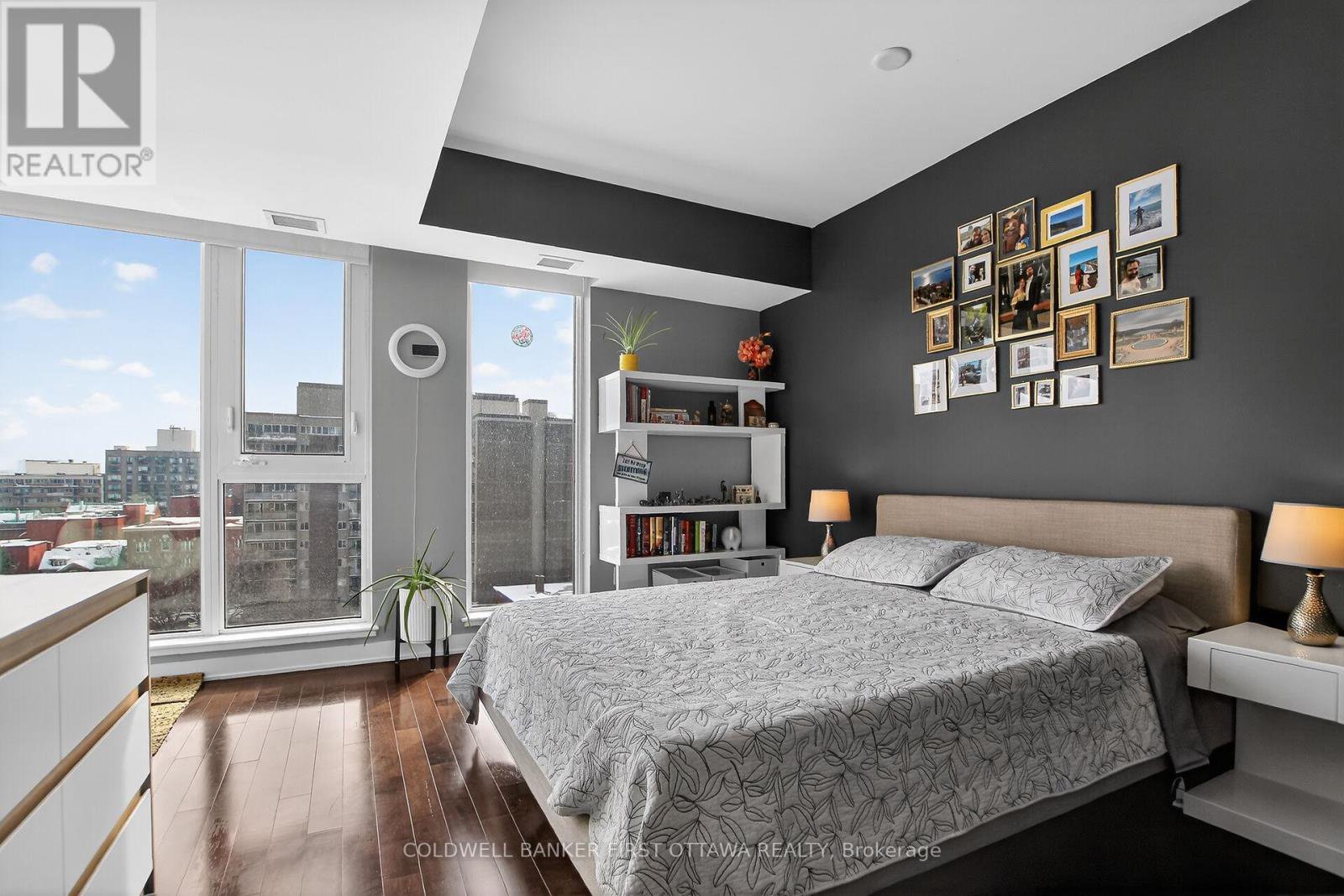 Bright (South exposure) corner 1 + den unit in the Tribeca condo building. Nicely located withing walking distance to Ottawa U, Parliament Hill, Rideau Centre with a convenient Farm Boy and coffee shop on the main level. This unit is open concept and has no carpets; all wall to wall espresso hardwood floors & Smart light switches. Quartz countertop in the kitchen and bath. The open den space has been modified with glass sliding doors to create storage space but can easily be opened up by removing the doors.The bigger 1 + den in this building offers approx. 805 square feet of living space. Heat and water are included in the condo fees. All appliances: Fridge, Stove, Microwave Hood-fan, Dishwasher, Washer & Dryer and custom blinds all included. No rental items. Includes underground parking and a storage locker. The ensuite laundry space off the foyer offers also some in-unit storage. Great condo amenities include: Gym, Indoor pool, Sauna, Guest Suites, visitor Parking in underground parking on Nepean Street, terrace with BBQ's (all these on 2nd floor) & roof top terrace. Available within 30 days of accepted agreement of purchase.