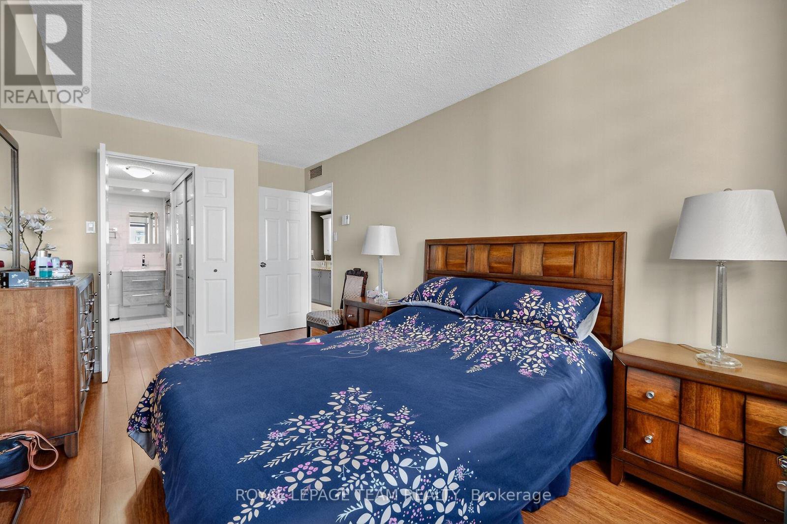 I am excited to introduce an exceptional listing at Queen Elizabeth Towers. This polished condominium unit, situated on the 18th floor, features incredible north-facing views of the Ottawa River and an abundance of natural light throughout the space. The property has undergone approximately $100,000 in high-end upgrades. Notable improvements include a fully renovated kitchen with quartz countertops and stainless steel appliances, updated bathrooms featuring granite counters in the main bath, bamboo flooring, new lighting, closet doors, and heating radiators. For added convenience, the unit includes a full-size, in-unit washer and dryer, two bedrooms, two bathrooms, and two tandem parking spots. Residents of Queen Elizabeth Towers enjoy a wide array of premium amenities, including: 24-hour manned security and a main lounge with a library and games; an indoor pool, hot tub, sauna, and an exercise and weight room; a billiard room, a small workshop, and three guest suites; and a newer fourth-floor outdoor terrace equipped with shared BBQs. The building is ideally located within walking distance of the downtown core, public transit, and a variety of local shops and services.