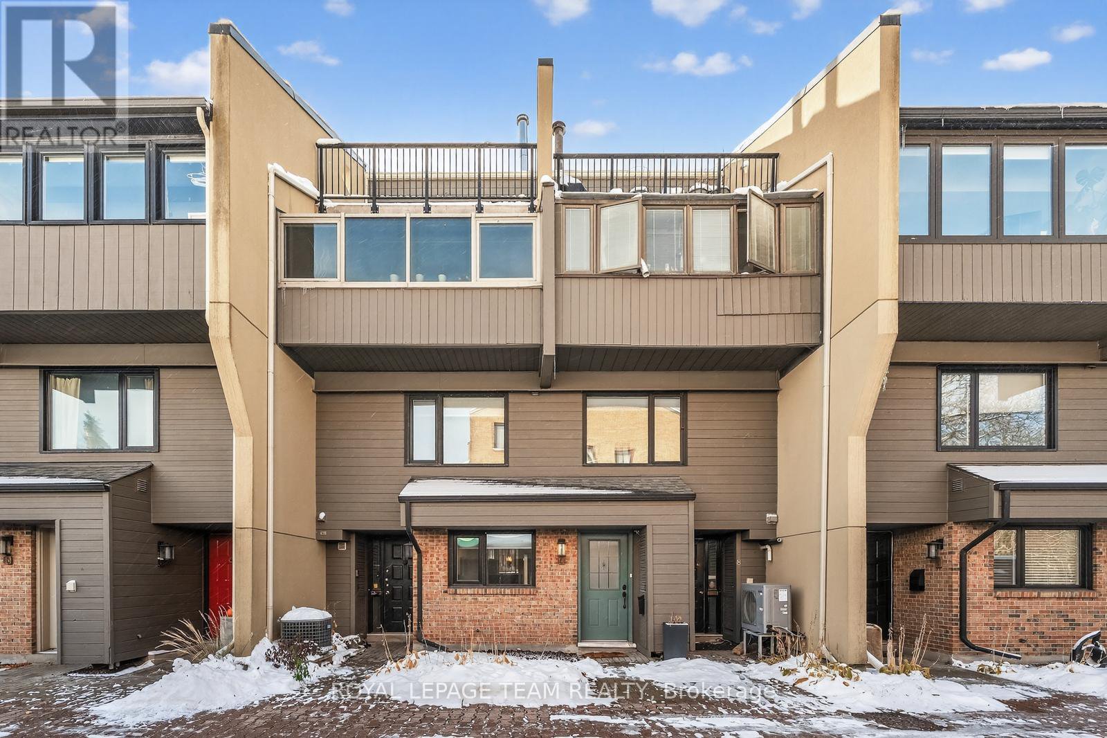 Beautiful, light-filled townhome in an exclusive enclave steps from the ByWard Market. This bright, architecturally intriguing home features floating staircases, airy railings, and exceptional natural light across multiple levels. The generous kitchen offers granite countertops, abundant cabinetry, and a lovely window overlooking the private courtyard. The dining room flows effortlessly into the upper and lower levels. A half-level up, the living room impresses with a gas fireplace, built-ins, and patio doors to a large private deck shaded by a mature tree-an unexpected urban retreat. This level also includes a spacious primary bedroom with wide window, full wall of closets, and a stylish bathroom with deep shower. Upstairs are two bright bedrooms with great closets and a full bathroom. The lower level adds a large skylit rec room, laundry room, and ample storage. A rare blend of calm, privacy, and downtown convenience in a beautifully designed home.