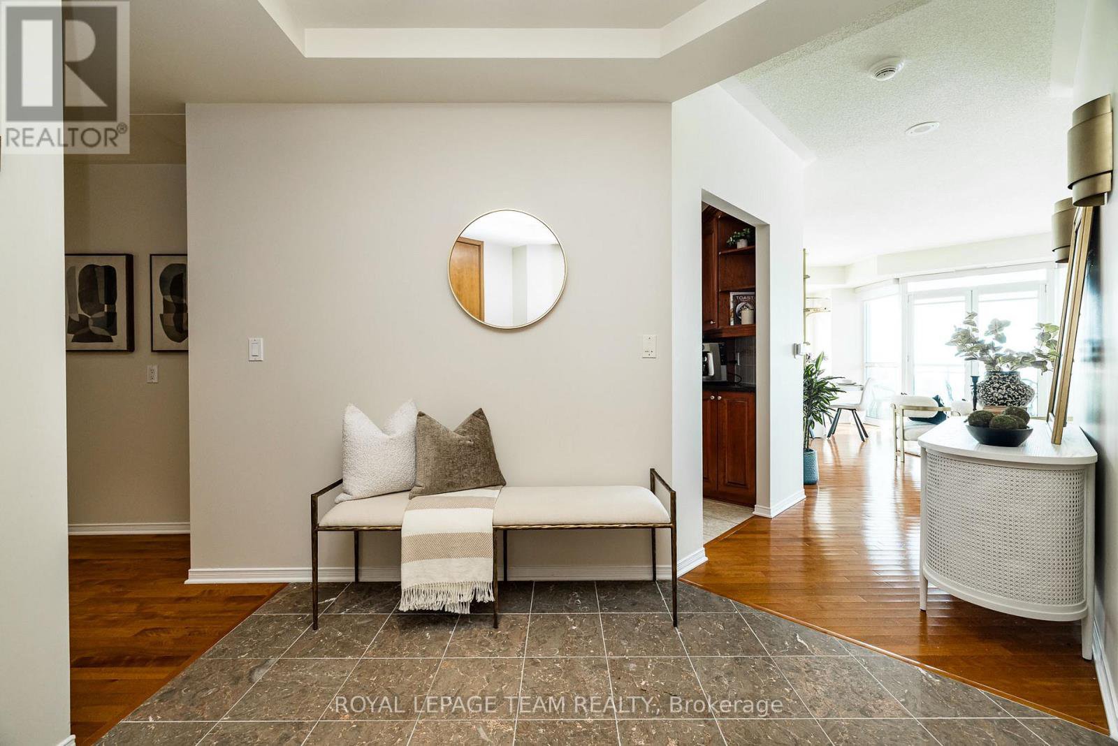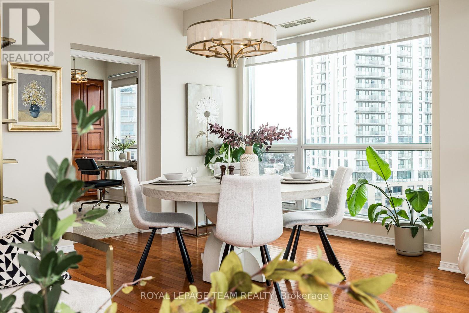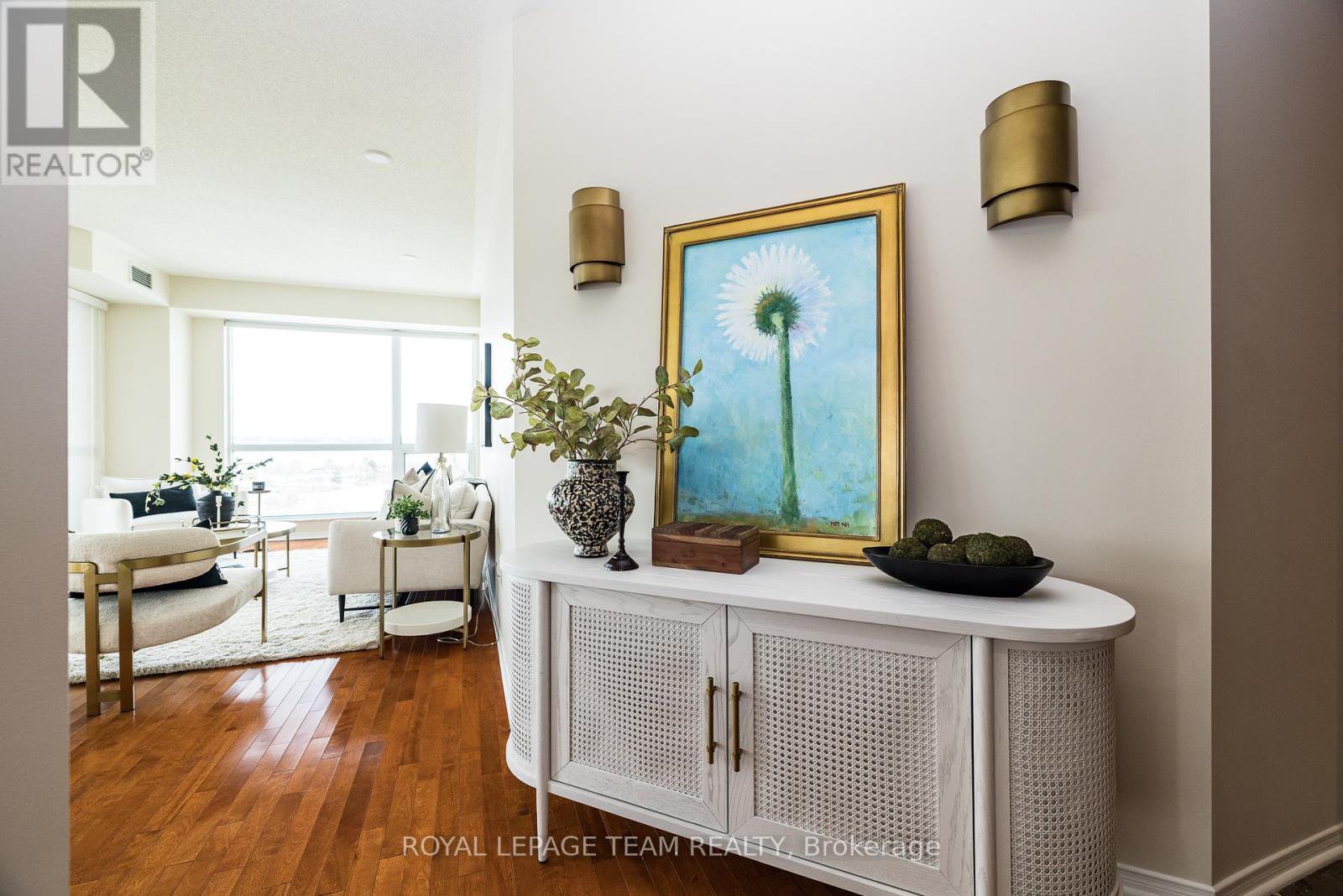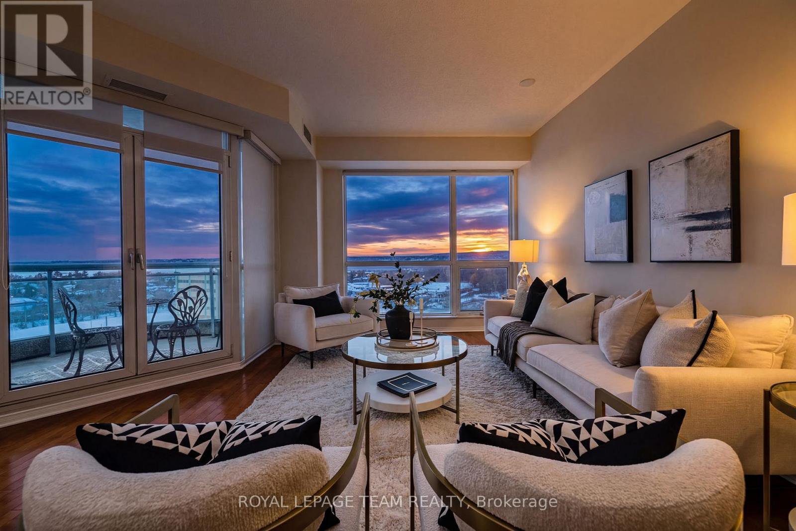 Welcome to 38 Metropole Private Unit #1002 in Westboro, where an expansive residence offers a refined living space with extraordinary waterfront and Gatineau Hills views! The elegant foyer with ample closet space leads to an open concept living/dining area that is swathed in an abundance of natural light. With floor to ceiling windows the view creates the perfect backdrop for a luxurious living space and can be further enjoyed from the spacious balcony. Featuring gleaming hardwood floors and high ceilings the living/dining area leads seamlessly to the chef's kitchen complete with rich wood cabinetry, granite countertops, stainless steel appliances and a sunlit breakfast nook! The primary bedroom is a tranquil retreat, featuring hardwood floors, a 5-piece ensuite bathroom and a walk-in closet. A second bedroom with hardwood flooring, provides ample space for guests or could be utilized as a spacious office; a 4-piece main bathroom is adjacent. High end custom window treatments! In-unit laundry for added convenience and 5-Star building amenities that include: 24 hour security/concierge, indoor heated pool, saunas, party room, fireside lounge room, guest suites and a gated landscaped rear yard with gazebo and BBQ area. Walk to shops, restaurants, groceries (Farmboy) in fabulous Westboro; Ottawa River paths, LRT and Westboro beach all within walking distance! Parking and locker included. Metropole Pvt Unit #1002 is an elegant and turn-key option for the most discerning of Buyers!