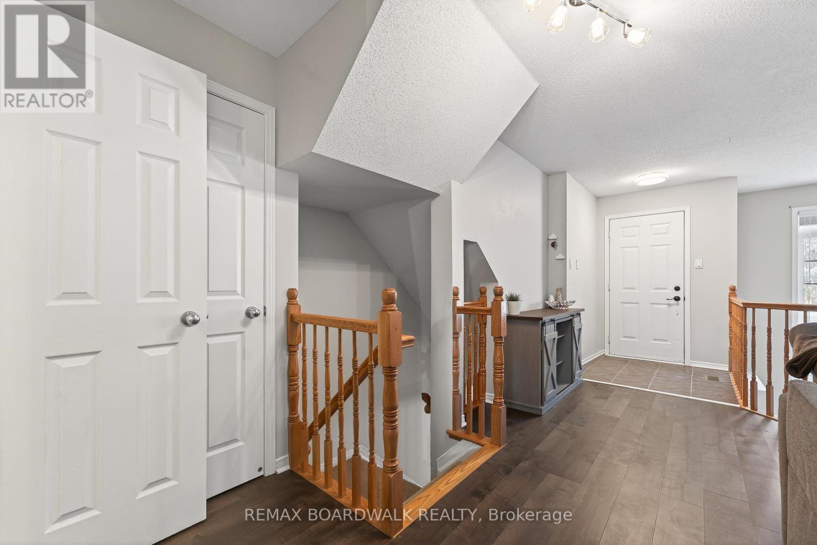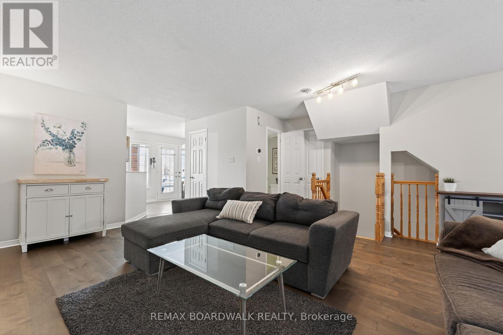 Step into this Beautifully Updated END UNIT Lower-Unit Stacked Condo, offering a Bright & Inviting Layout w/TONS OF UPGRADES Throughout. Prime Location for this 2 Bedroom, 2 Bath Home Blends Modern Comfort w/Low-Maintenance Living. The Main Level Features Updated Engineered Hardwood Floors & an Open Concept Layout w/Large Windows Offering Tons of Natural Light Flowing Through this Home. Recently Freshly Painted Throughout. Kitchen has New Stainless Steel Appliances & Upgraded Modern Flooring. The Kitchen Features Plenty of Cabinet & Counter Space, New Hardware, Spacious Eat-In Area, Pantry & Double French Doors that Lead to the Back Patio & Backyard Space. Main Floor Laundry is a BONUS! Main Level 2 Piece Bath. Lower Level Features Spacious Family Rm w/Gas Fireplace & Beautiful High Ceilings. 2 Generous Size Bedrooms w/a Cheater Ensuite to the Primary Bedroom & WIC. 4 Piece Main Bath w/Oversized Tub. Lot's of Added Value here! New Furnace(2024), New A/C(2024), Stove & Dishwasher(2023), Hood Range(2026), Fridge(Black-2018), HWT Owned(2024), & Low Condo Fees which Include Water. Extremely Desired Location in a High End School District of Earl of March, Walking Distance to Transit, Local parks, Beaverbrook Library & Easy Access to HWY & Kanata Centrum. Air Ducts Cleaned March 24th, 2023. 24 hours irrevocable for all offers. Parking Space Right out Front A#20.
