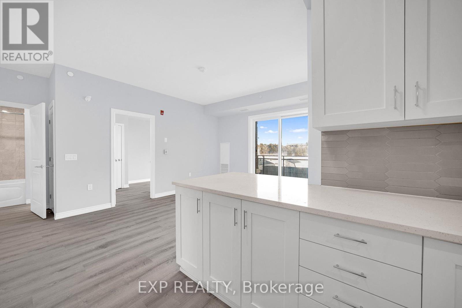 Welcome to 220-1350 Hemlock, this stylish 2024-built condo offering contemporary design and effortless urban living. This bright and thoughtfully designed 2 bedroom, 2 full bathroom suite delivers comfort, functionality, and a clean modern aesthetic throughout. The open-concept layout creates a natural flow between the kitchen, dining, and living areas, ideal for both everyday living and entertaining. The kitchen features sleek cabinetry, quartz countertops, stainless steel appliances, and a generous island that anchors the space beautifully. Large windows invite natural light, while the private balcony extends your living area outdoors. The primary bedroom offers excellent storage and a private ensuite, finished with modern fixtures and quartz surfaces. The second bedroom is well proportioned and versatile, perfect for families, guests, home office, or additional family space. A second full bathroom and in-unit laundry provide added convenience. Located in a growing community surrounded by green space, walking paths, parks, and recreational amenities, this address offers the perfect balance between nature and city access. Downtown Ottawa, restaurants, shopping, and everyday essentials are all just a short drive away. One underground parking space (#66) and one storage locker (#46) are included. This move-in ready unit offers flexibility and value, making it an excellent choice for homeowners and investors.