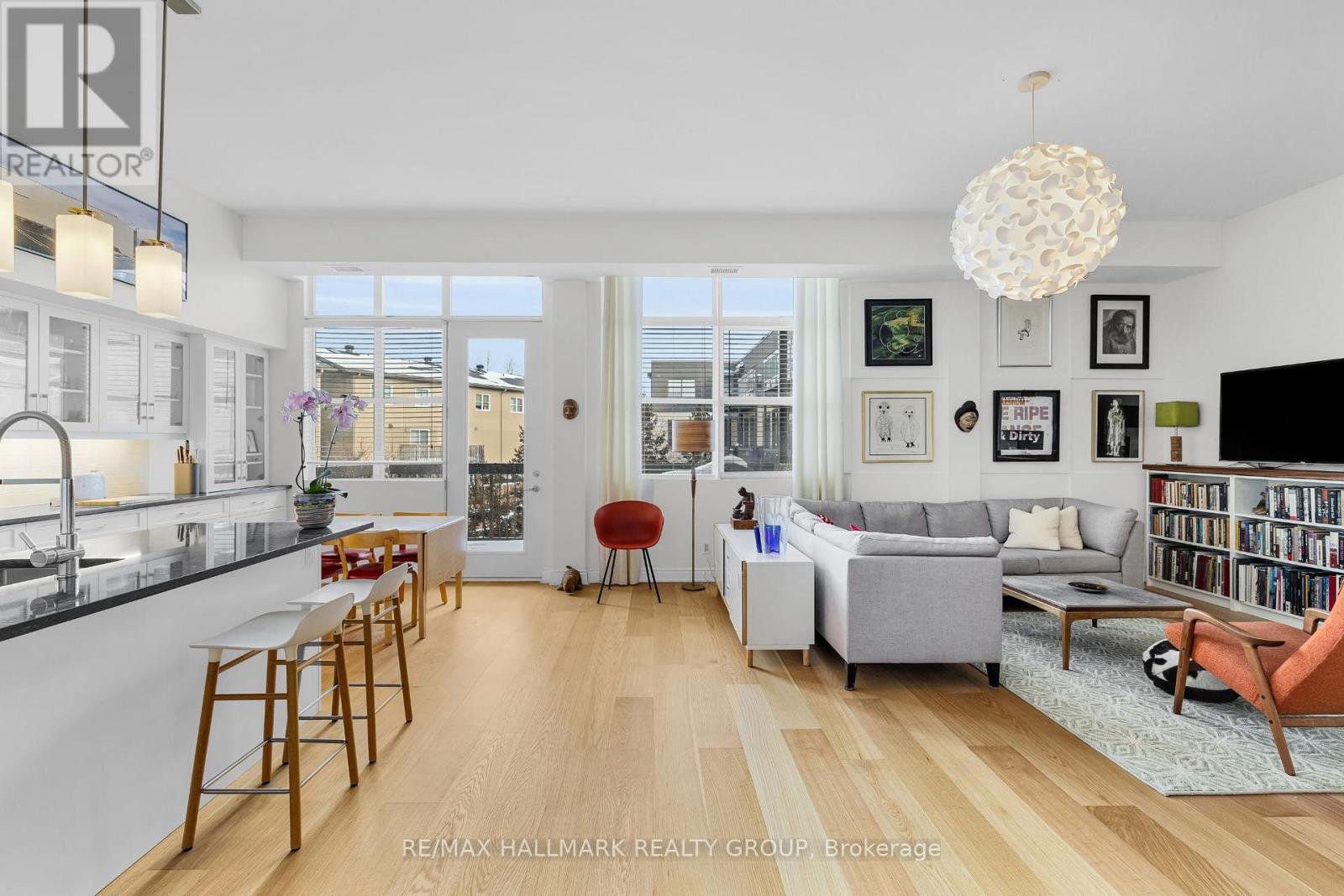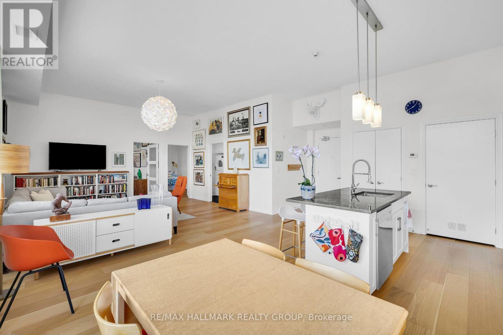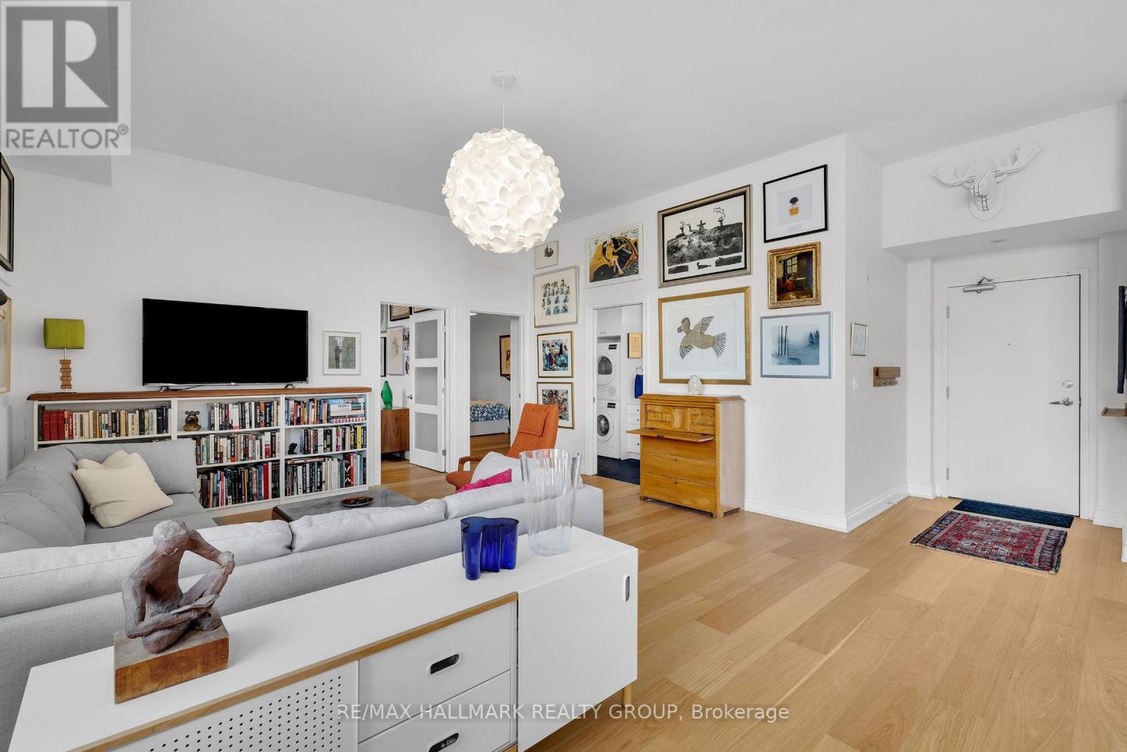 A rare, oversized 1 bedroom + den condo in the iconic Le St Denis, a character-rich converted school in Vanier near Beechwood Village. Offering approximately 1,000 sq ft, this unit stands out immediately for its scale, layout, and extensive recent upgrades. The condo has been thoughtfully updated throughout in 2024, making it a true move-in-ready opportunity. Engineered oak hardwood flooring (2024) runs throughout the unit. The custom kitchen renovation (2024) includes updated cabinetry, finishes, and all new appliances (2024). The bathroom was fully renovated in 2024, offering a clean, modern space with a glass-enclosed standing shower. A spacious entryway leads into a bright, open-concept living and dining area with 10 ft ceilings and large windows. The primary bedroom is generously sized with excellent closet space and is separated by modern frosted glass doors. The den works well as a home office, guest space, or flex room and includes custom bookshelf and closet built-ins. In-unit stacked laundry and excellent in-suite storage complete the layout. Enjoy a large east-facing balcony, one outdoor parking space and a private storage locker on the same floor. Central air conditioning. Quiet, non-smoking, professionally managed building with elevator access and easy stair access to parking and outdoors.Located steps from neighbourhood parks, community centres, and local amenities, and just minutes from Beechwood Avenue, known for its cafés, restaurants, bakeries, and everyday services. Excellent access to transit, cycling routes, and major commuting corridors makes getting downtown or across the city straightforward, while still offering a quieter, community-oriented setting.