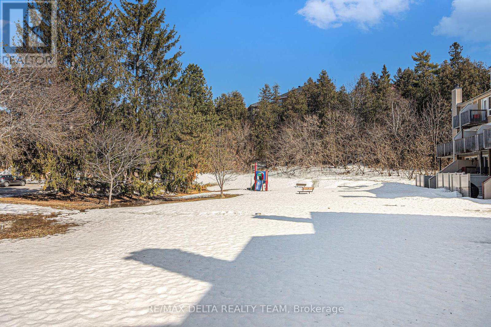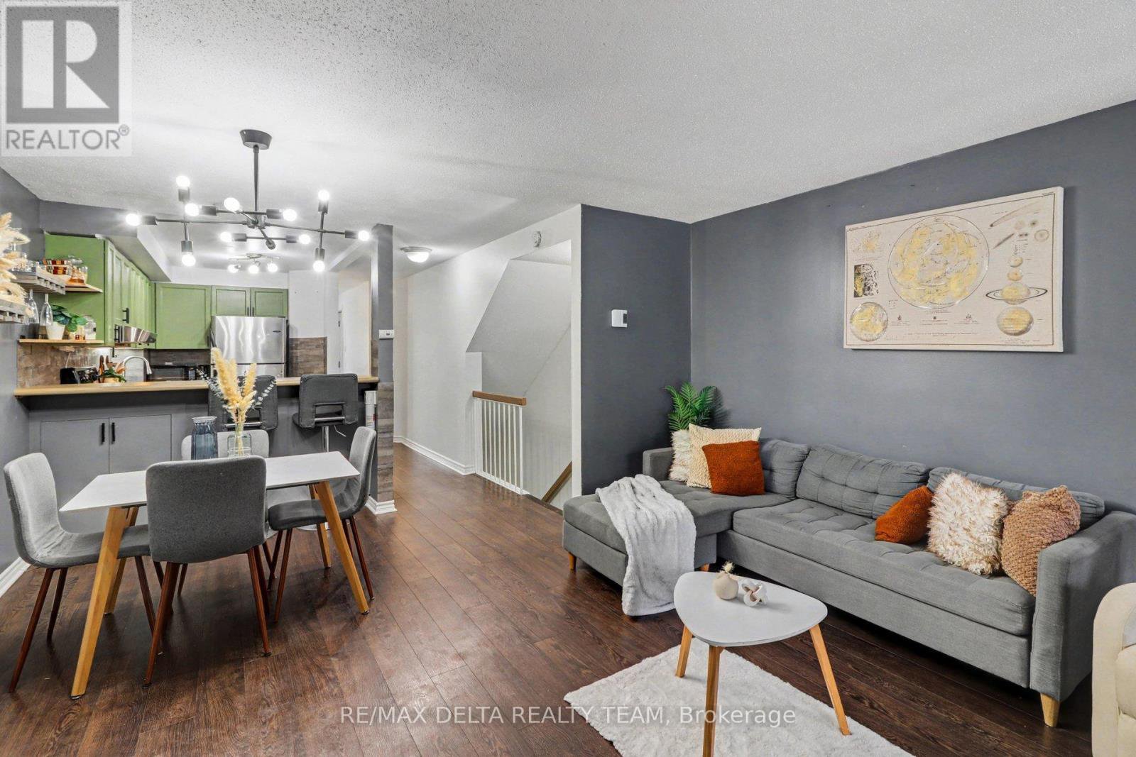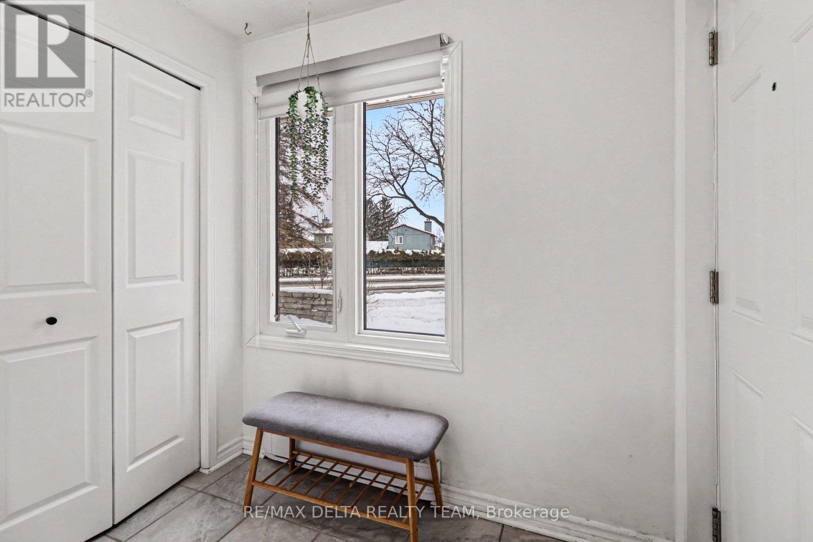 This inviting lower-level terrace home combines comfort and convenience in an ideal location. With quick access to Hwy 417 and just steps from the Ottawa River, scenic walking trails, schools, public transit, the future LRT, and everyday amenities, everything you need is close at hand. Inside, recent updates include stylish laminate and tile flooring throughout the main floor. A large front window welcomes an abundance of natural light, enhancing the bright layout that seamlessly connects the kitchen, dining, and living spaces-perfect for both daily living and entertaining. The well-appointed kitchen features generous cabinetry and counter space, stainless steel appliances, and a raised breakfast bar for casual meals. In the living room, a cozy corner wood-burning fireplace adds warmth and charm, while patio doors open to a lovely sitting area ideal setting for relaxing outdoors. The spacious primary bedroom offers wall-to-wall closet space and a large window, and the second bedroom is also generously sized. A full bathroom, in-unit laundry, and additional storage complete the lower level. Mature trees in the neighbourhood provide a peaceful atmosphere. A dedicated single-car parking space and convenient visitor parking are also included. Move-in ready and thoughtfully updated, this home delivers easy, comfortable living in a fantastic setting.