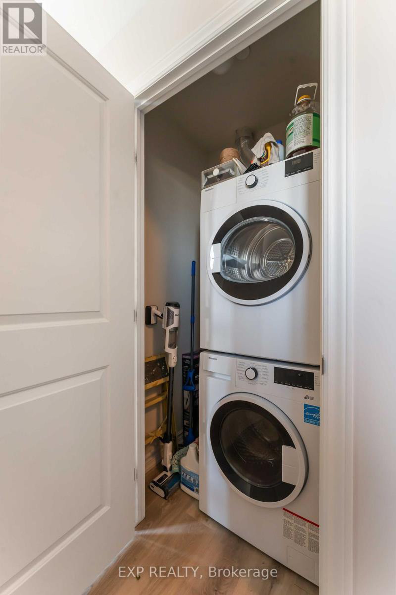 Beautiful 1-bedroom plus den home featuring a spacious wraparound patio and over $30,000 in high-end upgrades. This unit offers luxury vinyl tile (LVT) flooring throughout, a modern kitchen with quartz countertops, upgraded cabinetry, and a double sink. The full appliance package includes a stove, fridge, dishwasher, microwave, and in-suite washer & dryer. The bathroom has been thoughtfully upgraded with new flooring, quartz countertops, updated light fixtures, and a medicine cabinet add-on. Enjoy the convenience of a deep fridge and the comfort of quality finishes throughout. A perfect blend of style and functionality in a highly desirable building.