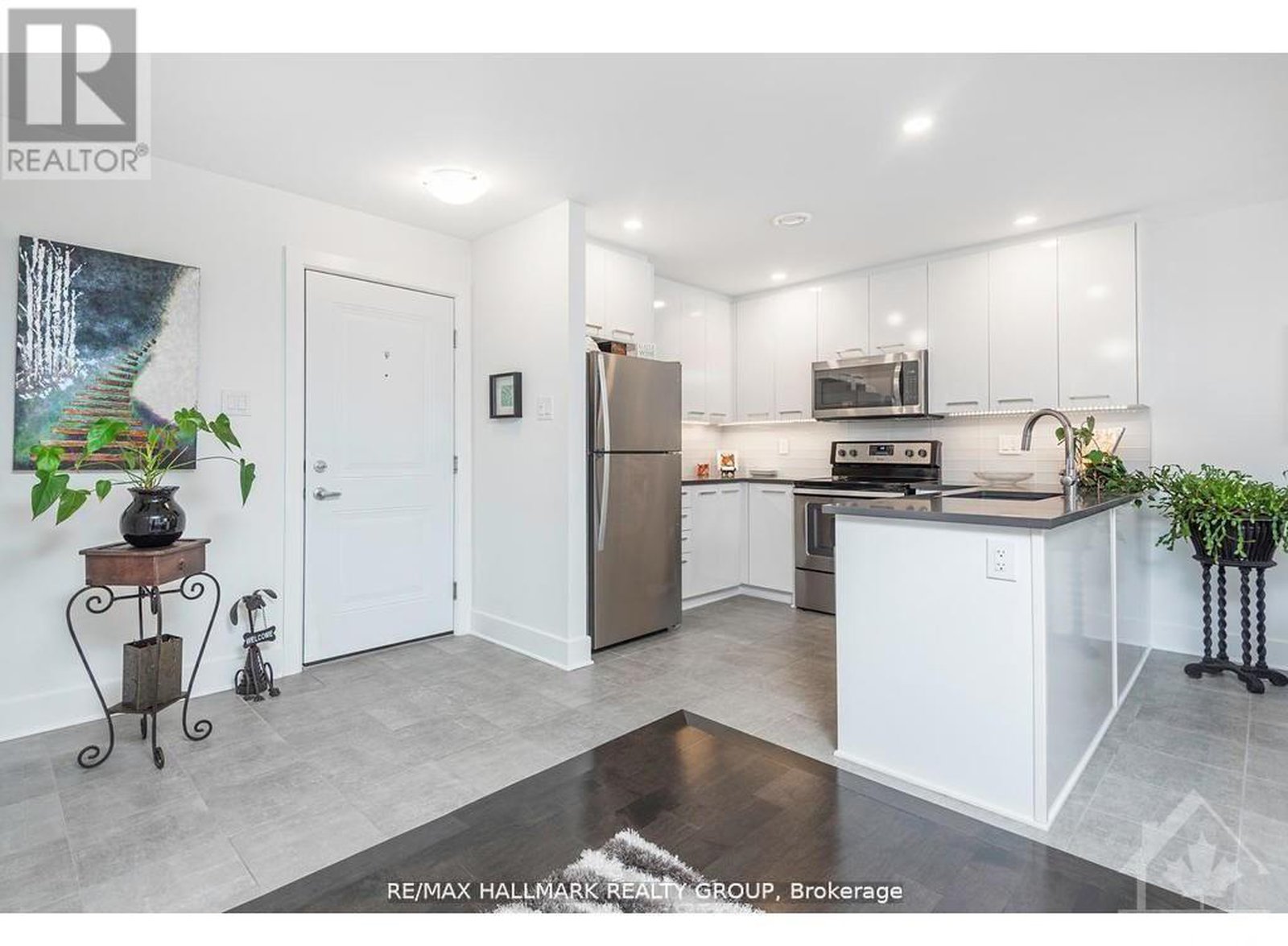 Welcome 340 Tribeca, This beautifully maintained 2 bed 2-bath unit offers bright, spacious apartment-style living with numerous upgrades throughout. Upon entry, you're greeted by elegant upgraded porcelain floors that flow seamlessly through the foyer into the open-concept kitchen and dining area. The living space features rich hardwood flooring, which continues into the hallway, leading to a well-appointed bathroom and bedroom. The kitchen is a chefs delight with extended-height cabinetry, sleek quartz countertops, ice glass tile backsplash, an under mount sink, modern faucet, and upgraded ceiling lighting. From the kitchen, step out onto your private balcony perfect for enjoying your morning coffee or relaxing at the end of the day. Both bath have been tastefully updated with quartz countertops, under mount sinks, and contemporary cabinetry. The spacious primary bedroom boasts a walk-in closet as well as an additional double-door closet, providing ample storage. Situated in a prime location, this home is conveniently close to schools, parks, restaurants, and a variety of other amenities. A perfect blend of style, comfort, and location this unit is a must-see.