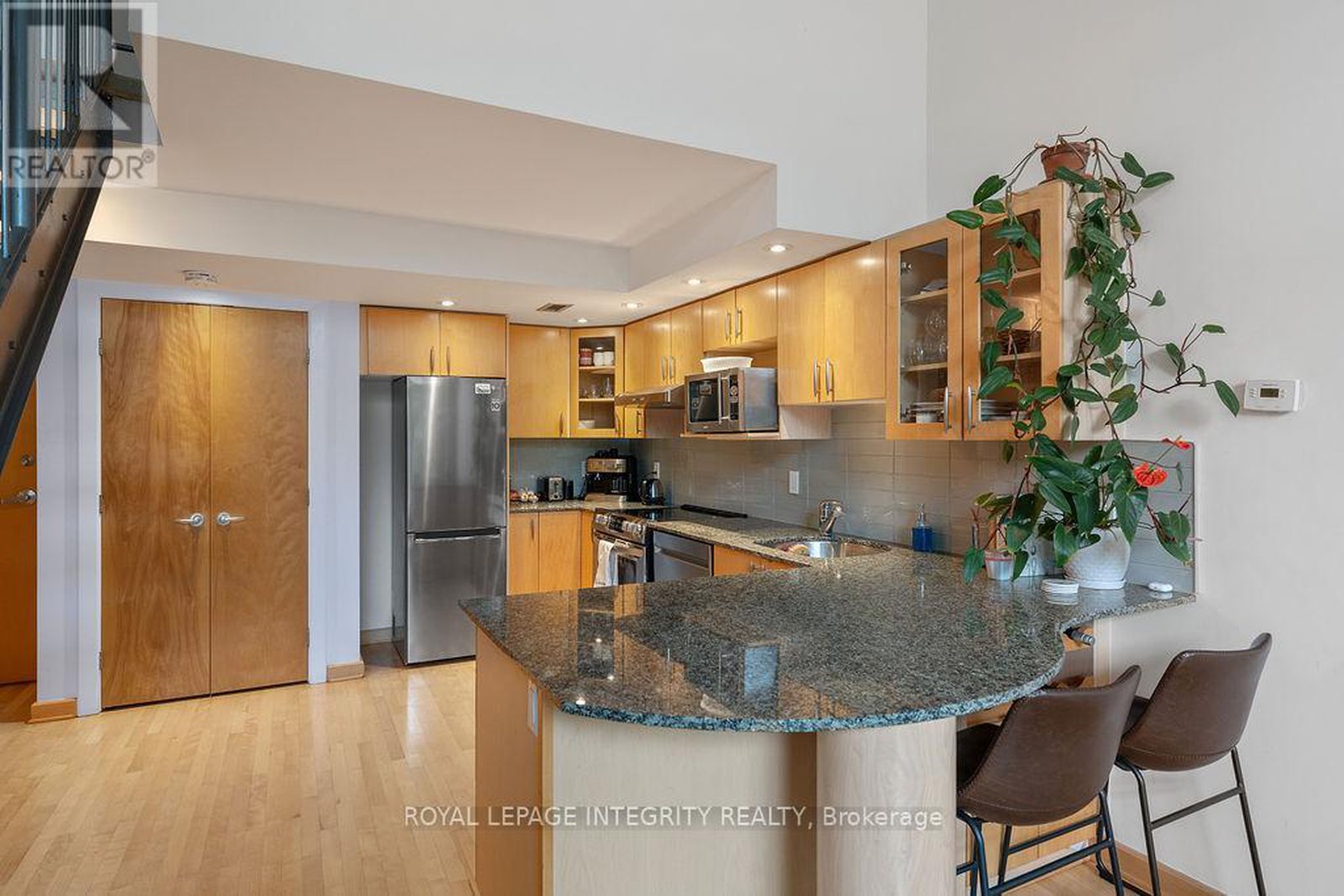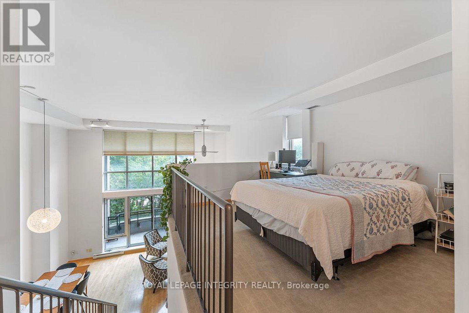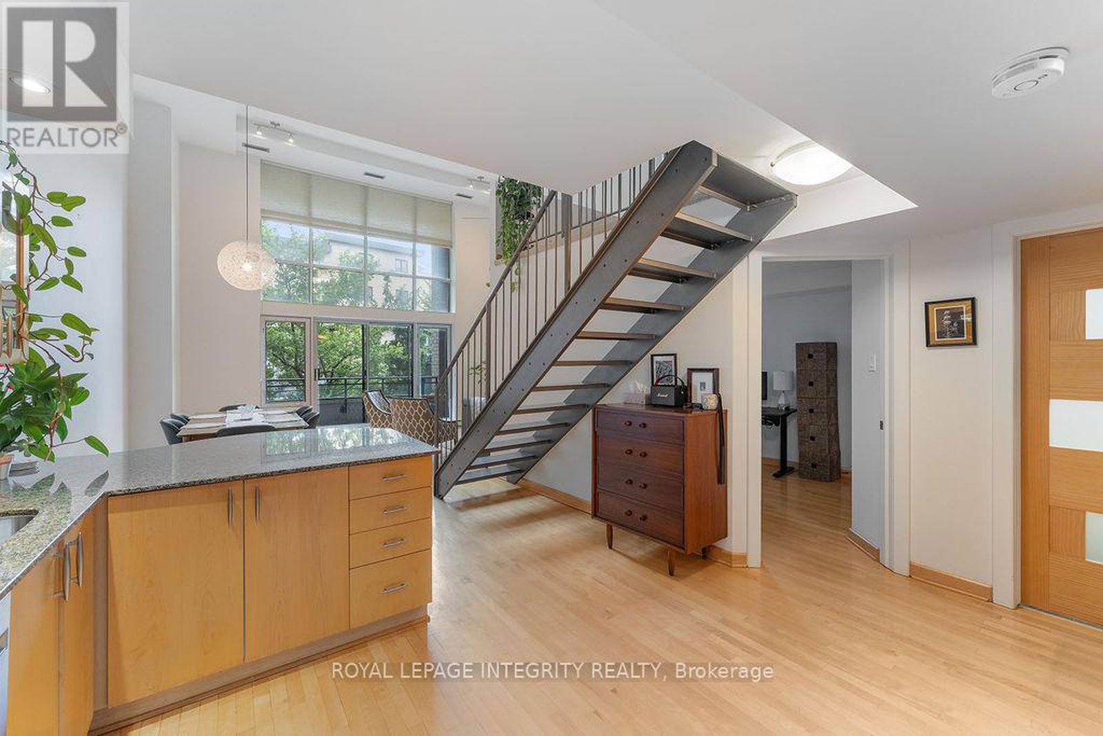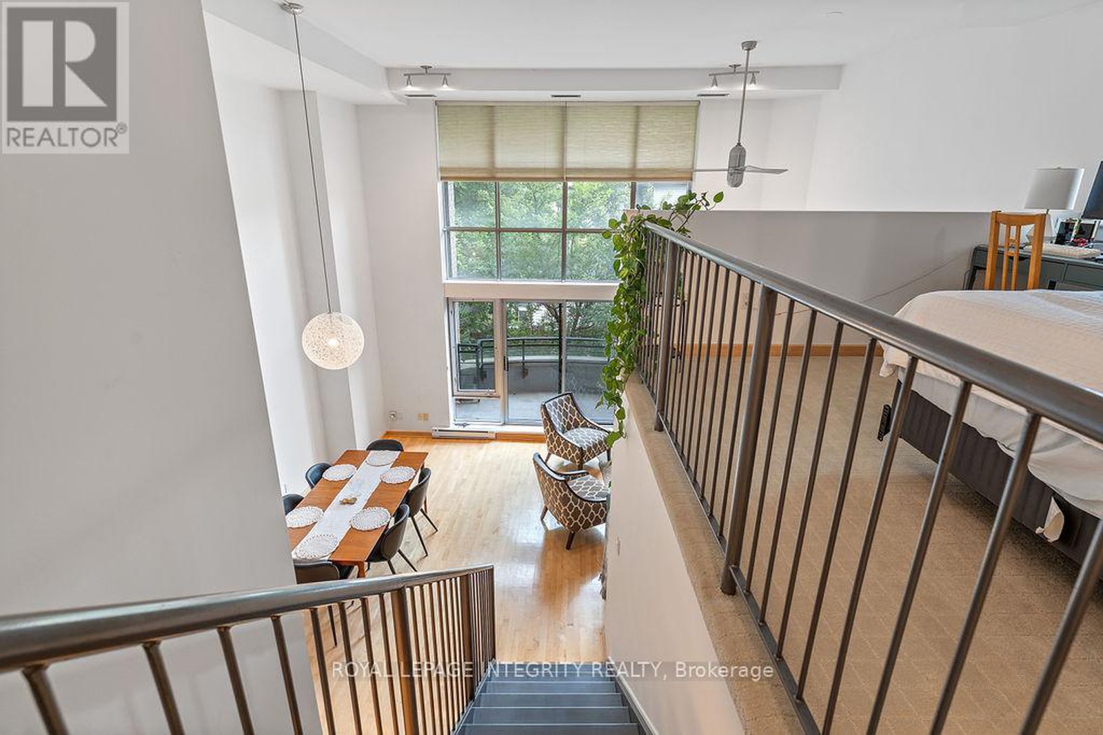 Over 1,000sf of modern loft-style living in Suite 111 @ 29 Main St, The Glassworks by Charlesfort, designed by award-winning architect Barry Hobin. This 2-bedroom, 2-bath suite features an open-concept layout with gleaming hardwood floors, a sleek kitchen with granite eat-up breakfast bar, and 17-foot floor-to-ceiling windows that open to a private curved east facing balcony (approx. 6' x 18') perfect for entertaining or relaxing. Upstairs offers a generous bedroom, full bath, walk-in closet, and ample storage. Residents enjoy a rooftop terrace with a BBQ and entertaining space, plus elevator access. Ideally located just a block from the Rideau Canal, walking distance to ByWard Market, Rideau Centre/LRT, Centretown dining, museums, and Lansdowne Parks concerts and sporting events. Quick access to Hwy 417 and nearby Canal and Rideau River trails make this urban oasis perfect for city living with a touch of nature. Don't miss this one!
