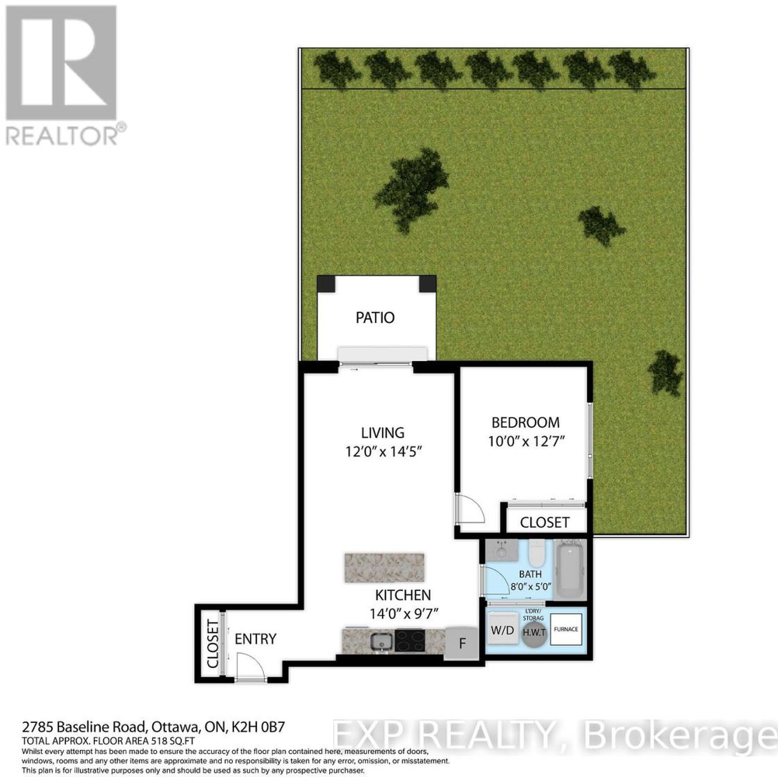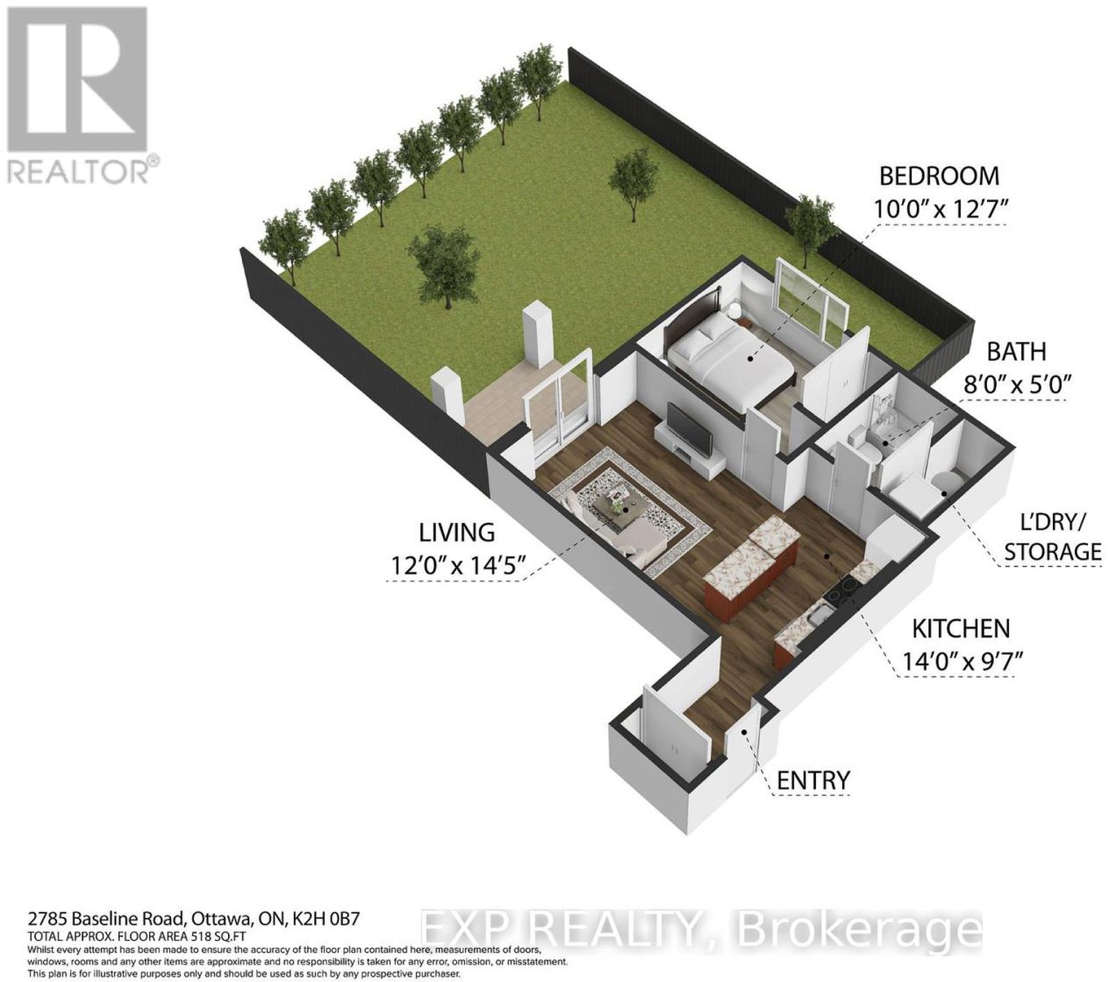 Stop scrolling. This is the condo that gives you the low-maintenance lifestyle without the compromises.Unit 108 at 2785 Baseline is a rare ground-floor corner unit with no stairs, no elevator, and a wrap-around private yard, which is basically the unicorn setup for condo living. You get the convenience of a condo with the feel of your own little outdoor retreat.Inside, it is bright and welcoming with southeast exposure and oversized windows that pull in beautiful natural light all day. The kitchen is sharp and modern with stone counters, subway tile backsplash, stainless steel appliances, and a pendant-lit island that opens right into the living space. The exposed brick feature wall adds character and warmth, and the whole space feels clean, stylish, and easy to live in.Then you step outside and this is where it really separates itself. Patio plus fenced and hedged yard space. Private, practical, and hard to find. Perfect for morning coffee, a spot for your dog, or just having outdoor space that actually feels usable.The bedroom is bright with double closets. The bathroom is crisp and modern with large tile and a full tub and shower. And the comfort features are all here too: hot water on demand, forced-air furnace, central A/C, in-suite laundry, owned underground parking, and a storage locker.Built in 2016, this boutique 88-unit low-rise is right beside Morrison Park and close to everything that makes day-to-day life easier, including shopping, transit, Highway 417, College Square, Algonquin College, and Queensway Carleton Hospital. Visitor parking is easy, the unit is vacant, and it is ready when you are.Bonus for pet lovers: dogs, cats, birds, and fish are permitted.Some photos virtually staged.