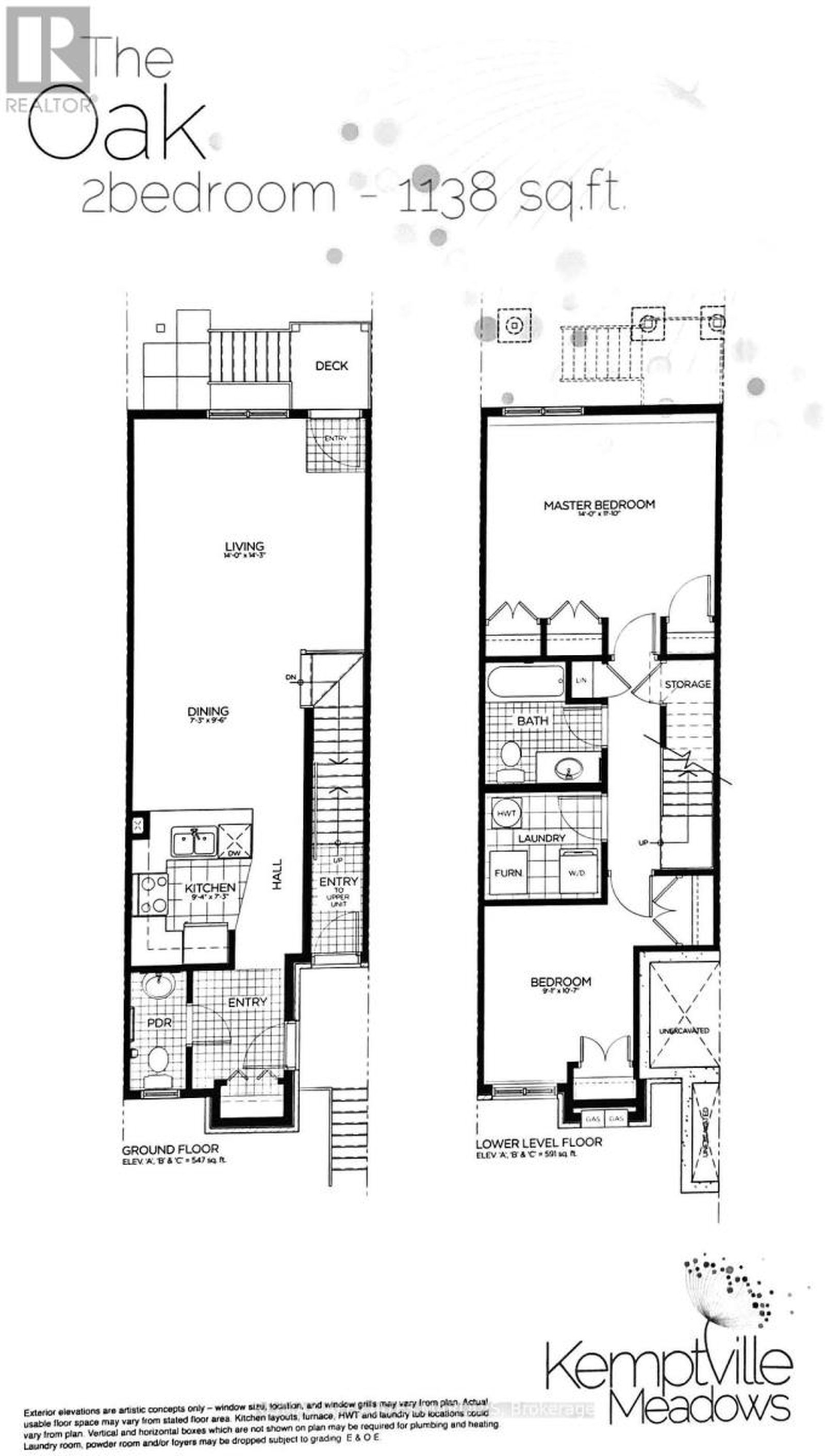 Comfortable and spacious, this 1138 sq ft lower-level Oak model condo offers a large living room with balcony and stairs to a ground level patio area, a generous kitchen, a 2 pc. Powder room plus a foyer. The lower area adds a generous master bedroom, a 2nd bedroom, a full main bathroom, an in-suite laundry/utility room. Hardwood, neutral carpeting and tile flooring. Includes fridge, stove, microwave, dishwasher, washer & dryer. Natural gas forced air heating with central air. One assigned parking stall include. Close to amenities, schools and hospital facilities. This unit has been tenanted in the past and is being sold as-is. Clean and ready to move in condition. All measurements taken from the builder floorplan. A standard OREA agreement of Purchase form may be used. Immediate occupancy is available. 48 hr irrevocable for all offers please. Photos are of a similar unit on file.