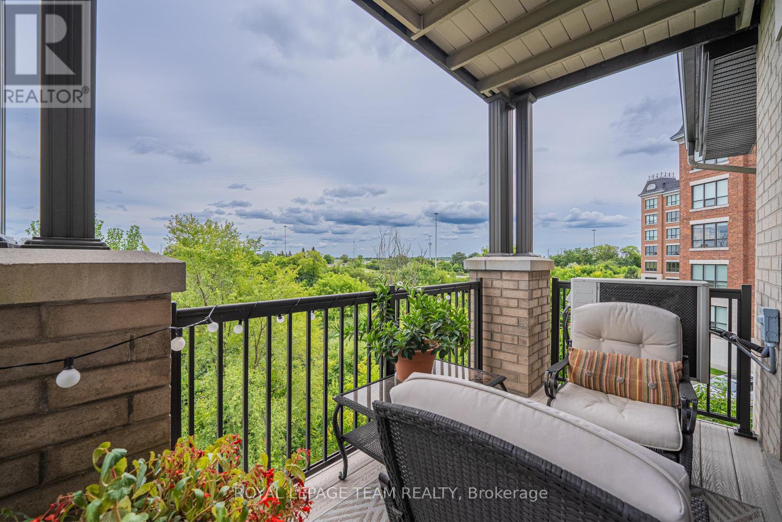 Welcome to this beautifully maintained 2-bedroom, 2-bath corner unit in the highly sought-after Beauparc Private!Boasting 9ft ceilings and expansive windows that frame unobstructed ravine and tree-line views, this bright and airy home perfectly blends comfort with modern convenience.The open-concept living and dining areas are bathed in natural sunlight the dining room features floor-to-ceiling windows with direct access to the balcony, creating a seamless indoor-outdoor flow. The living room offers a large picture window overlooking mature trees and greenery, bringing nature right into your everyday living space.Gleaming hardwood floors run through the main living areas and kitchen, while the bedrooms offer cozy Berber carpet and the bathrooms feature elegant tile finishes. The upgraded kitchen includes stainless steel appliances and ample counter space, ideal for cooking and entertaining. The spacious primary bedroom features a walk-in closet and a full ensuite.Enjoy your morning coffee or a peaceful evening on your private balcony overlooking the tranquil ravine. Additional features include in-unit laundry, central heating/AC, a storage locker, and one surface parking spot.Just steps to Cyrville LRT Station and minutes to shopping, dining, parks, and downtown this is urban living with a serene, nature-filled twist.(Surface Parking Number: 4C; Locker: 4th on the left side)
