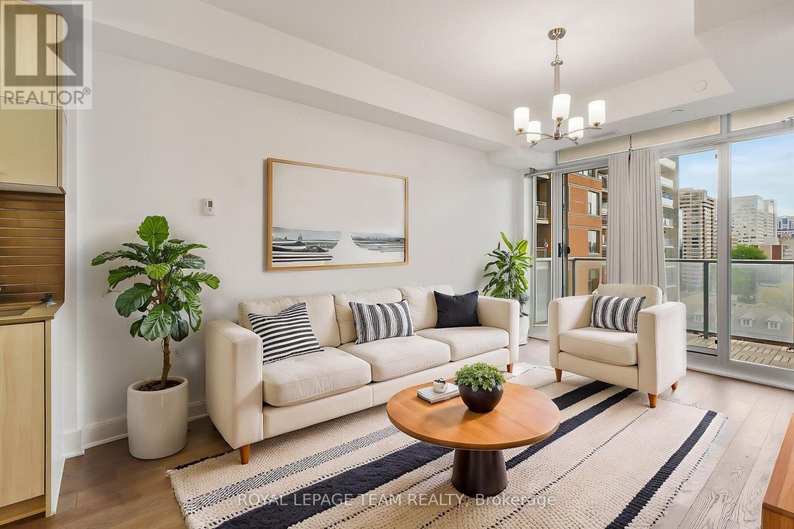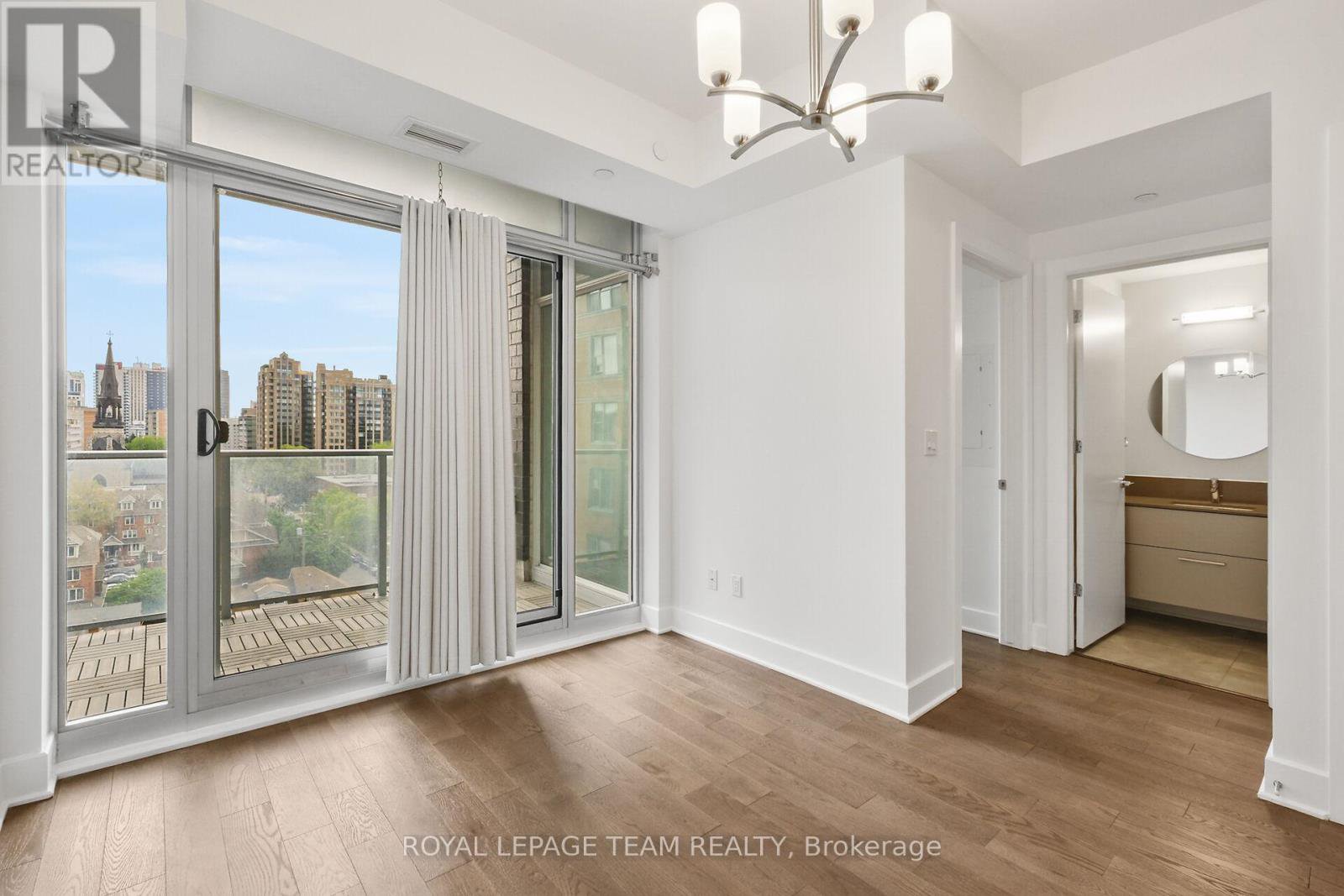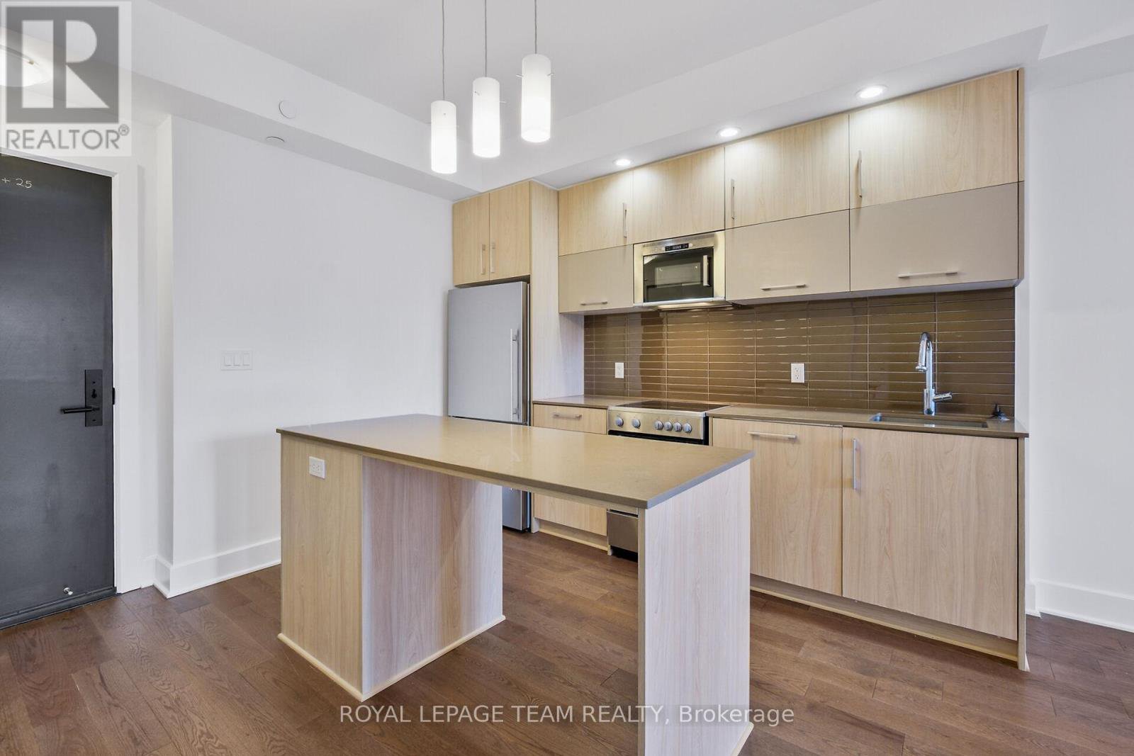 Welcome to this freshly painted, bright & modern, 9th floor, 686 sq ft condo (according to builder floorplans) featuring 1 Bedroom, 1 full Bath, and a versatile flex room. This open-concept layout features a large patio window that fills the space with abundant natural light, complemented by elegant hardwood flooring.The sleek designer Kitchen is equipped with stainless steel appliances, quartz countertops, ample cabinet space and an island with seating; perfect for casual dining or meal prep. A spacious east-facing balcony offers expansive views, ideal for both relaxing and entertaining. The Primary Bedroom is well-proportioned & bright, and features a built-in closet. In the spacious Den/Flex Rm, a sliding pocket door transforms the space into a home office, guestroom or convenient second Bedroom able to accommodate a queen size bed, complete with a closet/built-in storage. Additional highlights include convenient in-unit laundry, personal storage locker and access to top-tier building amenities: indoor pool, outdoor terrace and BBQ, state-of-the-art gym, sauna, party room, meeting spaces and guest suites. Monthly condo fees of $424.34 cover water/sewer, gas, reserve fund contributions, building insurance, management fees. Hydro averages approximately $80/month. Living here has you steps from the O-Train Lyon station, Parliament Hill and so much more!