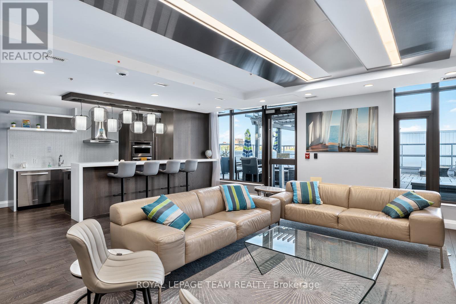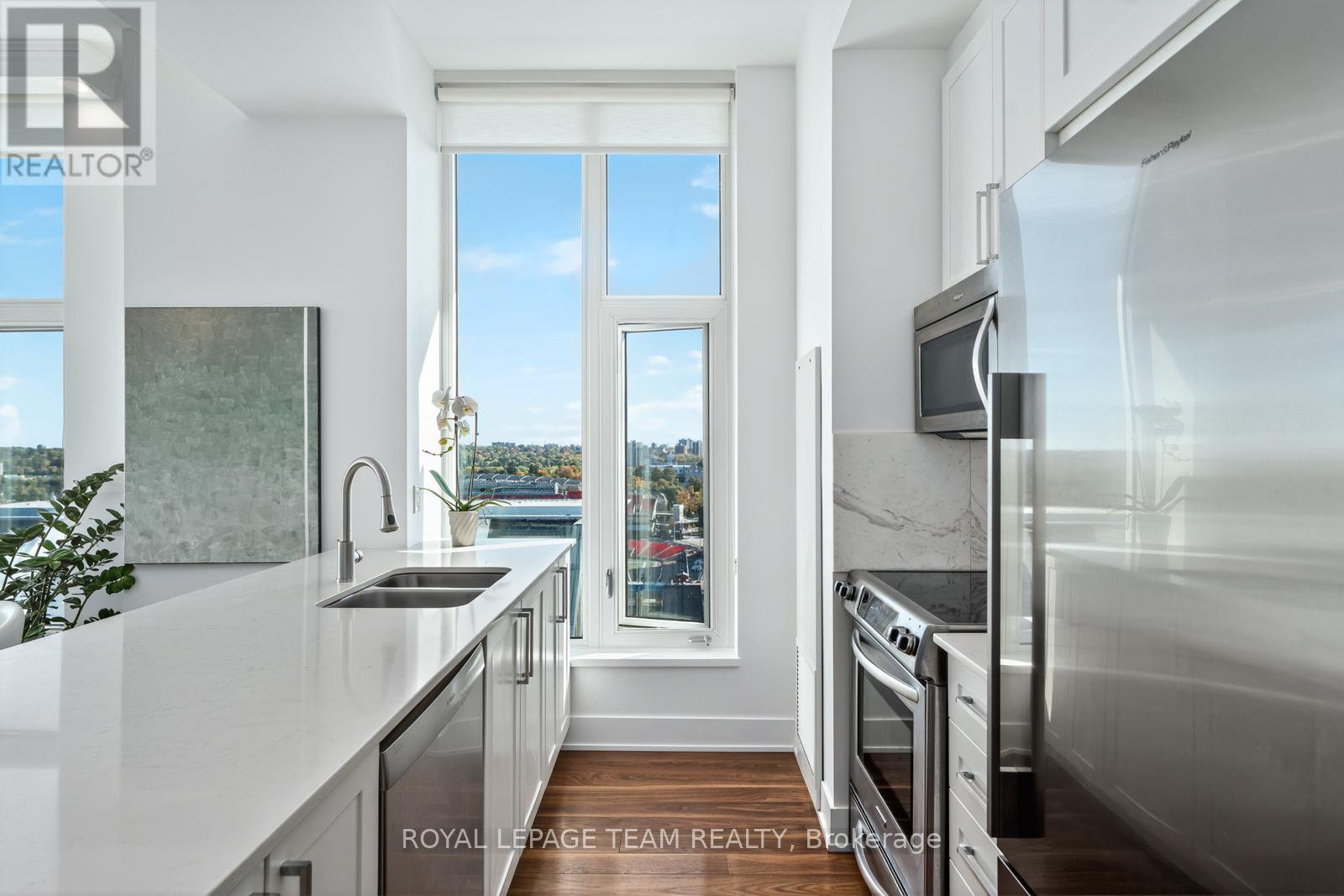 Penthouse 3 atThe Vibe delivers luminous, south& east-facing views over the famous Rideau Canal&historicAberdeen Pavilion. Floor-to-ceiling glass frames Ottawa's most iconic scenes-farmers' markets, winter festivals&CityFolk concerts, all from your private terrace.The entry wows with chandelier, extra high ceilings, illuminated closet, full-sized washer/dryer.Beyond: custom office nook with glass desk and built-in storage, next to the bright guest bedroom with incredible stadium views.Find a glamorous kitchen with quartz counters, marble backsplash&custom pantry. Bright island with custom millwork looks towards dazzling windows.The living/dining is anchored by custom fireplace with marble surround&built-ins, chandelier, and jaw dropping views, which continue into the romantic primary, with its tailored walk-in & luxurious ensuite.The Vibe offers boutique-hotel amenities: chic lounges, fireside gathering spaces, large gym& conveniently located parking.Bright, polished, glamorous-a residence at the very heart of Ottawa's cultural life