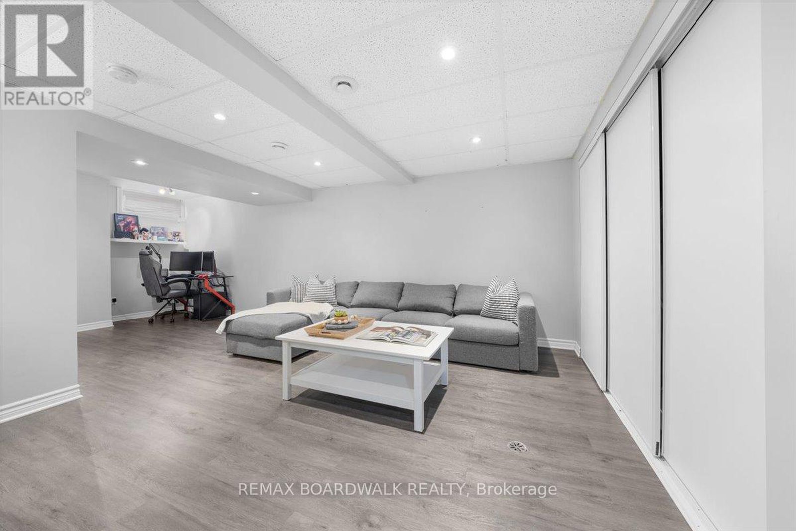 Lovingly maintained three bedroom END UNIT with no direct rear neighbours. A sun-drenched, open-concept living and dining area features durable laminate and ceramic flooring throughout. The neutral décor provides a turnkey canvas for your style, with direct access to the outdoor living space. The fully fenced rear yard features a brand-new oversized deck perfect for entertaining. Ascend to the second floor, which features three generously sized bedrooms - each with ample closets and laminate flooring - and a well-appointed full bathroom.The fully finished basement expands your living area with a cozy recreation room-ideal for a home theater or play area-plus a dedicated laundry area and plenty of storage. This move-in-ready family home offers comfort, space, and exceptional value. A commuter's dream with 5-minute access to both the 416 and 417 HWYs, major shopping, and transit. Nature lovers will enjoy being minutes from NCC land and the Trans Canada Trail. Open House March 1st 2-4PM
