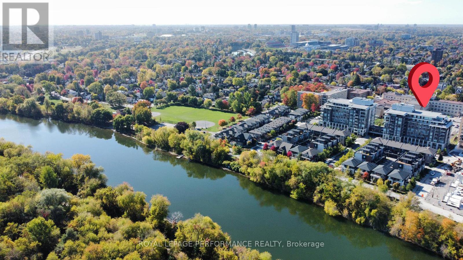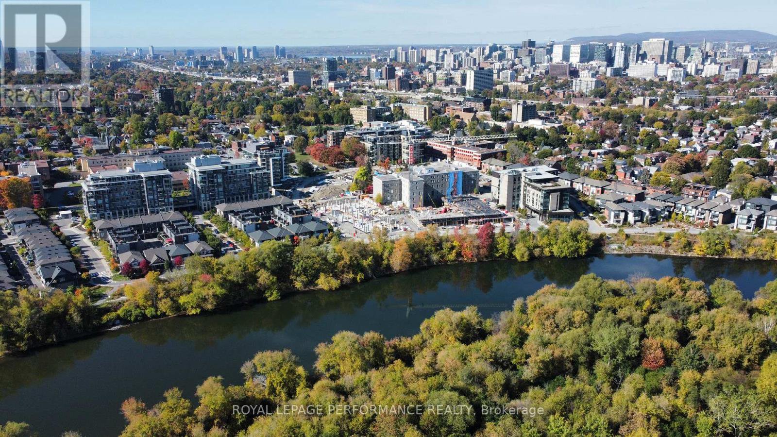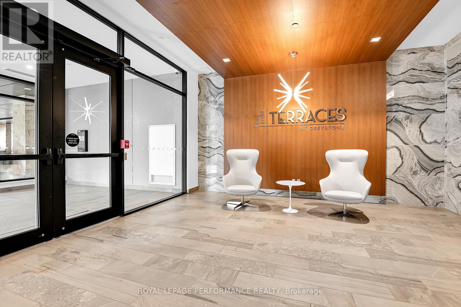 Welcome to elevated living at The River Terraces at Greystone Village, where sophisticated design meets the calm beauty of Ottawa's riverfront. This stunning 2-bedroom residence offers approximately 954 sq. ft. of thoughtfully designed space just steps from the Rideau River and Canal pathways. From the moment you enter, a spacious foyer sets the tone for the home's airy, light-filled ambiance. Engineered hardwood floors flow throughout, creating a seamless blend of warmth and contemporary style. The crisp white kitchen is equal parts statement and workspace, featuring an Induction cooktop, Corian countertops, a classic subway tile backsplash, shaker-style cabinetry, stainless steel appliances, and an oversized breakfast bar perfect for morning coffee or evening gatherings. It opens effortlessly into the living and dining area, where expansive windows bathe the space in natural light and lead to your private balcony, complete with a natural gas BBQ hookup for easy outdoor entertaining. The primary suite offers a peaceful retreat with generous closet space and a spa-inspired ensuite showcasing a sleek glass walk-in shower. A second bedroom, full main bath, and convenient in-suite laundry complete this intelligently designed layout. Residents enjoy an exceptional collection of amenities, including a fully equipped fitness centre, yoga studio, elegant fireside lounge and library, private dining room with catering kitchen, pet wash and car wash stations, and commercial-grade laundry facilities. Underground parking includes rough-ins for EV charging, adding modern convenience to everyday living. At The River Terraces, refined urban comfort and riverside tranquility come together, offering a lifestyle as polished as it is peaceful.
