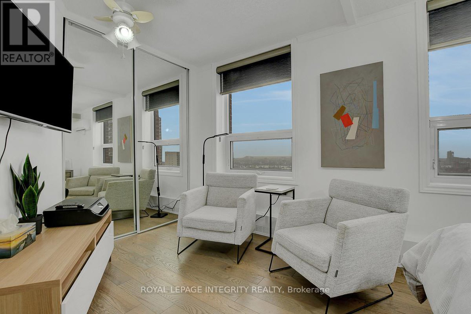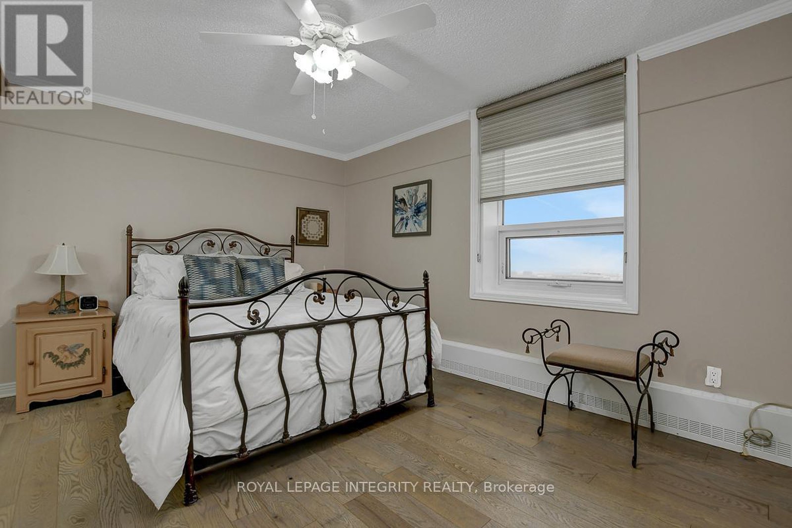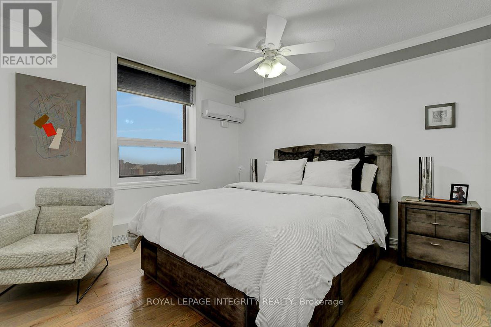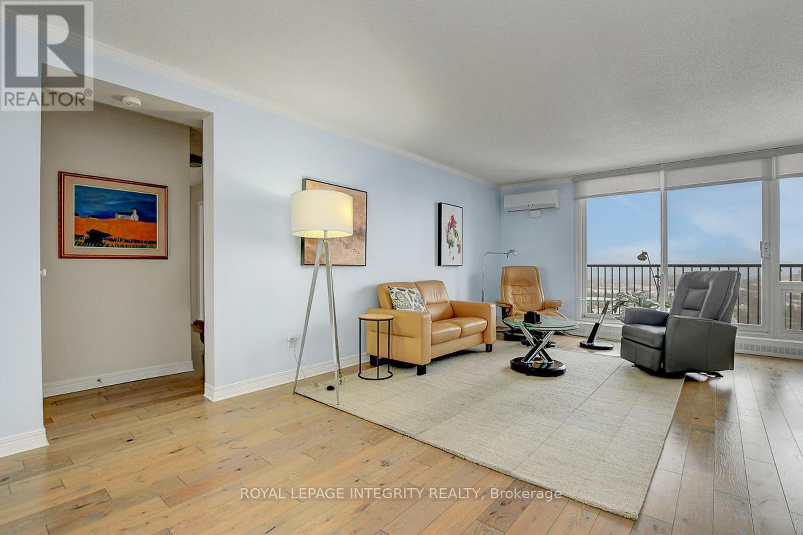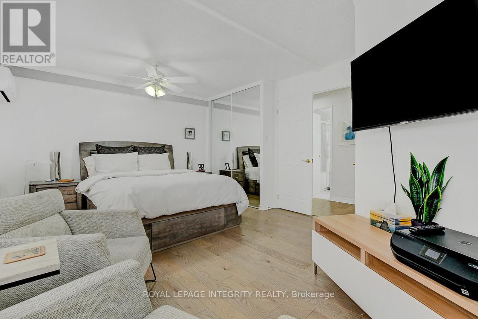 Wonderful opportunity to own a spacious CORNER UNIT that has been converted from a 3 bedroom to a 2 bedroom. Inviting foyer leads to open-concept L-shaped living/dining room layout that is flooded with natural light. Lovely kitchen with modern cabinetry, stylish backsplash, double sinks, ample storage with pots and pans drawers as well as stainless steel dishwasher and stove. Generously-sized primary and secondary bedrooms. Convenient walk-in and 2 piece ensuite bathroom. Beautiful hardwood floors complement the neutral colour palette throughout. A true turn-key property that will impress even the most discerning of buyers. Onsite management, amenities, indoor pool, large balcony, guest parking, bicycle storage and storage locker for your convenience. Book your showing today!