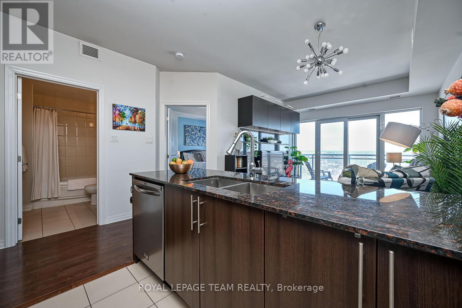 Experience URBAN LIVING AT ITS FINEST in this quiet corner condo just steps from the scenic Rideau River and the many stores, cafés and restaurants of Beechwood Village. Perfectly positioned in the well-managed and secure La Tiffani 2, this upscale apartment offers the ideal blend of PRIVACY, COMFORT, AND URBAN CONVENIENCE. Filled with NATURAL LIGHT from expansive windows, the bright open-concept layout is enhanced by hardwood flooring and a smart, efficient design maximizing space and functionality. As a desirable CORNER SUITE, enjoy added tranquility and separation from neighbouring units. The modern kitchen showcases GRANITE COUNTERTOPS, stainless steel appliances and a convenient BREAKFAST BAR flowing into the bright, inviting living and dining areas for effortless everyday living and entertaining. A sleek, modern WALL UNIT included in the living room is perfect for stylish storage and your entertainment centre. Step outside to your LARGE PRIVATE BALCONY and take in the IMPRESSIVE PANORAMIC VIEWS; an amazing vantage point to enjoy open skies, cityscapes and quiet moments above it all. The spacious primary bedroom offers a relaxing retreat, while the versatile DEN is tucked into a quiet nook - ideal for a HOME OFFICE, study space, or cozy reading corner. IN-UNIT LAUNDRY adds everyday convenience, while an exclusive UNDERGROUND PARKING SPACE and a dedicated STORAGE LOCKER complete this exceptional package. Residents enjoy resort-style amenities including an INDOOR POOL, FITNESS CENTRE, meeting/party room and professional property management. Reasonable condo fees include both HEAT & WATER, offering both value and peace of mind. With easy access to the Queensway, public transit, downtown Ottawa and the vibrant ByWard Market, this unbeatable location makes commuting, dining, shopping and outdoor recreation effortless. This is your opportunity to own a QUIET OASIS in one of Ottawa's most desirable neighbourhoods where LIFESTYLE AND LOCATION COME TOGETHER.