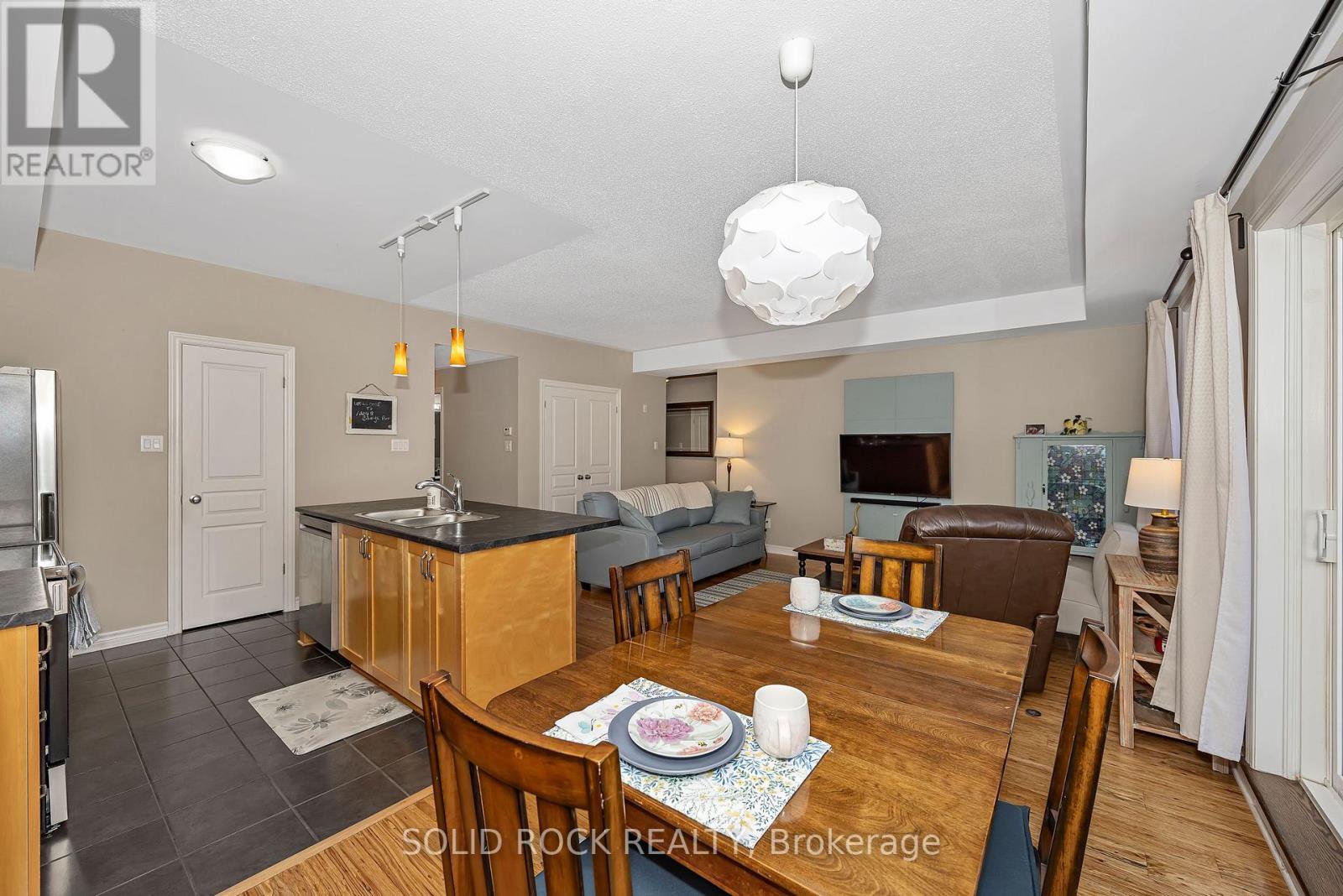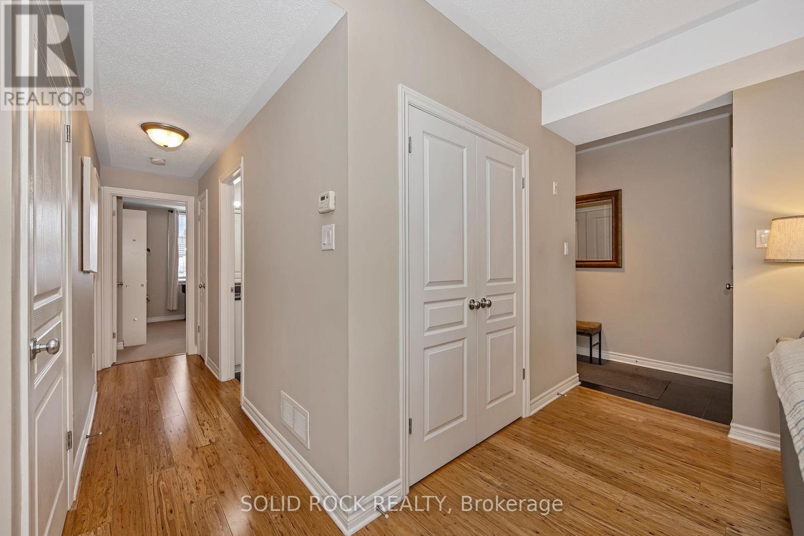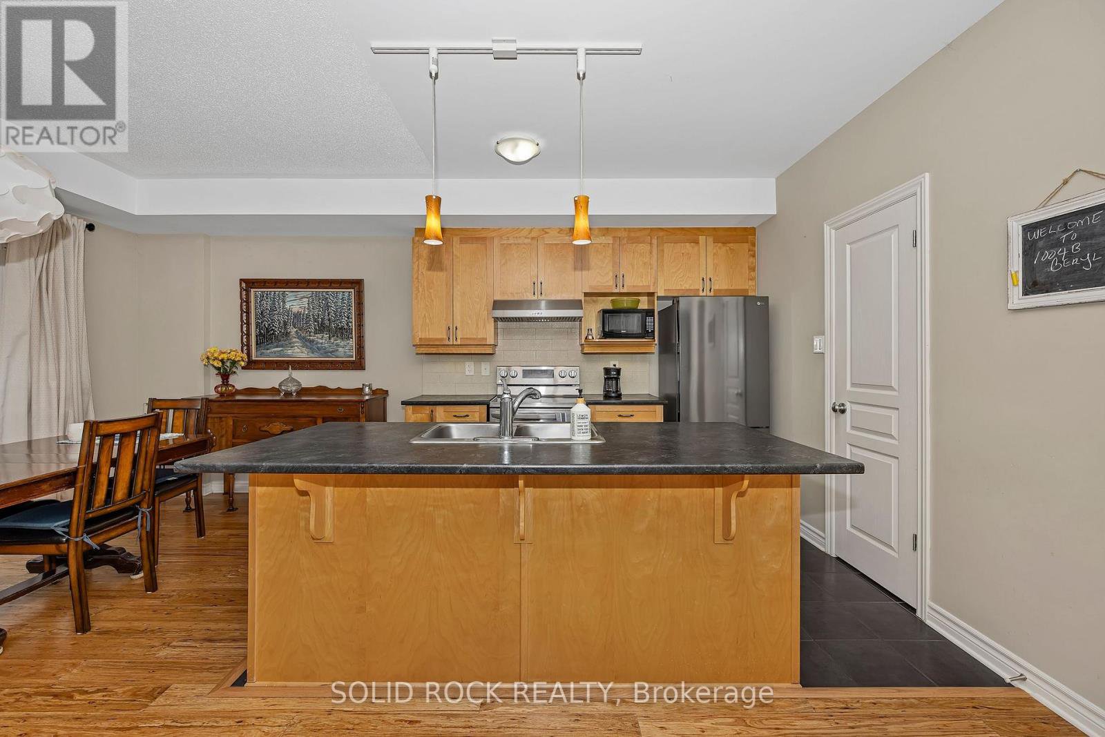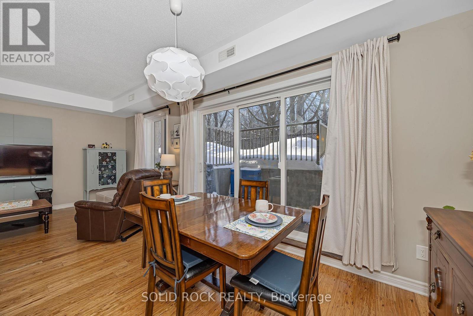 Beautifully updated 2-bedroom condo in the heart of Riverside South, backing onto a quiet and private treed area with no through traffic. This bright ground unit offers modern open-concept living with engineered hardwood flooring on the main level and 9-ft ceilings. The kitchen features solid wood cabinets, stainless-steel appliances (2024), pantry, backsplash, and under-cabinet lighting. Spacious living and dining areas make for easy entertaining. Both bedrooms offer comfortable layout with carpeted flooring; the primary includes a 3-piece ensuite and walk-in closet. A second full 4-piece bath, in-unit laundry (2025), and a large utility/storage room complete the space. Enjoy a very private walkout patio overlooking the wooded area. Parking spot included. Well-managed condo with low fees that include water. Non-smoking building with convenient garbage room and attached bicycle storage. Steps to parks, schools, shopping, walking paths, and LRT. Ideal for first-time buyers, downsizers, or investors.