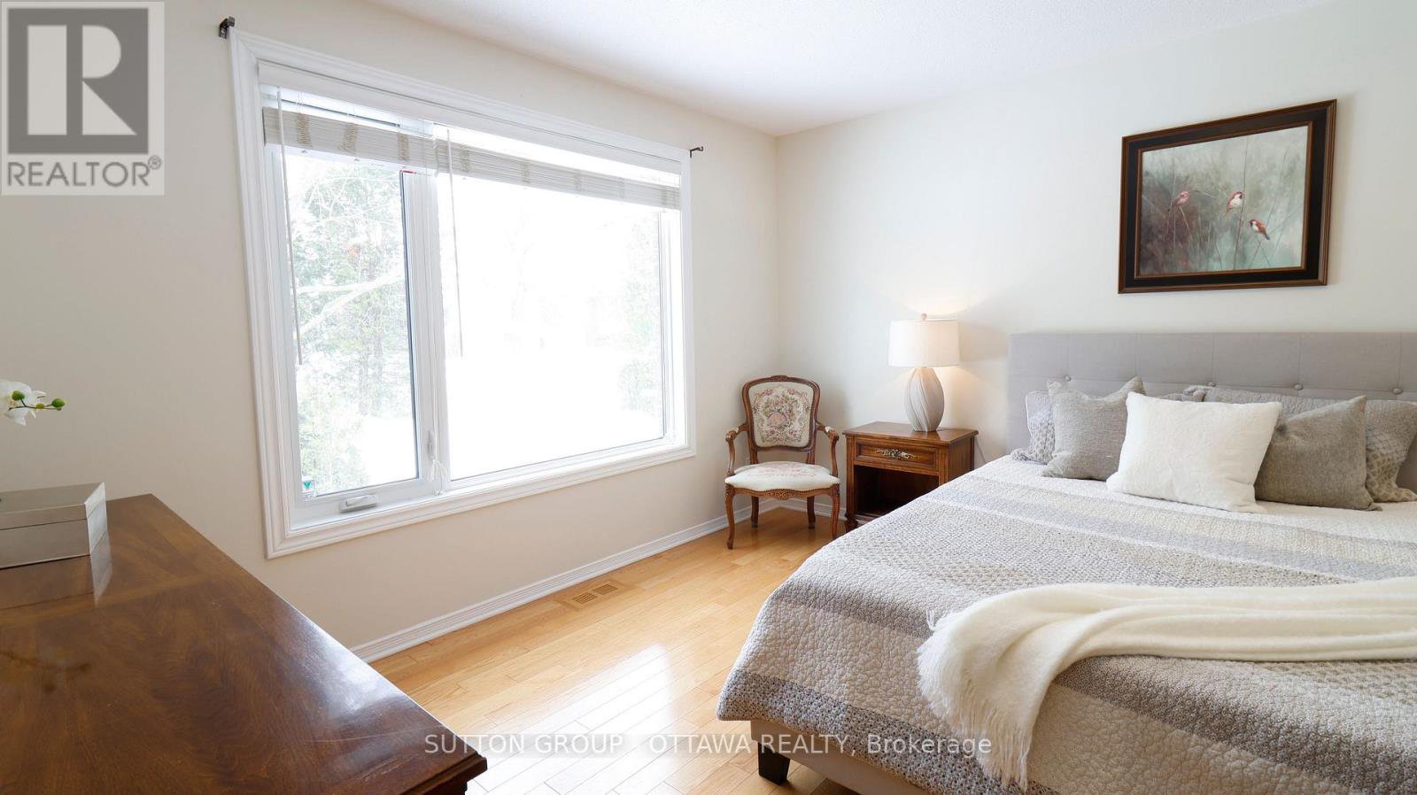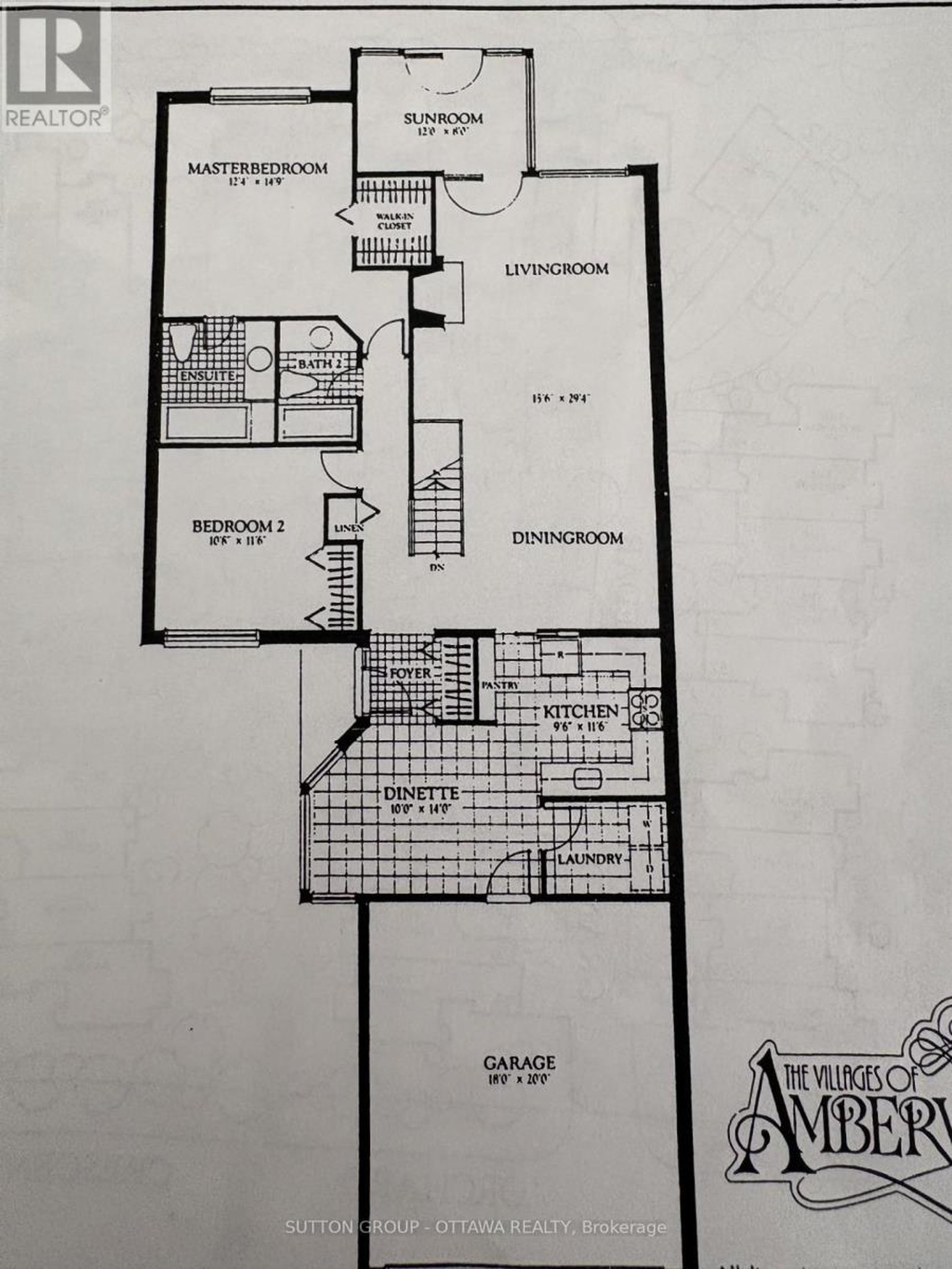 A very well maintained and upgraded 1,518 sq. ft. 2 bed, 2 bath bungalow condo end unit in the heart of impressive Amberwood Village is being offered as your next home. Upgrades and features include: 3/4" hardwood floor on first floor, primary bedroom en-suite with walk-in shower, breakfast nook, solarium, newer gas fireplace in living room with 9' ceiling and crown molding, rewired with pot lights, 2 sky tunnels (living room and kitchen), upgraded blinds/coverings, Nov 2025 new stainless steel stove and fridge (newer dishwasher), rare 2-car garage for these properties, and more. The picturesque back hard has a canopy umbrella and gas BBQ connection. The basement is unfinished but large and open allowing for easy finishing, large egress window for a bedroom and ability to build a full bathroom. Contact listing agent for systems/roof upgrades through the past few years. Perfect for downsizing or professionals looking for a quiet neighbourhood close to all amenities. Come take a look today.