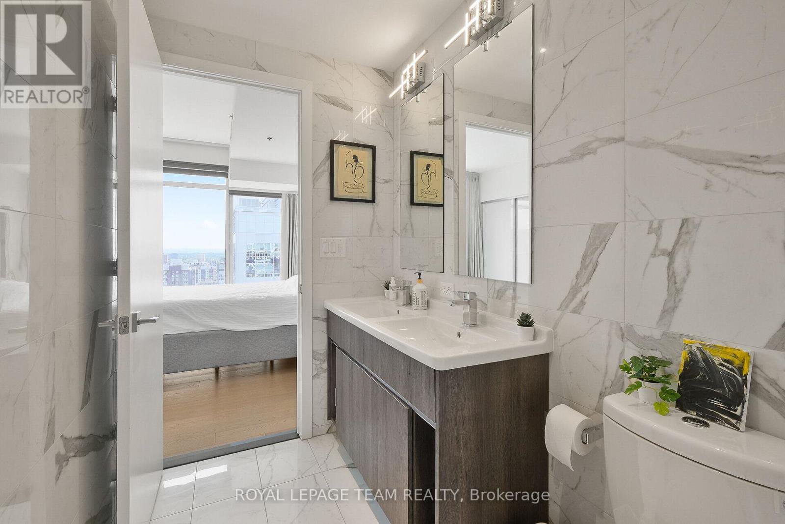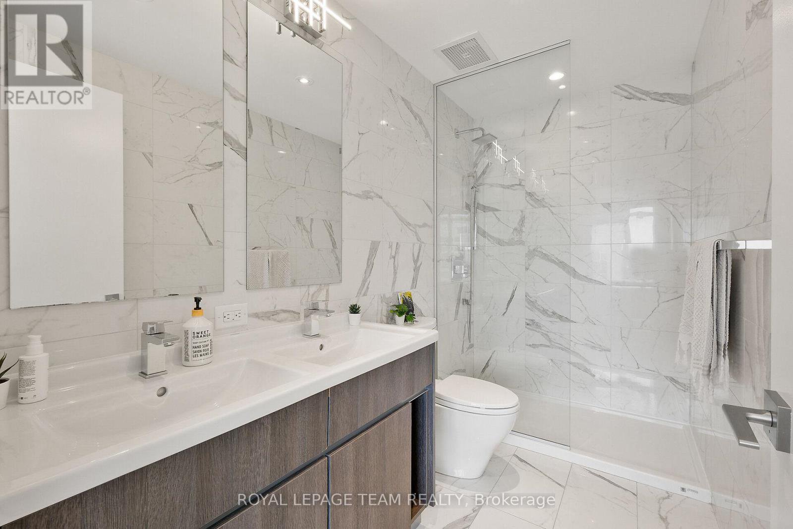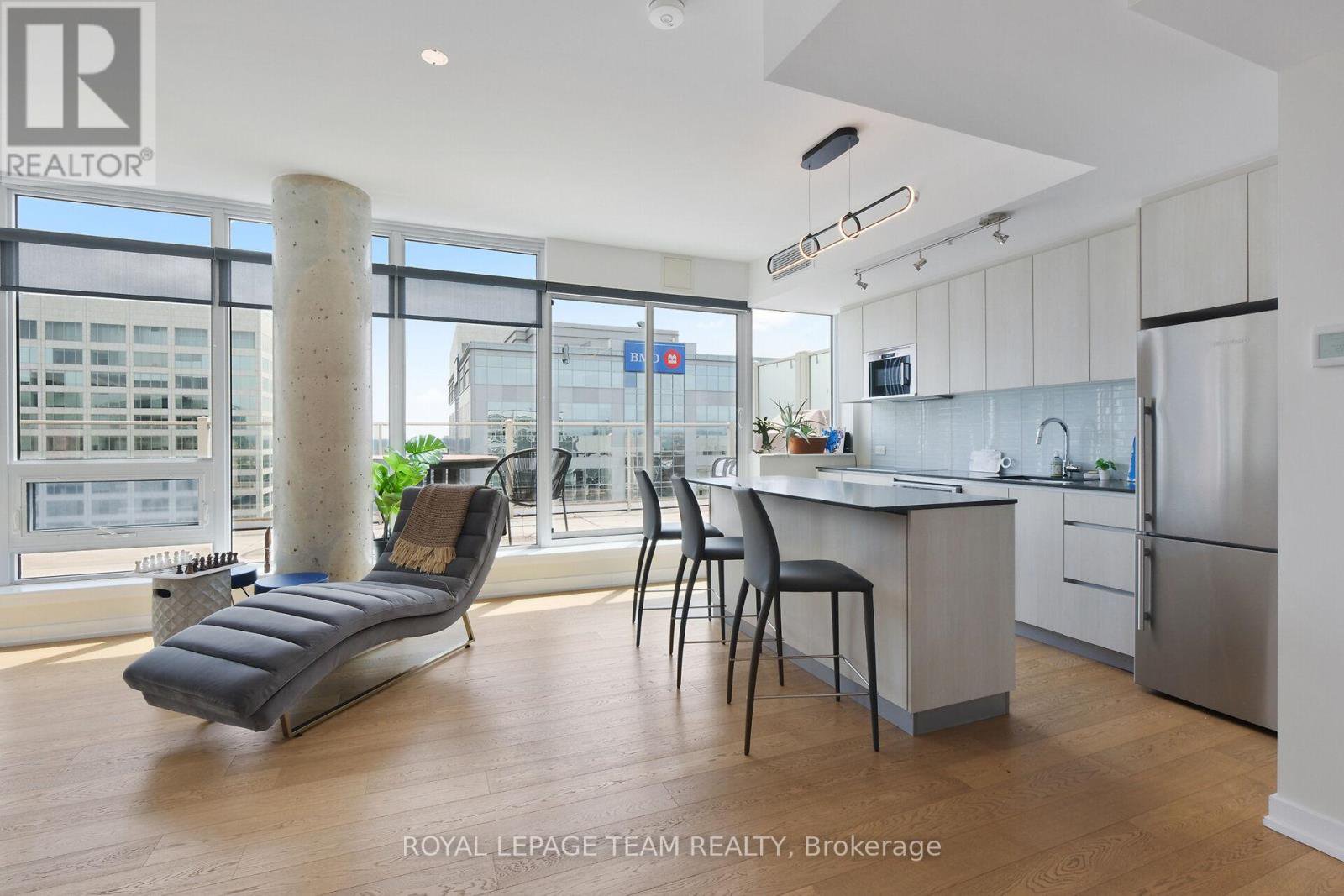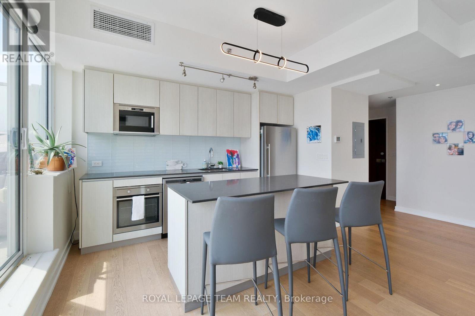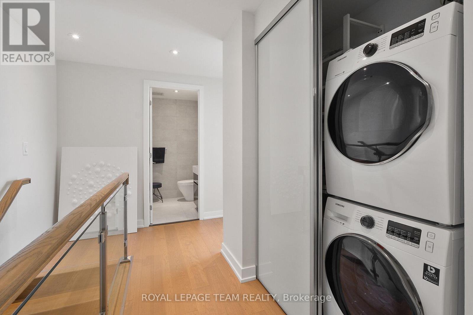 Welcome to this deluxe, two story, two bedroom, three bathroom condominium apartment centrally located in the heart of Ottawa. This property's most exceptional feature is the breathtaking views from all its floor to ceiling windows & from the spacious balcony. There is tons of natural light as a result of its open concept design & it features attractive hardwood flooring throughout the main level, upstairs hallways & bedrooms. The kitchen includes quartz countertops & sufficient cabinetry to accommodate your cookware & dishes. The spacious open concept living room / dining area & exterior balcony are all perfect for furniture placement & relaxing as well as intimate meals or small family gatherings. The second floor hallway offers hidden washer/dryer & access to the family bathroom with soaker tub and shower. The spacious primary bedroom includes a bright, high end four piece en-suite bathroom with double sinks & glassed walk in shower. The second bedroom is perfect for other family members or a guest room / home office. This Building has lots of Amenities including, concierge, party room, movie room and exercise equipment. Imagine the convenience of being in walking distance to numerous restaurants & stores as well as most major tourist attractions like the Byward Market, National Arts Centre, Museums and Parliament Hill to name few. Parking spot P4 - #117 - Locker 402B