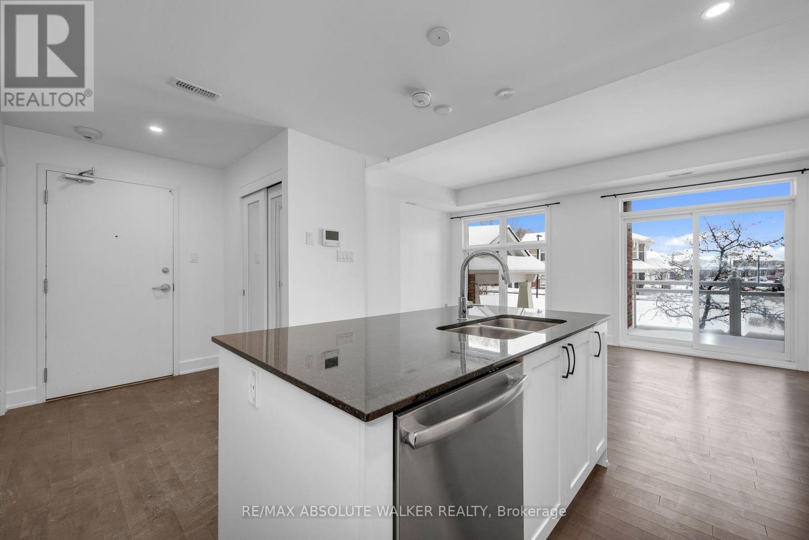 Enjoy quality finishes and effortless living in this bright, spacious two-bedroom, two-bathroom condo located in the desirable Crème community by Domicile. Designed with comfort and accessibility in mind, this well-maintained unit features nine-foot ceilings, hardwood flooring throughout, and large windows that fill the home with natural light. The thoughtfully designed kitchen offers stainless steel appliances, ample cabinetry, a functional island, and quartz countertops-perfect for easy meal preparation and entertaining family or guests. Both bedrooms are generously sized, with an oversized Jack-and-Jill main bathroom featuring a double vanity and a large walk-in closet. Convenience is key with in-unit laundry, elevator access, heated underground parking, and a spacious storage locker. Step outside to enjoy a private balcony and beautifully landscaped common areas. Ideally located close to OC Transpo and Park & Ride, this condo offers a relaxed, low-maintenance lifestyle in a welcoming community-perfect for first time homebuyers, downsizers or seniors seeking comfort, quality, and peace of mind. Some photos are virtually staged.