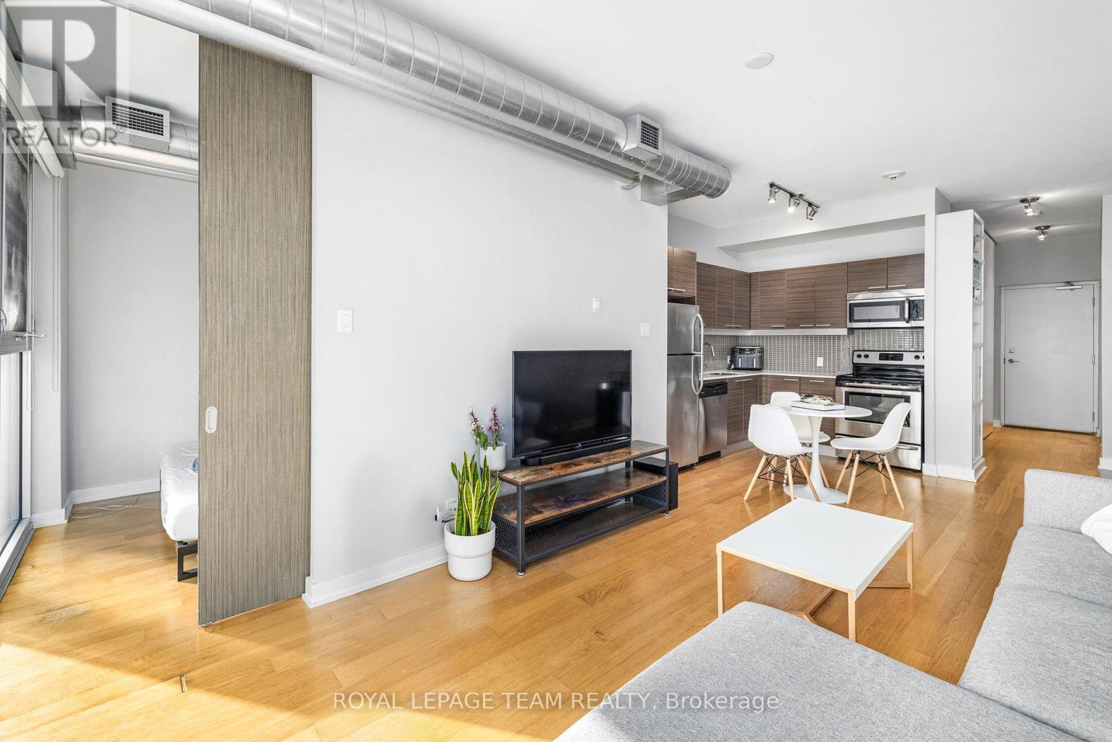 Experience Centretown living at it's best at Central 1. This open concept 1 bed+den ft bright wide engineered hardwood floors, floor to ceiling windows and large balcony spanning the length of the unit. Carefully placed den w/double doors is a fitting spot for work from home! The Kitchen is equipped w/Stainless appliances, crisp glass backsplash and quartz counters. This rare Barcelona model feature an open dining and living space that's great for entertaining. The large bedroom has double oversized closets with extra shelving for ample storage, access to the laundry and large bathroom via the cheater door! This LEED Gold Certified Building is walking distance to dining, shopping, and all the great amenities the city has to offer. Building amenities include a private courtyard w/gas bbq, fitness centre, party room, car wash station, security, and a concierge service. 1 storage locker and underground parking spot is included.