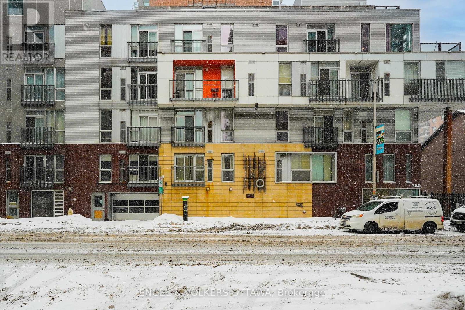 Welcome to 360 Lofts in the heart of Ottawa's vibrant ByWard Market. This bright 1-bedroom end unit with underground parking offers an ideal blend of urban living and private retreat. The functional layout features a well-appointed galley kitchen with ample storage and a full 4-piece bathroom. An open-concept living and dining area benefits from large windows that fill the space with natural light. The bedroom includes a convenient stacked washer and dryer, along with a full closet. Enjoy a rare 200+ sq. ft. private, fenced-in terrace - a standout feature offering exceptional outdoor space for relaxing or entertaining. A secure storage locker and bike rack add extra practicality. Live steps from cafés, restaurants, the downtown library, and everything the Byward Market has to offer, with quick access to transit, the highway, parkway, and interprovincial bridges. A great opportunity for first-time buyers, investors, or anyone seeking a connected downtown lifestyle.