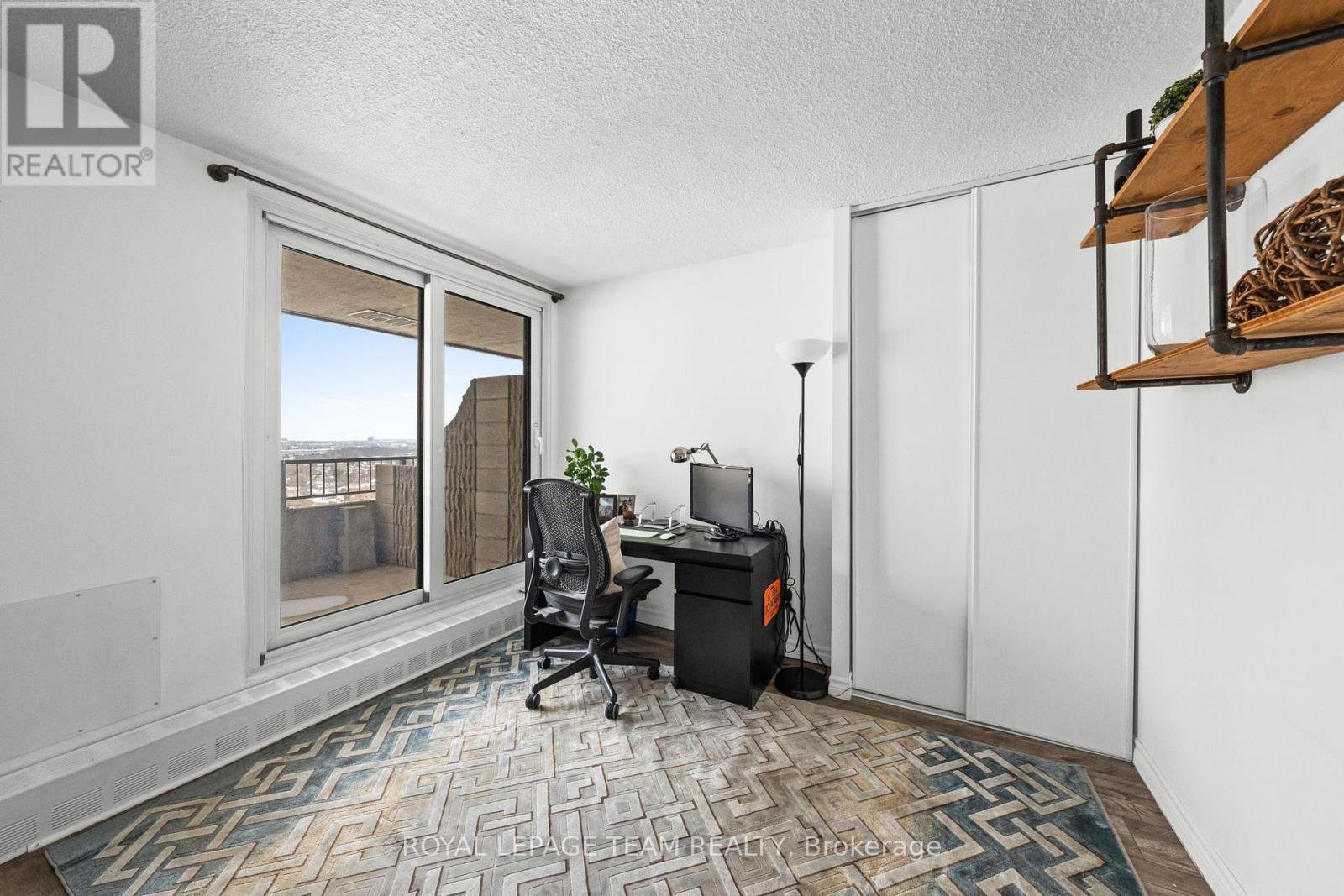 Welcome to this bright and inviting 2-bedroom, 1-bath condo in sought-after Alta Vista. Offering approximately 860 sq. ft. (per MPAC) of well-designed living space, this unit is located in a mature, amenity-rich, pet-friendly building and blends comfort with exceptional convenience. A functional front entry with storage and peg board organization adds everyday practicality. Filled with natural light, the spacious living room features a large sliding door and window with access to one of two generous balconies, creating an airy and welcoming atmosphere. The bright kitchen offers white shaker cabinetry, wood countertops, and ample storage. The spacious primary bedroom includes a large closet, while the second bedroom features its own closet and sliding door access to the second balcony. A full bath with tub and shower combination, stylish vanity, and additional storage completes the interior. Exclusive parking and a storage unit are included, and some furnishings are included. Residents enjoy an impressive selection of amenities including an indoor pool, sauna, two exercise rooms, on-site convenience store, party room, games room, library, conference room, and more. Laundry is conveniently located near the unit and available on every level. Ideally situated close to transit, Trainyards shopping, parks, and the Ottawa Hospital, this well-maintained Alta Vista condo offers low-maintenance living in a prime location! 24 hours Irrevocable on all offers preferred.