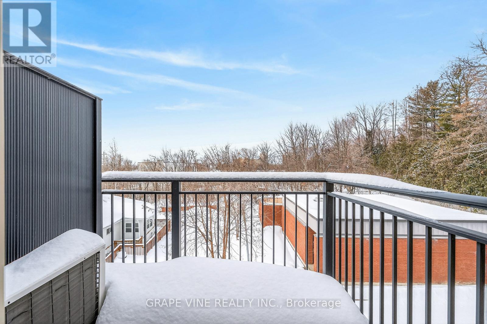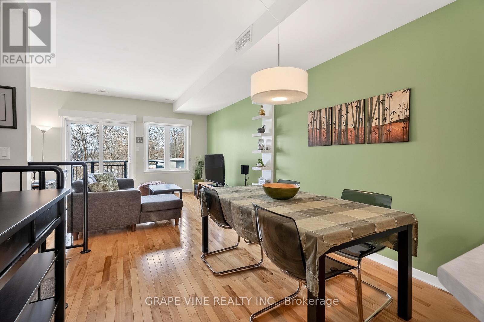 This Domicile built, two floor, upper-level condo unit is conveniently located close to CMHC, CSE, CSIS, Collège La Cité, the NRC, and the Monfort Hospital with easy access to public transit going west into downtown, or to points east in Ottawa. The multi-use Aviation Parkway is also a short walking distance away. Driving can be as quick as 15 minutes to the heart of the city.The main floor is a sunlight-filled open concept living/dining room and kitchen with ensuite laundry and all hardwood flooring. The space is complemented by a west-facing balcony that overlooks a charming wooded area and provides a convenient gas hookup for barbecuing. Also included are high-end kitchen appliances, the washer and dryer, and all window treatments.The second floor has a generously-sized principle bedroom with a walk-out balcony, a four-piece bathroom, and a second bedroom currently set up as an office space featuring a custom built-in bookshelf.The unit has central gas heating and electrical cooling, with a fully owned tankless hot water heater; all of which have been professionally serviced annually.Along with ample closet space there is also a storage locker that provides room for off-season items and sports equipment. There is a dedicated outdoor parking space.The exterior of the building is fully maintained by a property management company covering landscaping, repairs, and snow removal, making for truly effortless urban living.