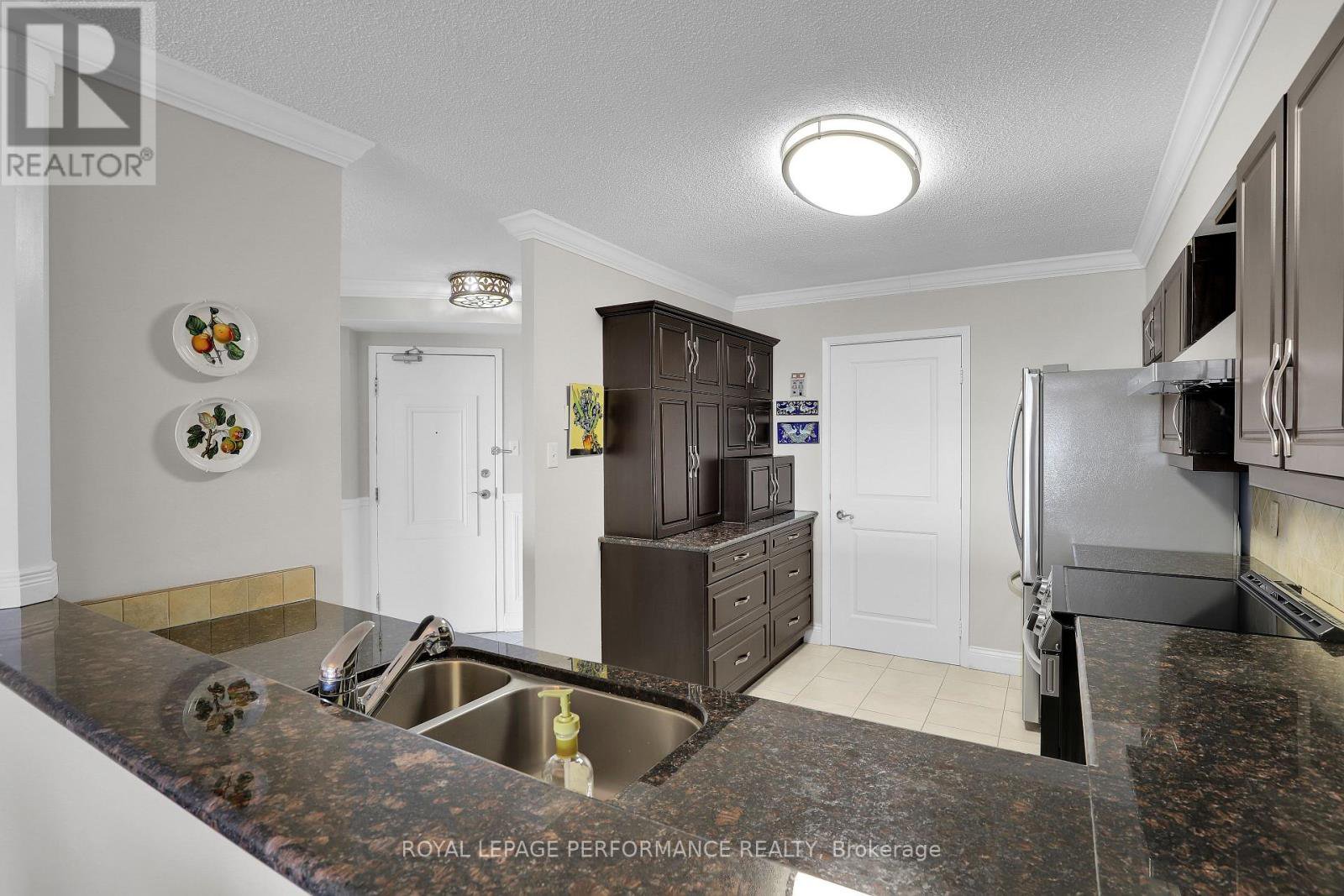 955 sq ft renovated one-bedroom, one-bathroom condo set within beautifully landscaped grounds with 27th-floor river views. Move-in ready and updated throughout. The renovated kitchen features dark wood cabinetry, granite countertops, stainless steel appliances, ample drawers, and a large pantry, finished with tile flooring and backsplash. The kitchen opens to a spacious living and dining area, creating a functional great-room layout ideal for everyday living and entertaining. Large windows and balcony access provide excellent natural light and showcase river and grounds views. The generous primary bedroom offers expansive windows and a walk-in closet. The updated bathroom includes a designer vanity and modern mirror. Building amenities include 24-hour security/concierge, car wash bay, indoor and outdoor pools, sauna, exercise gym, tennis, basketball, and squash courts. Condo fees include all utilities - electricity, heating, and water. Conveniently located within walking distance to shopping, transit, restaurants, and everyday amenities. Well-maintained building and a move-in ready suite with great views.